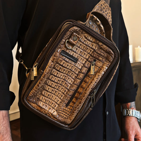 سترة سوبيك الجلدية لهواة الجمع | سترة راكبي الدراجات النارية المصنوعة يدويًا من جلد التمساح (مقاس XL)