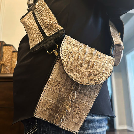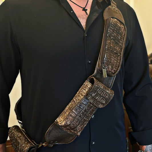 حزام كتف أمامي من جلد التمساح للرجال
