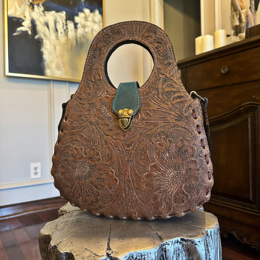 Blossom Floral Tooled Leather Round Top Handle PurseRegular price $145.00 USDRegular priceUnit price per-