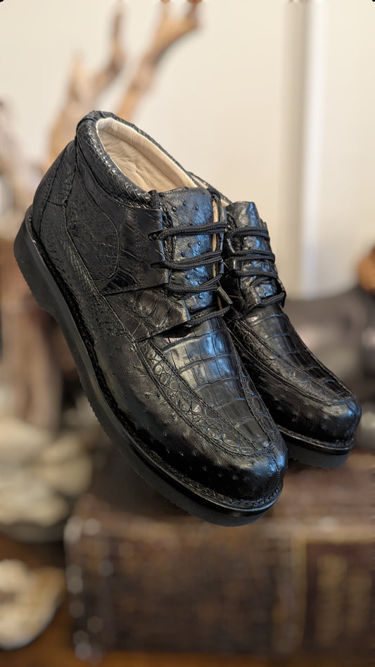 Men's Black Obsidian Alligator and Ostrich Sneaker Boots
