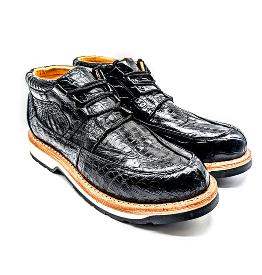 Men's Black Glazed Alligator Leather Goodyear Welt Ankle Boots with Non-Slip Foam Rubber Sole