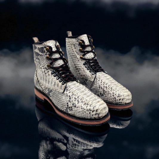 Handmade Snakeskin Lace-Up Boots – Genuine Python Leather