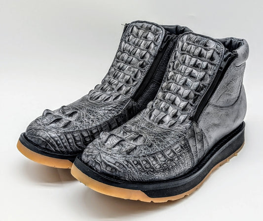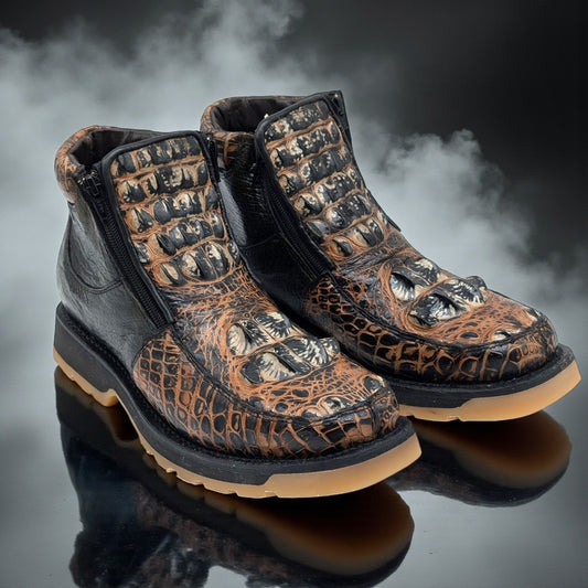 Sobek's Hornback Alligator Ostrich Ankle Boots for Men, Chelsea Style, Dual Zipper, Goodyear Welt, Lug Sole, Handmade Exotic Leather