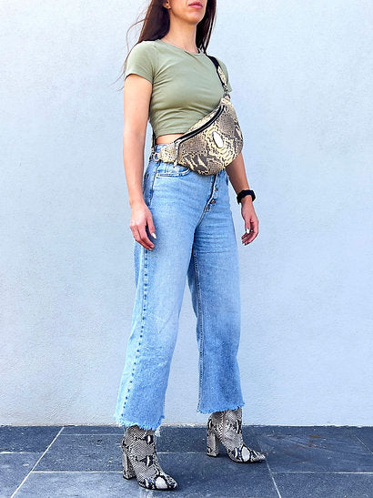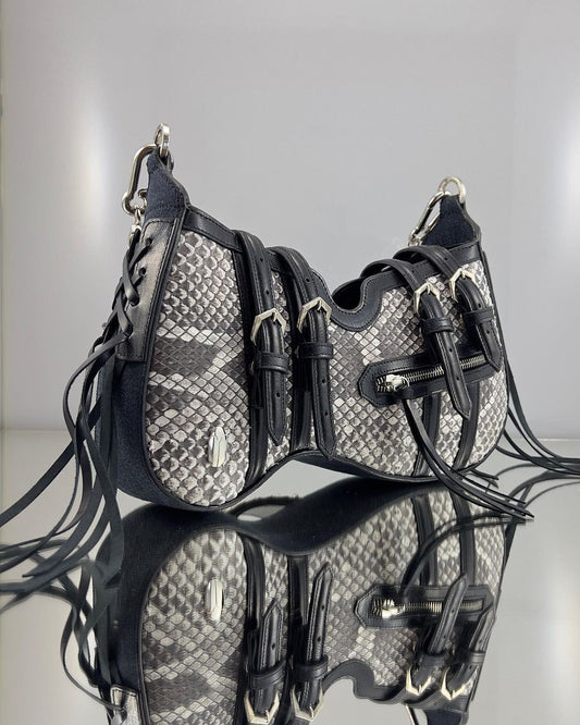 Python Snakeskin Black Saddle Bag with Fringe | Exotic Boho Leather Crossbody