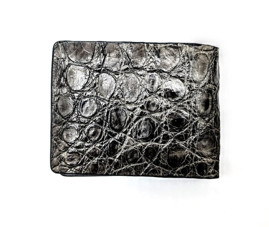 Black & Gold Genuine Alligator Hornback Leather Wallet – Full Alligator| 6 Card Slots | Sobek Leather