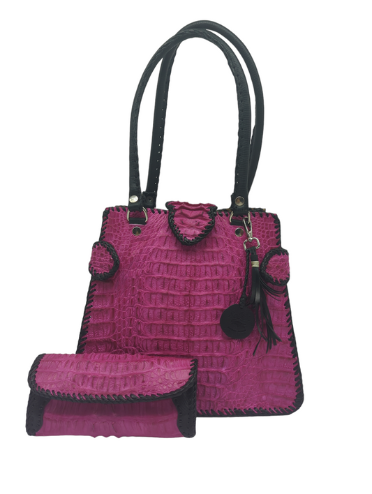 Pink Boho-Chic Alligator Hornback Leather Bag with an Obsidian Heart Stone Accent
