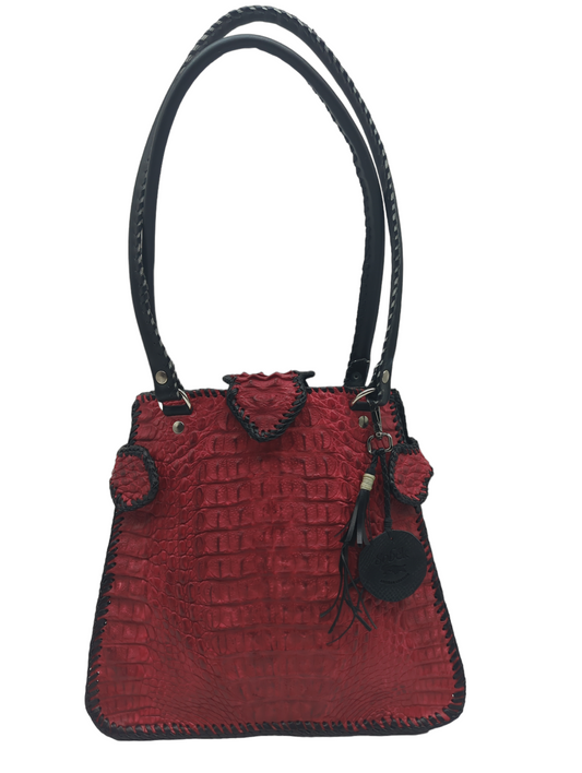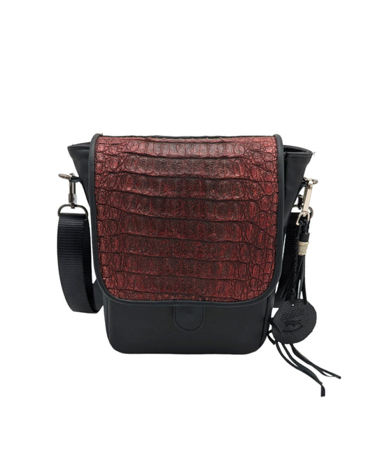 Red Alligator Hornback Leather Crossbody Messenger Bag, Southwestern Style, Festival Bag