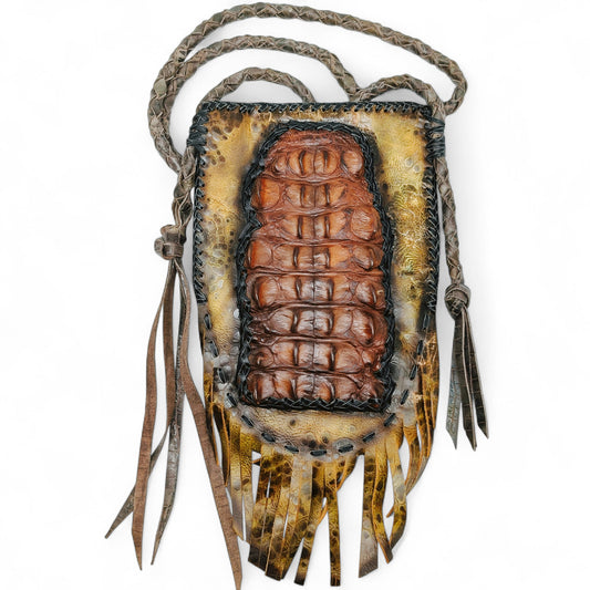 Handmade Alligator Hornback Fringe Pouch – Tribal-Inspired Crossbody or Hip Bag