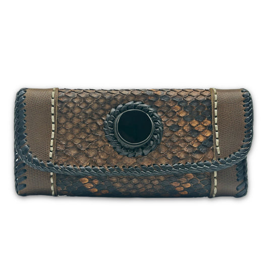 Trifecta Snakeskin Artisan Whipstitch Clutch in Taupe and Obsidian Stone Accent