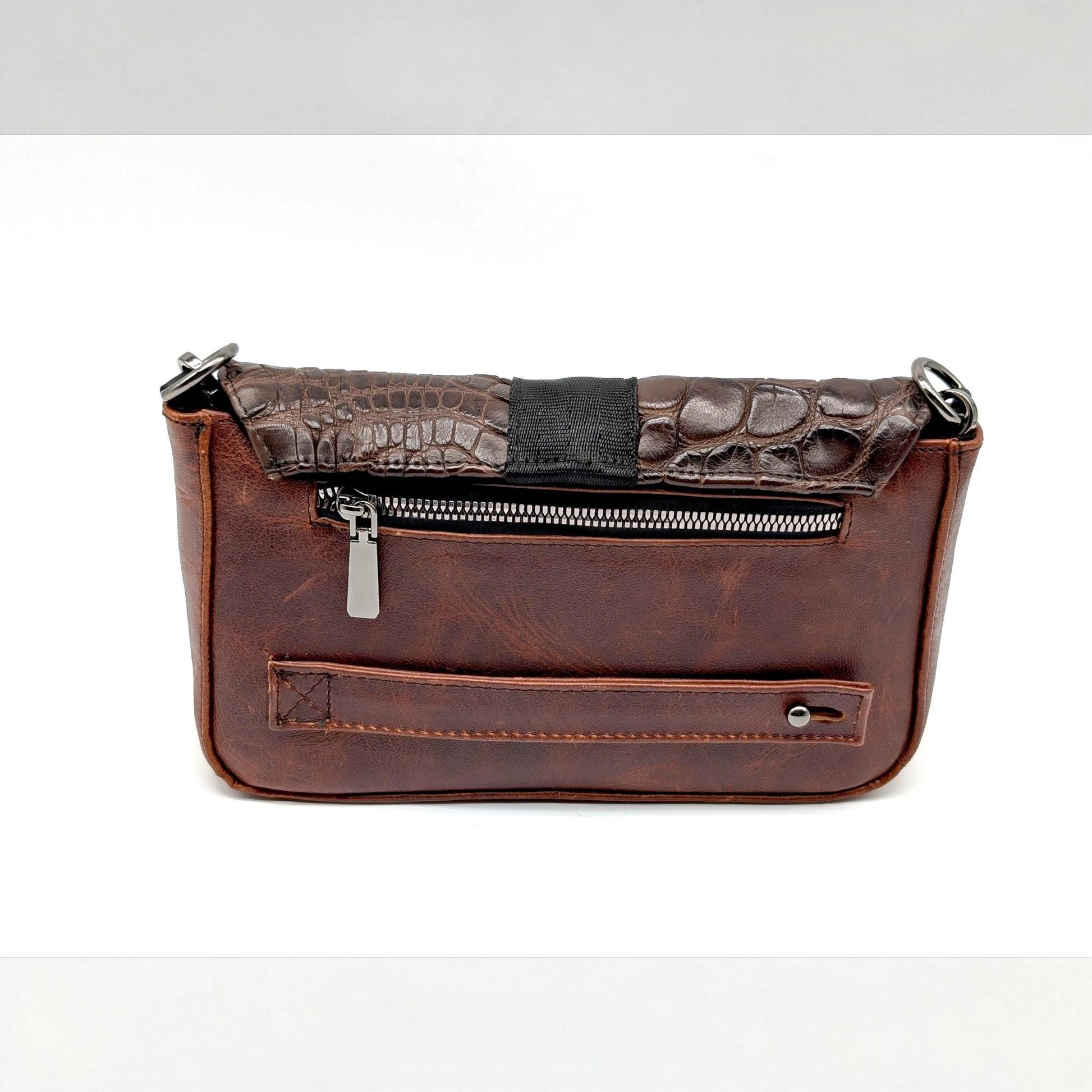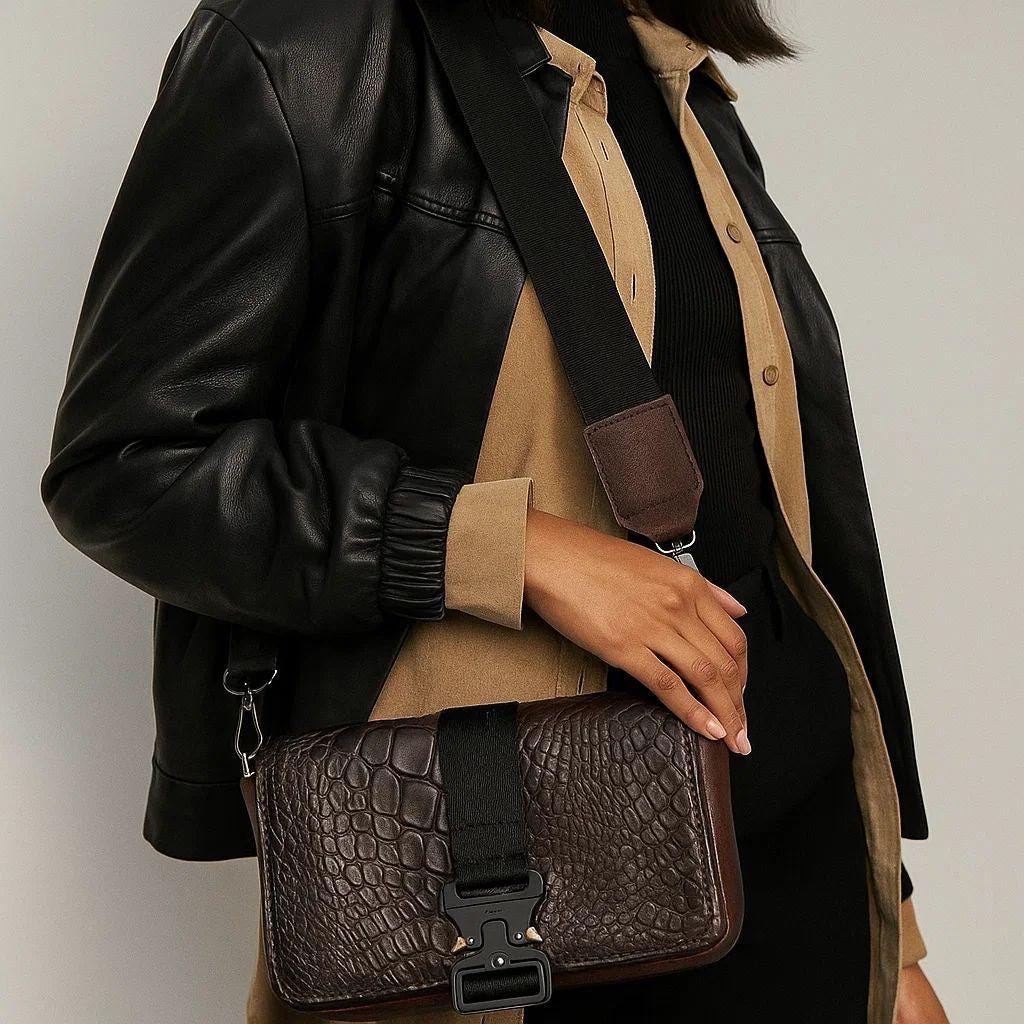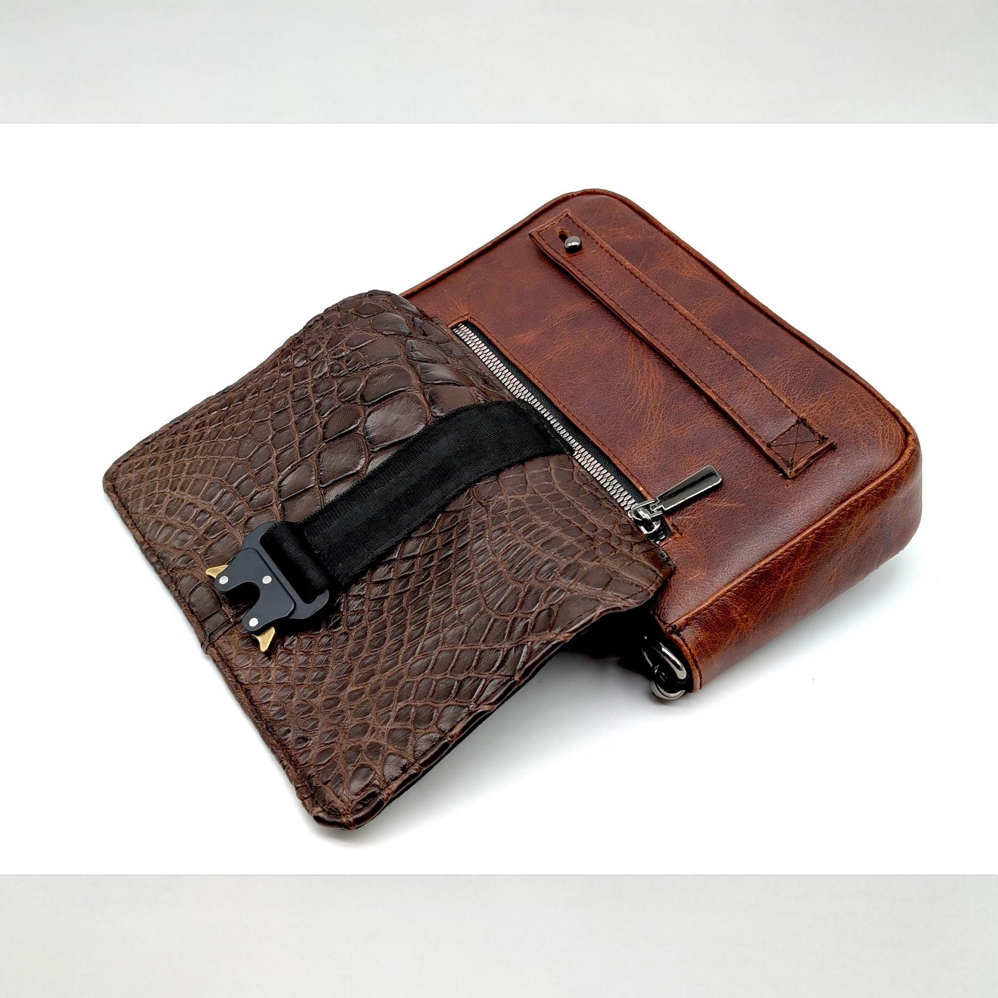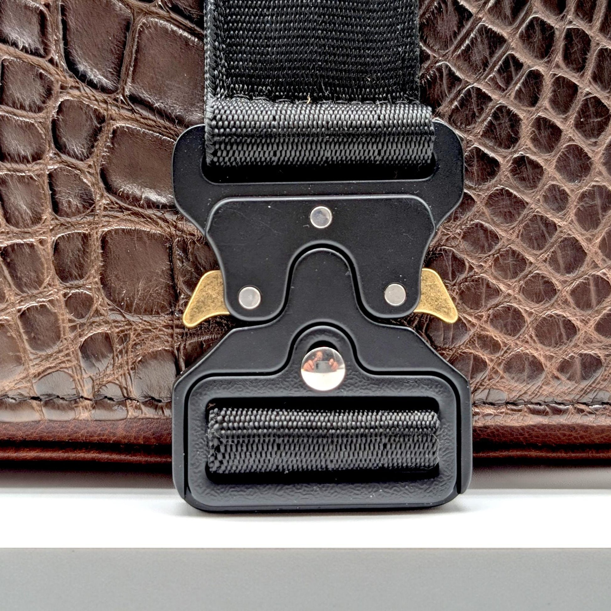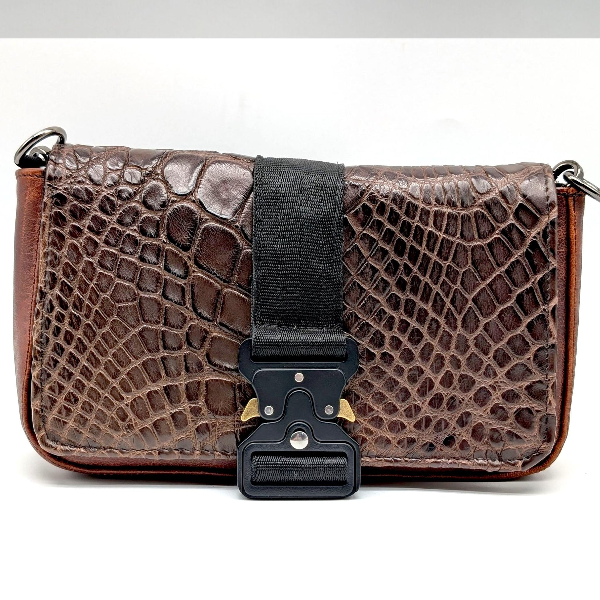 Alligator Leather Crossbody Bag, Tactical Buckle Purse, Handmade Exotic Leather Shoulder Bag, Luxury Brown Clutch, Artisan Unisex Gift