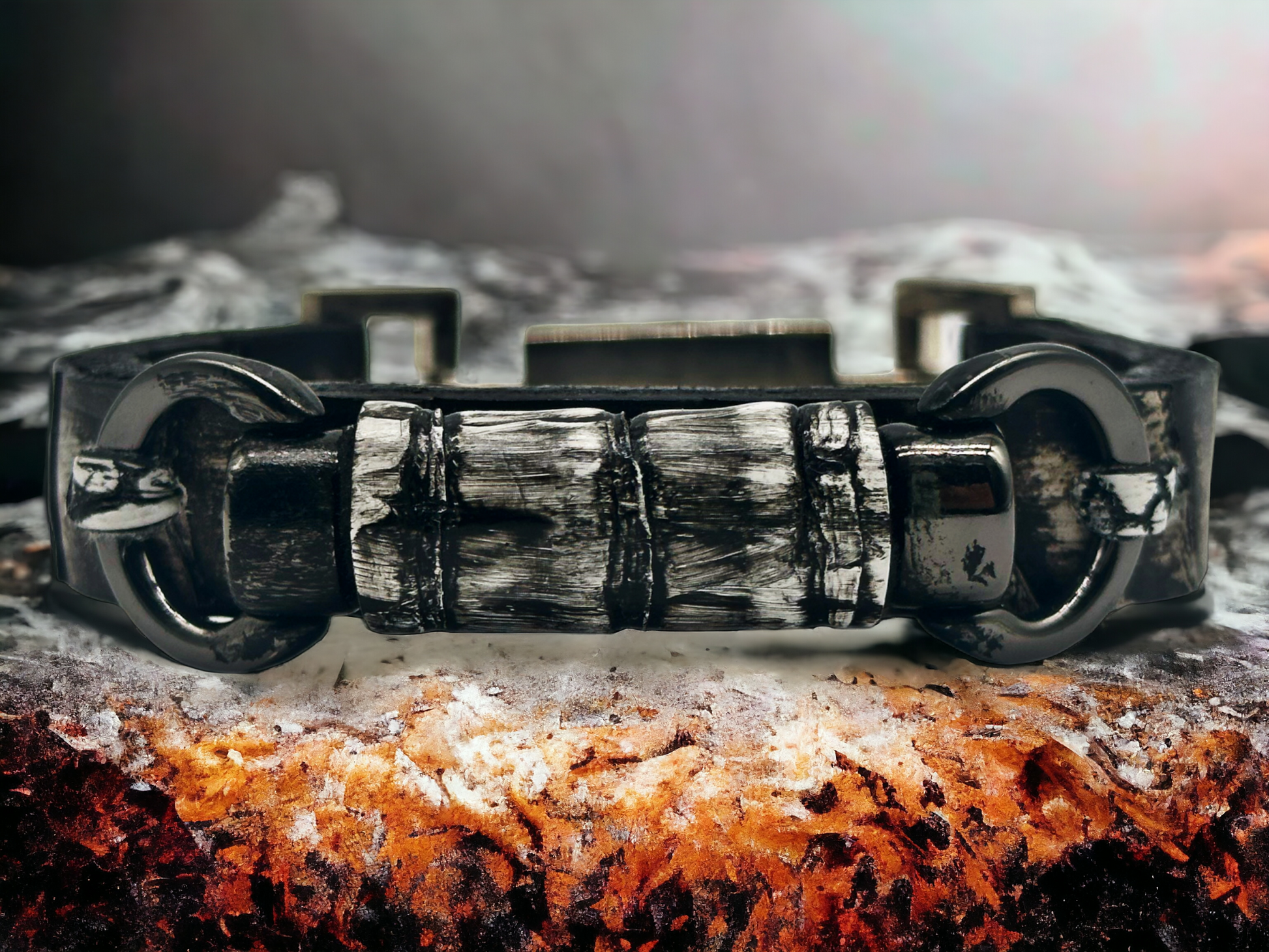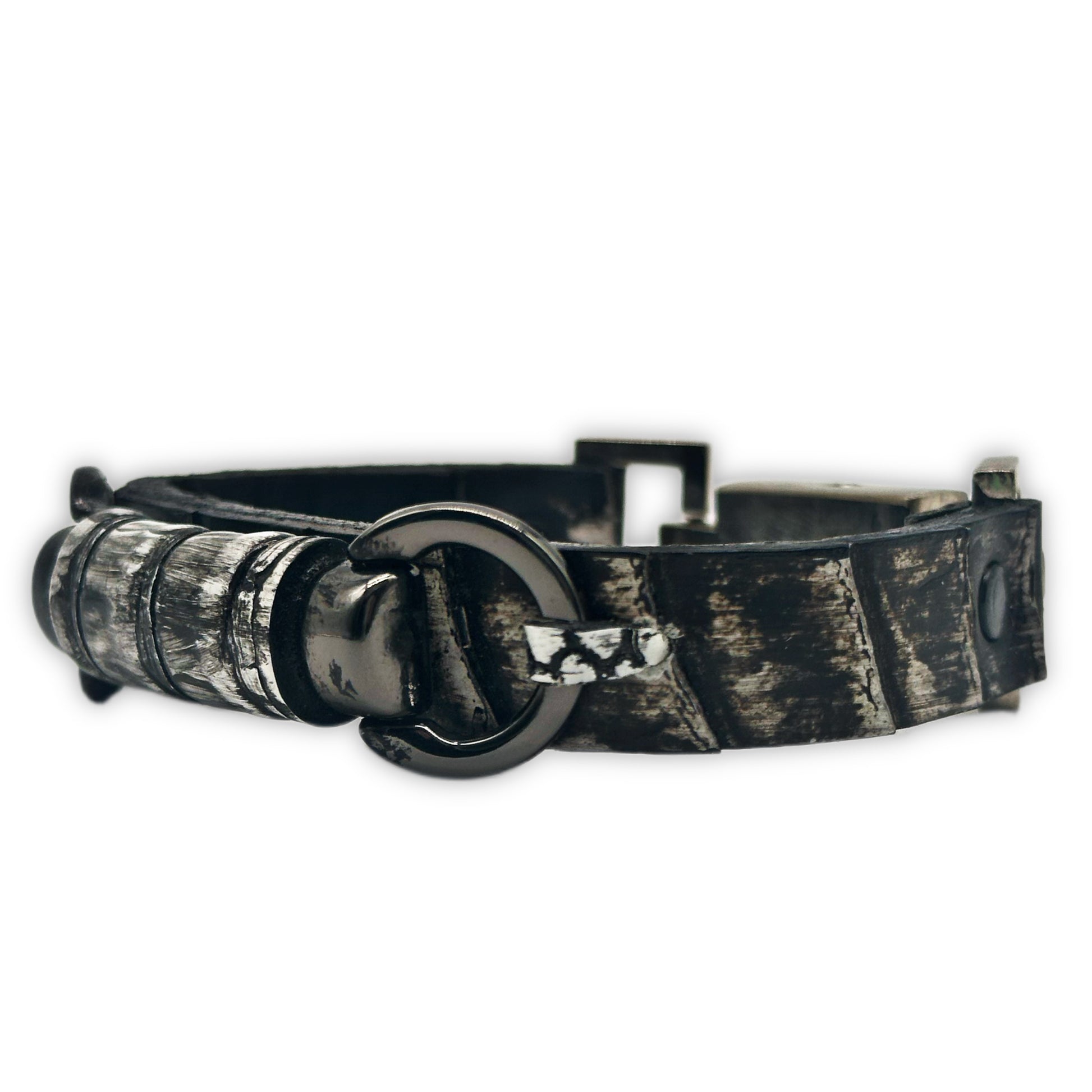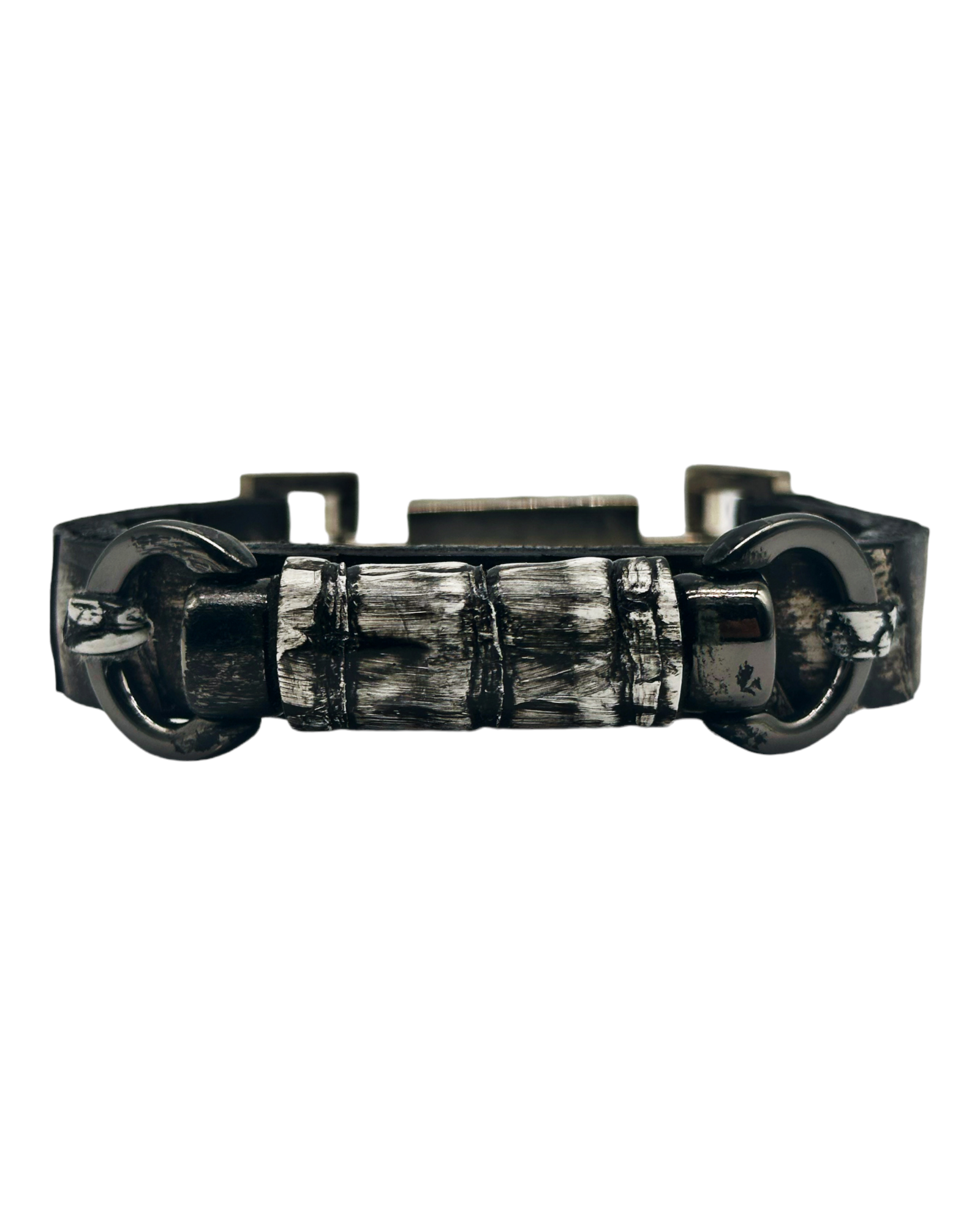• With its distinctive alligator leather, this bracelet is a standout accessory, perfect for those who want to make a statement. It features silver embellishments, adding an elegant touch to the overall design.