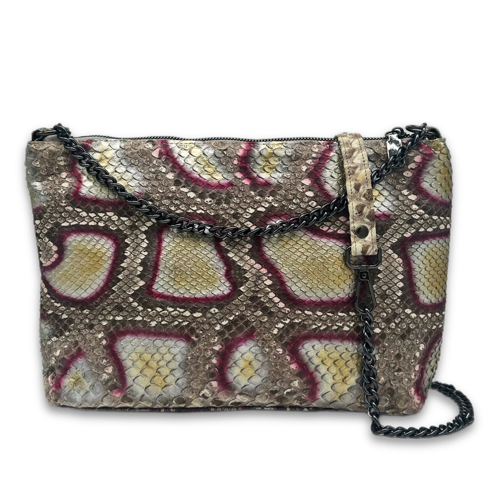• Unique and One of a Kind: Crafted from ethically sourced Italian python skin of the finest quality, this crossbody is a truly unique and one-of-a-kind piece. Featuring a crossbody metallic chain for handsfree carry.