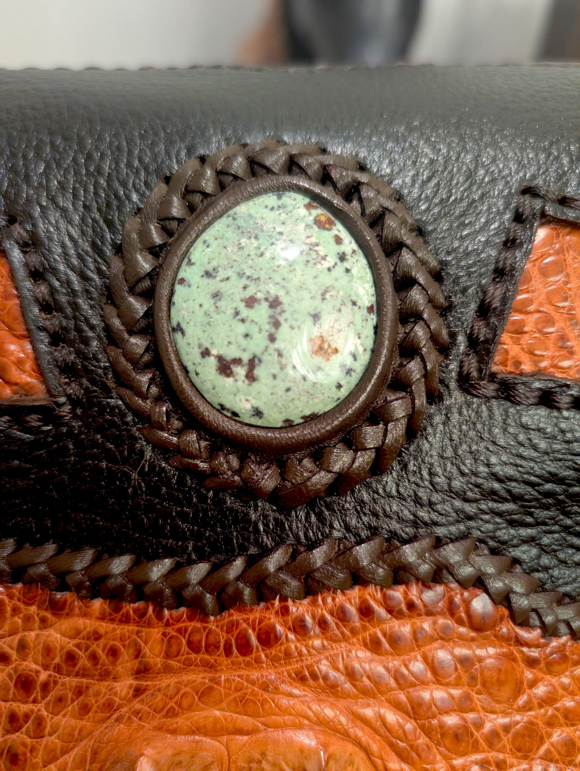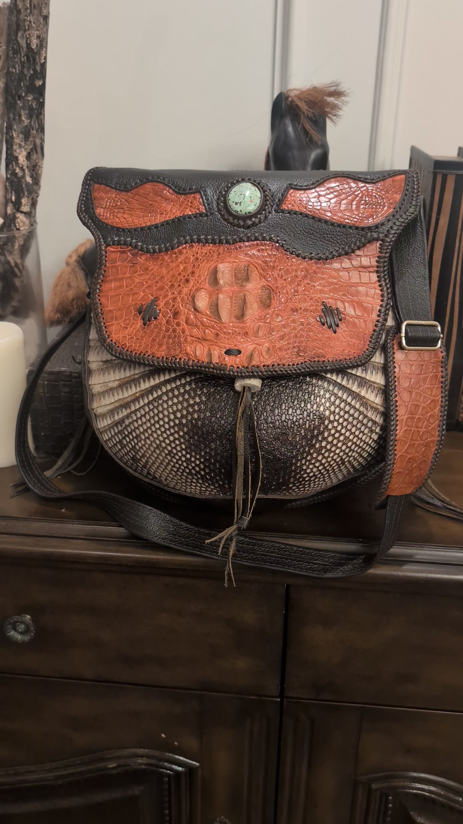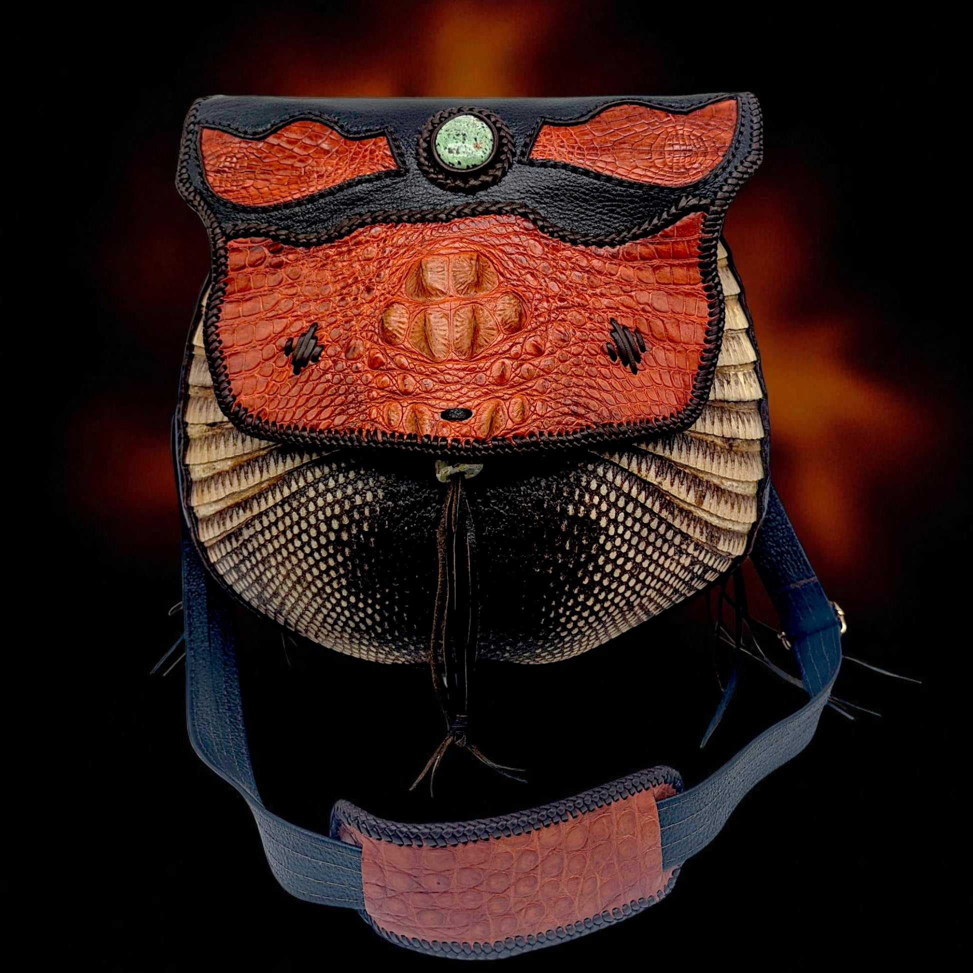 Artisan Armadillo Shell Bag with Alligator Hornback Crown, Turquoise & Antler – One of a Kind