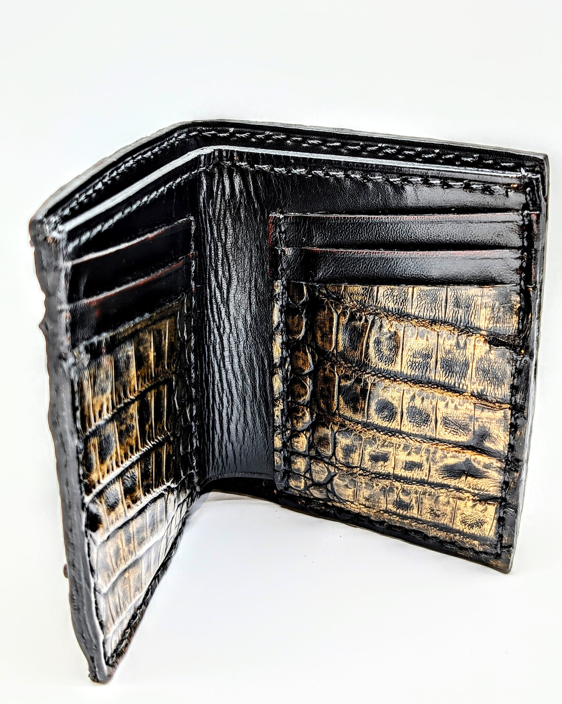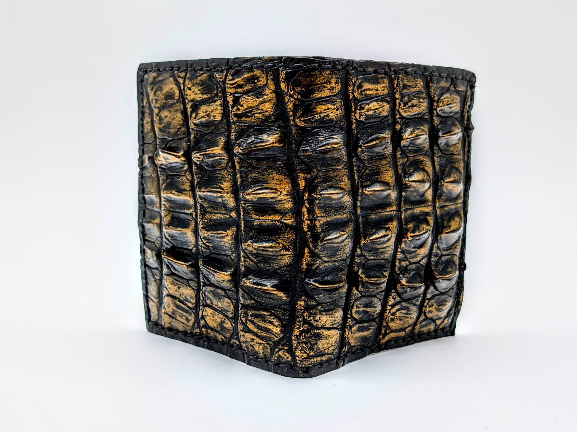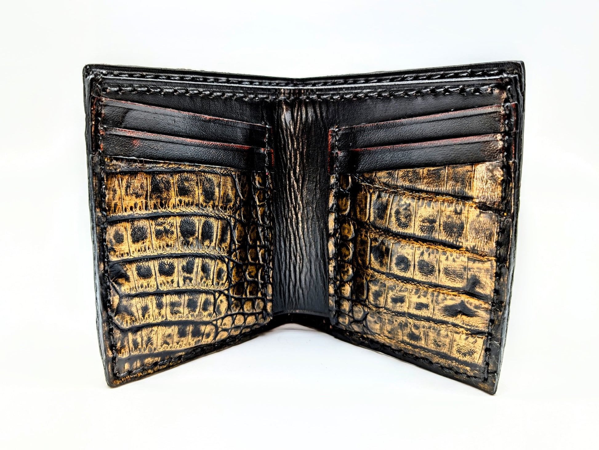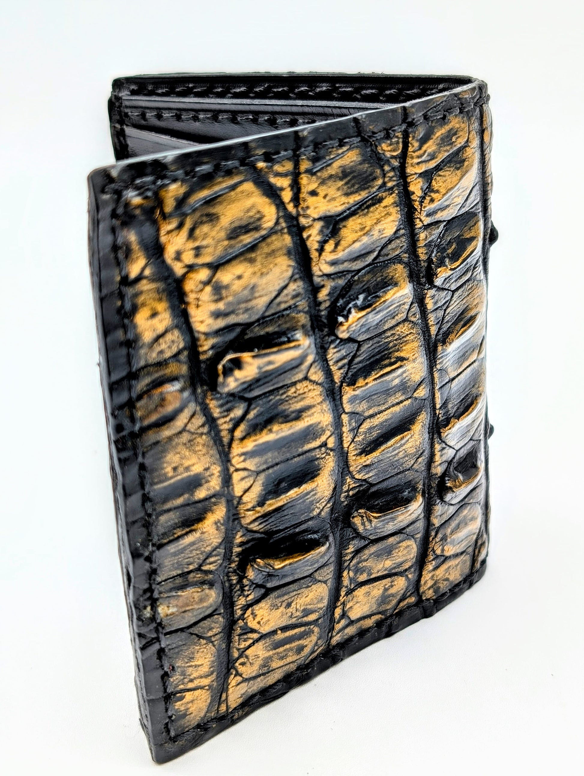 Black & Gold Genuine Alligator Hornback Leather Wallet – Full Alligator| 6 Card Slots | Sobek Leather