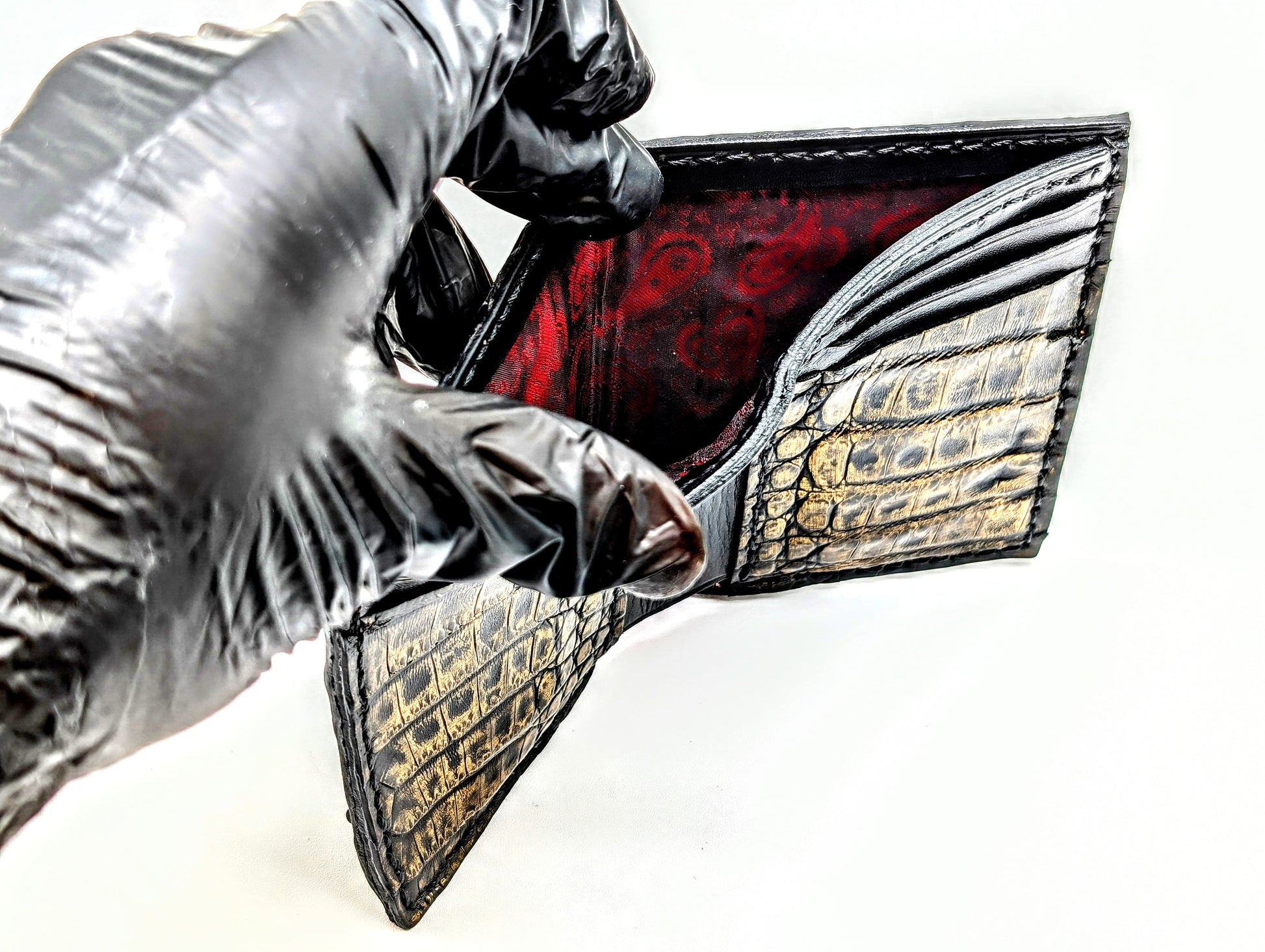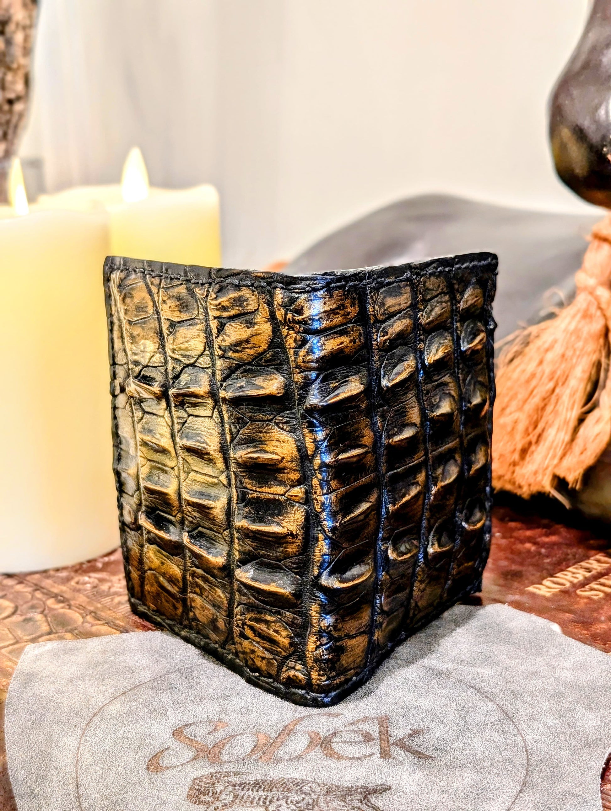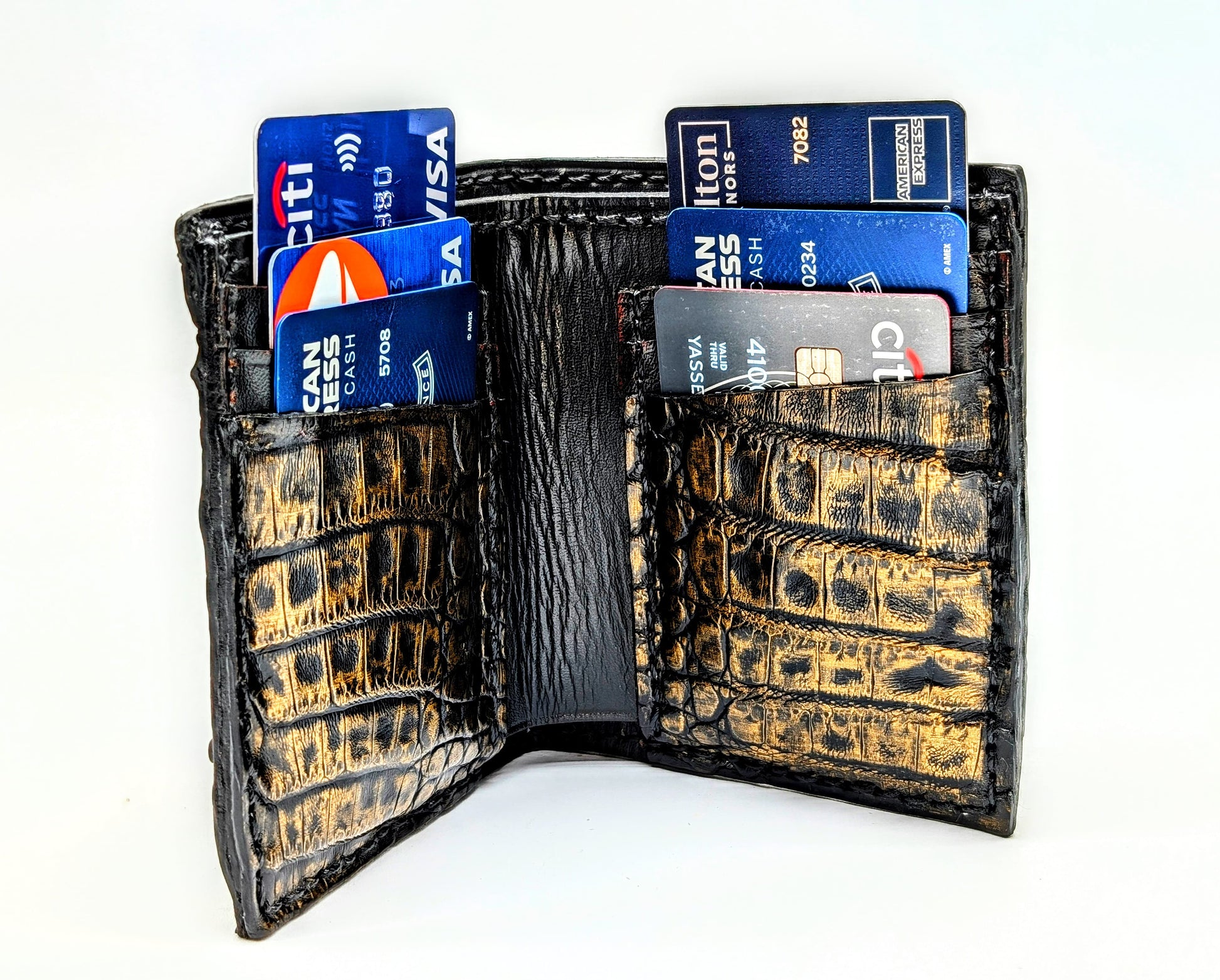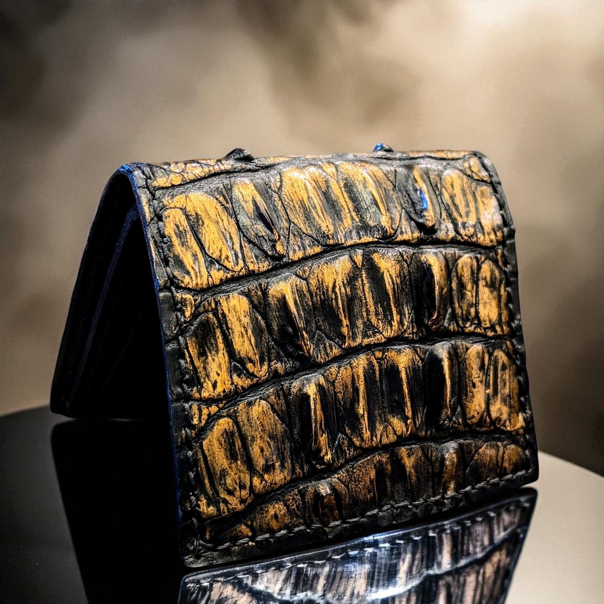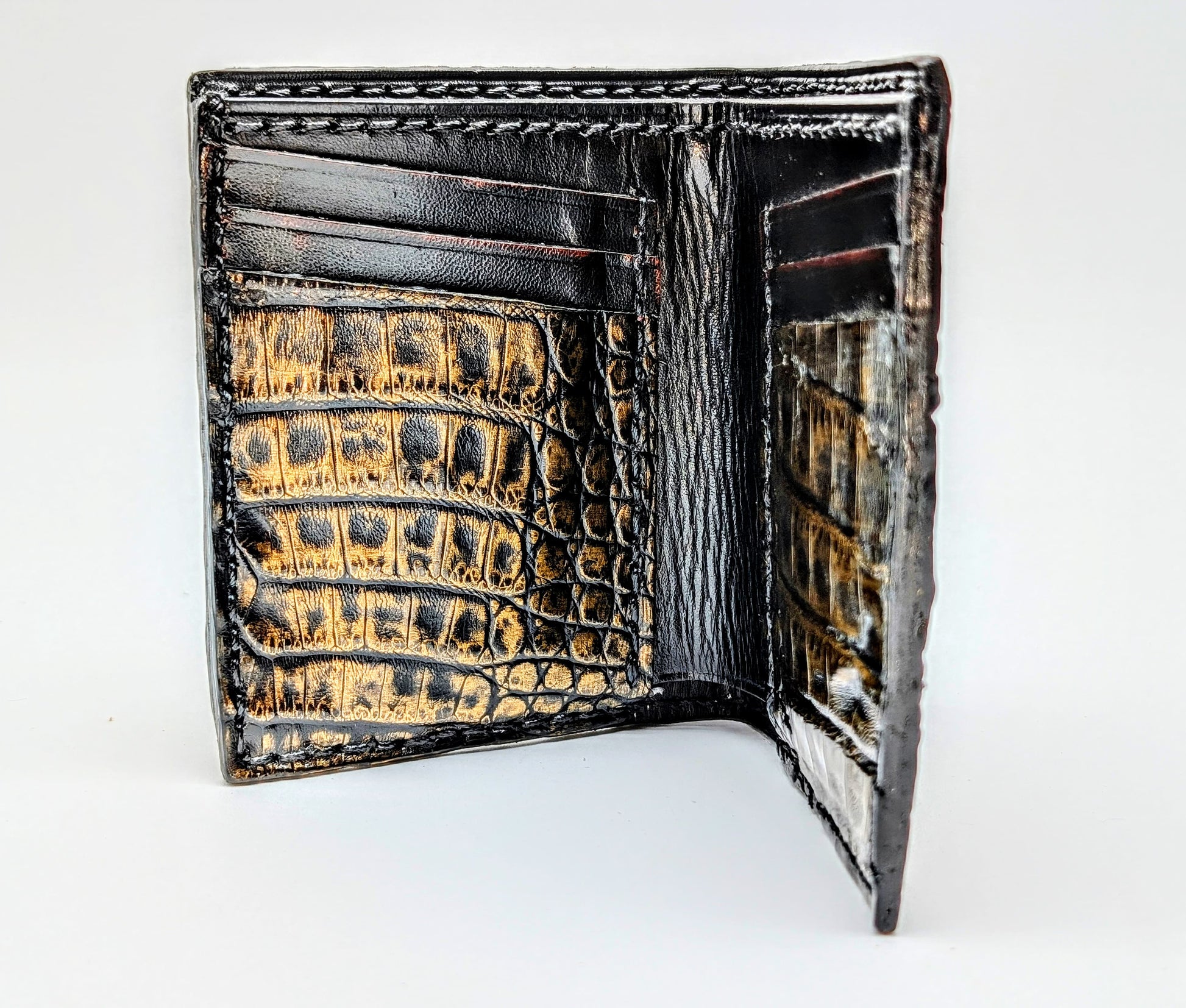 Black & Gold Genuine Alligator Hornback Leather Wallet – Full Alligator| 6 Card Slots | Sobek Leather
