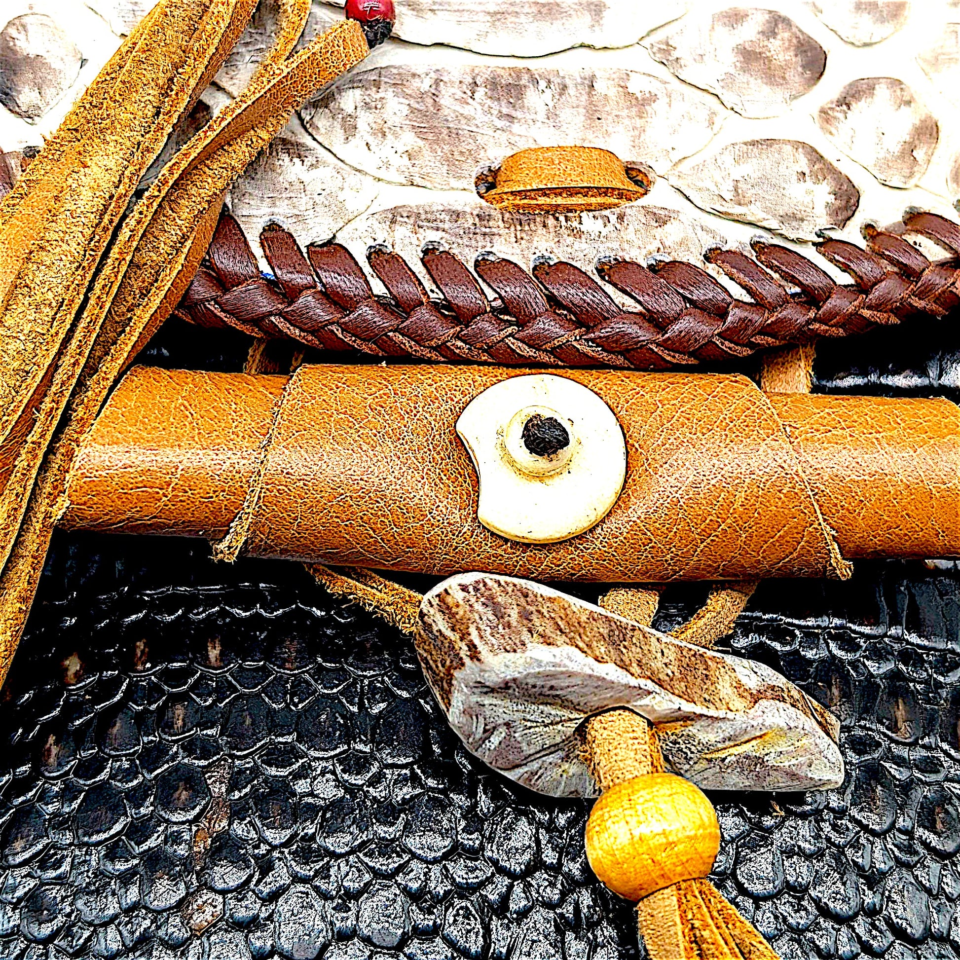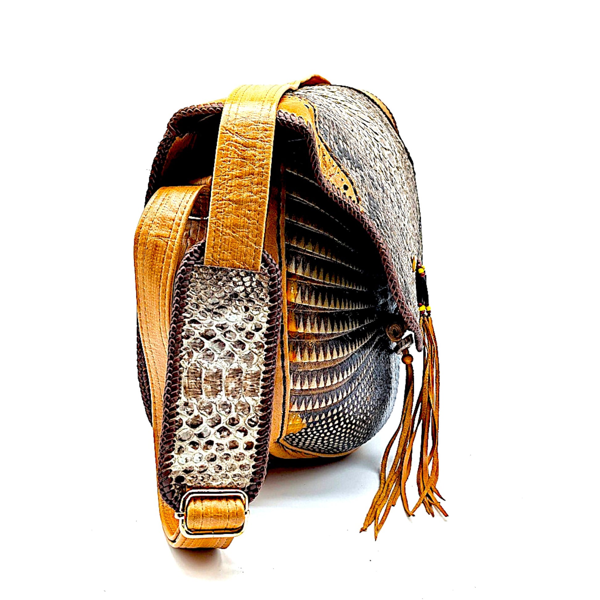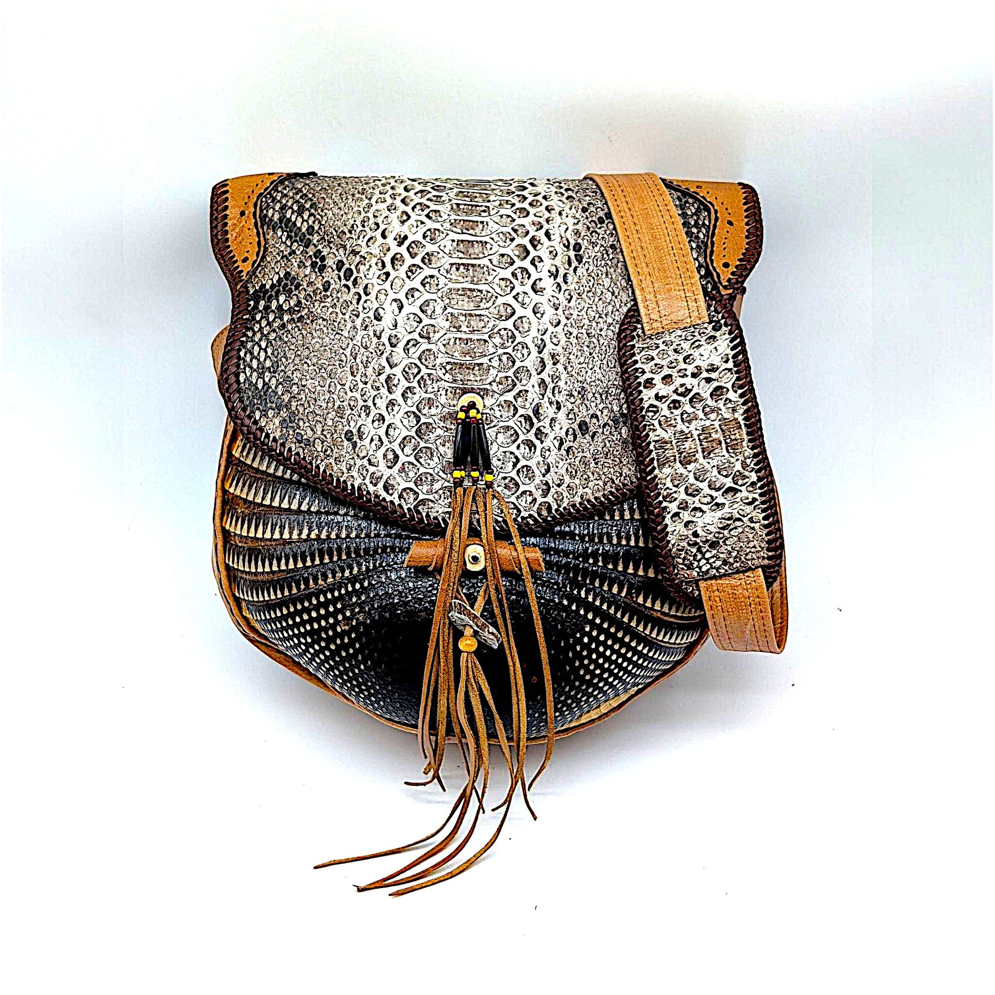 Bohemian Armadillo Shell Crossbody Bag| Snakeskin| Artisan Whipstitch Leather Bag| Antler Bone| Fringe| Southwestern Fashion