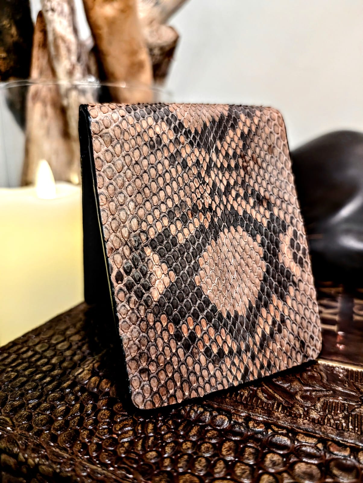 Caffe Mocha Snakeskin Leather Western Wallet, Bifold Wallet, 6 card slot, Handmade Western Wallet, Cowboy Wallet