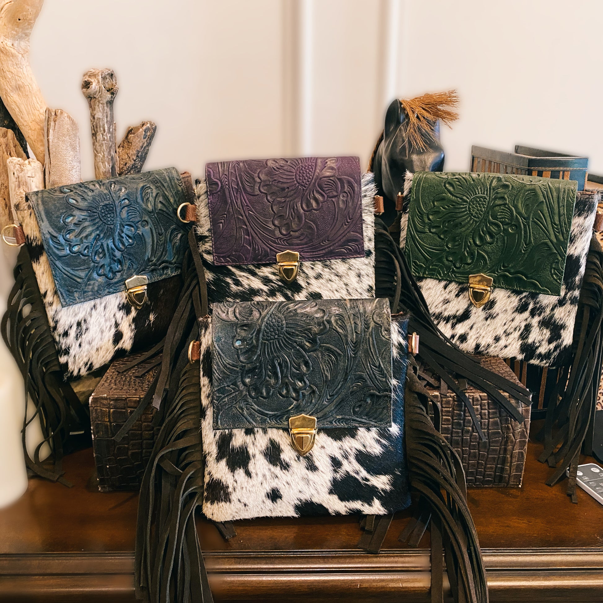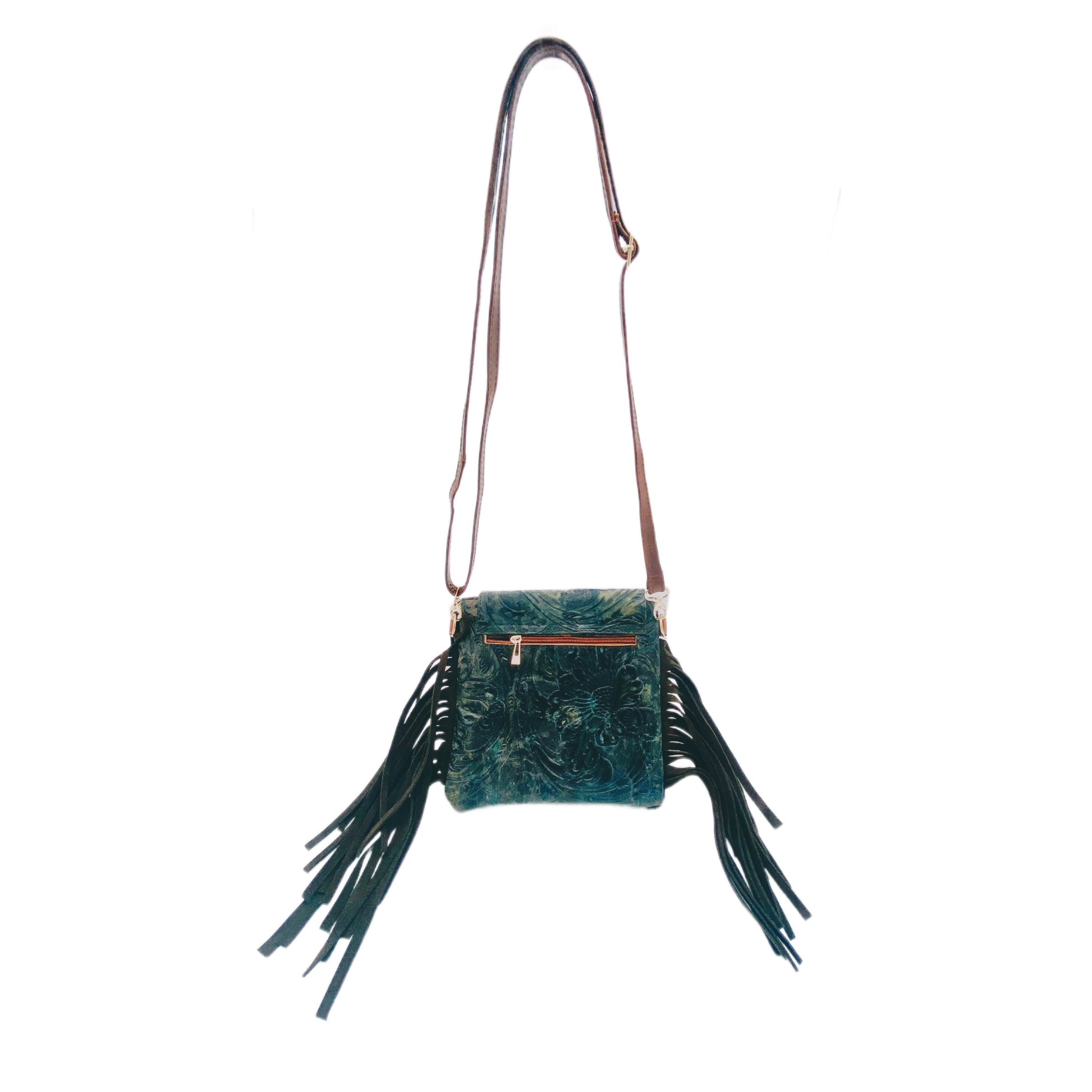 Fleurbleu Mini Floral Tooled Leather Cowhide Fringe Purse