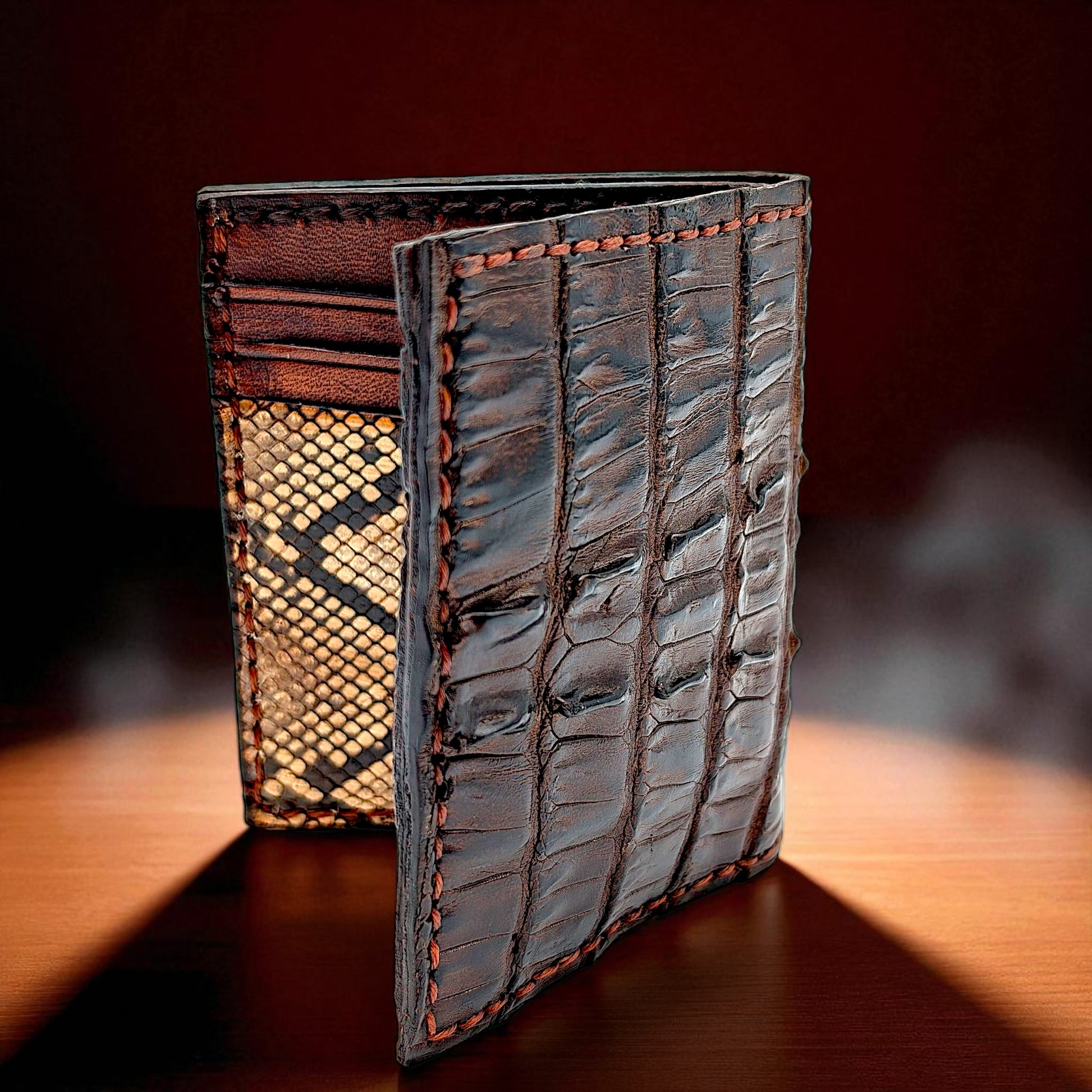 Genuine Alligator Tail & Snakeskin Wallet – Slim Exotic Bifold | Handmade by Sobek