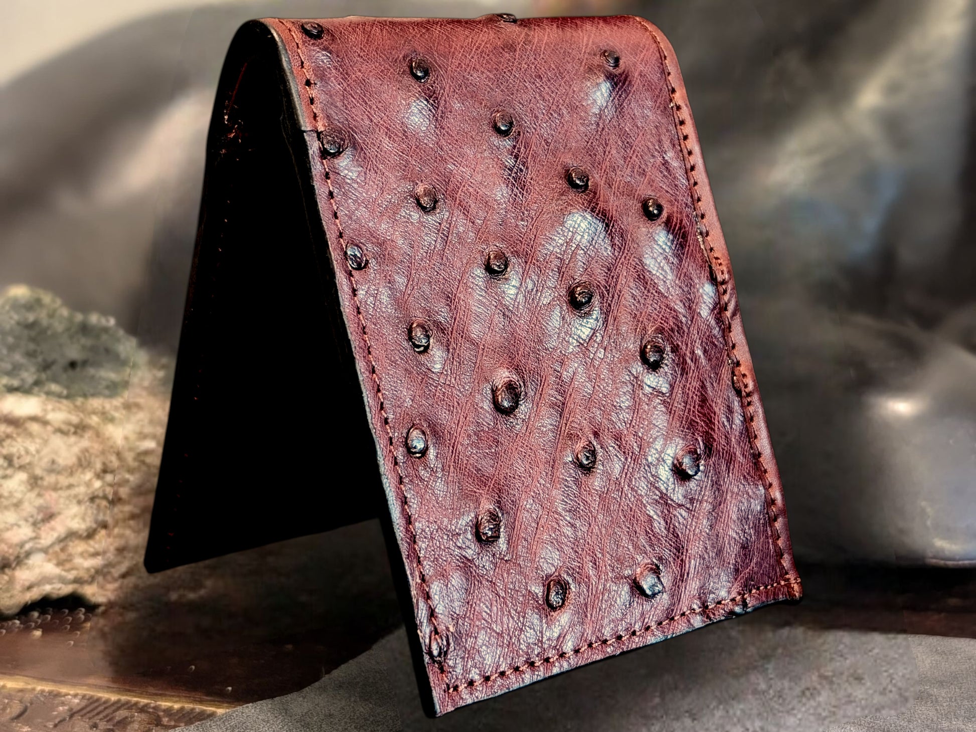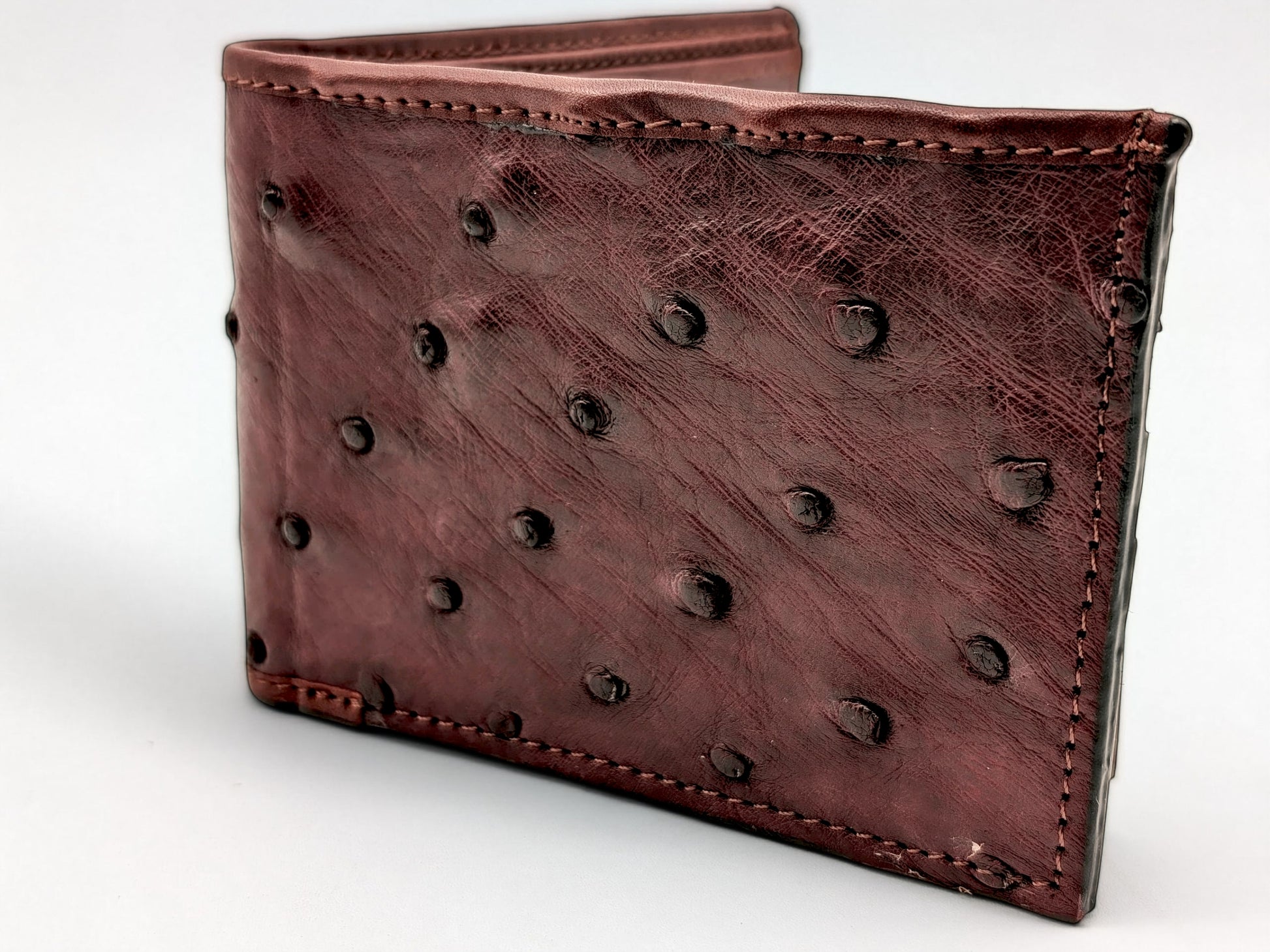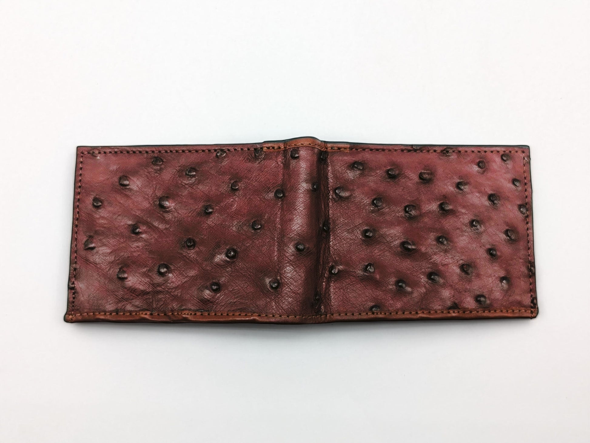 Genuine Ostrich Leather Bifold Wallet – Handmade Exotic Leather with ID Window & 6 Card Slots