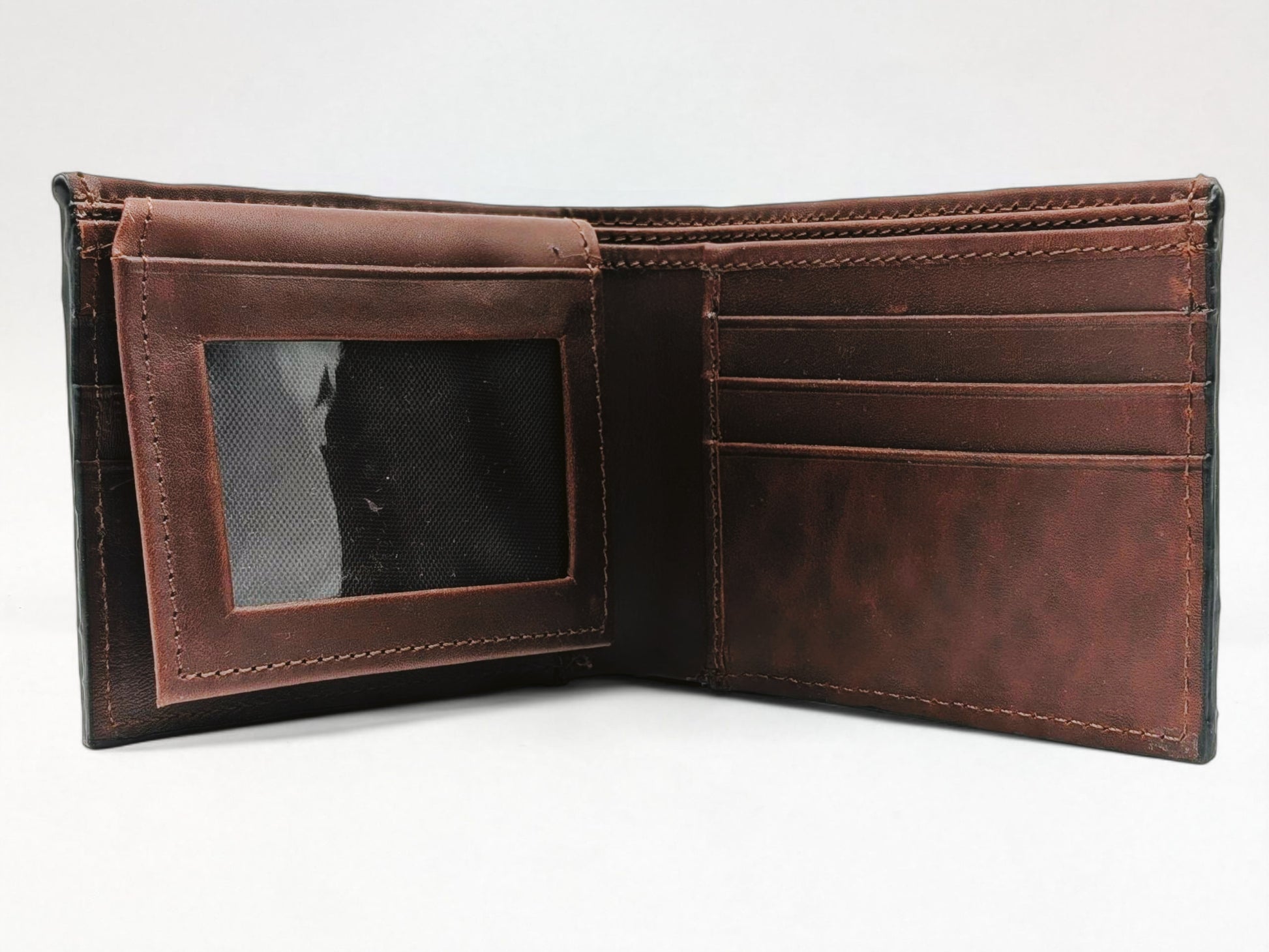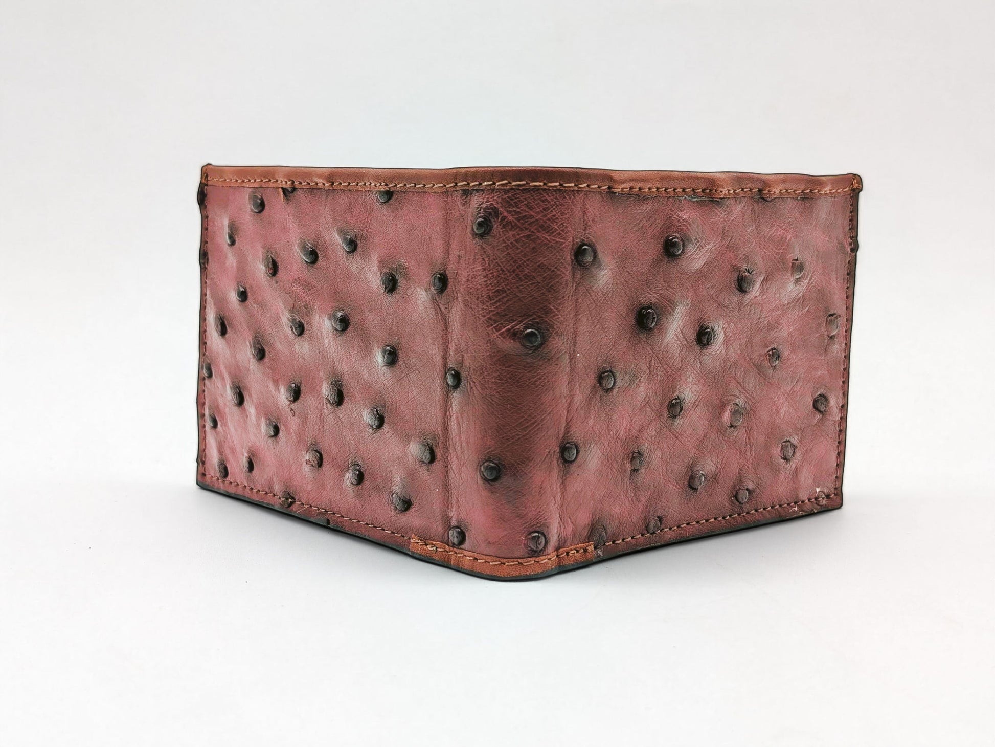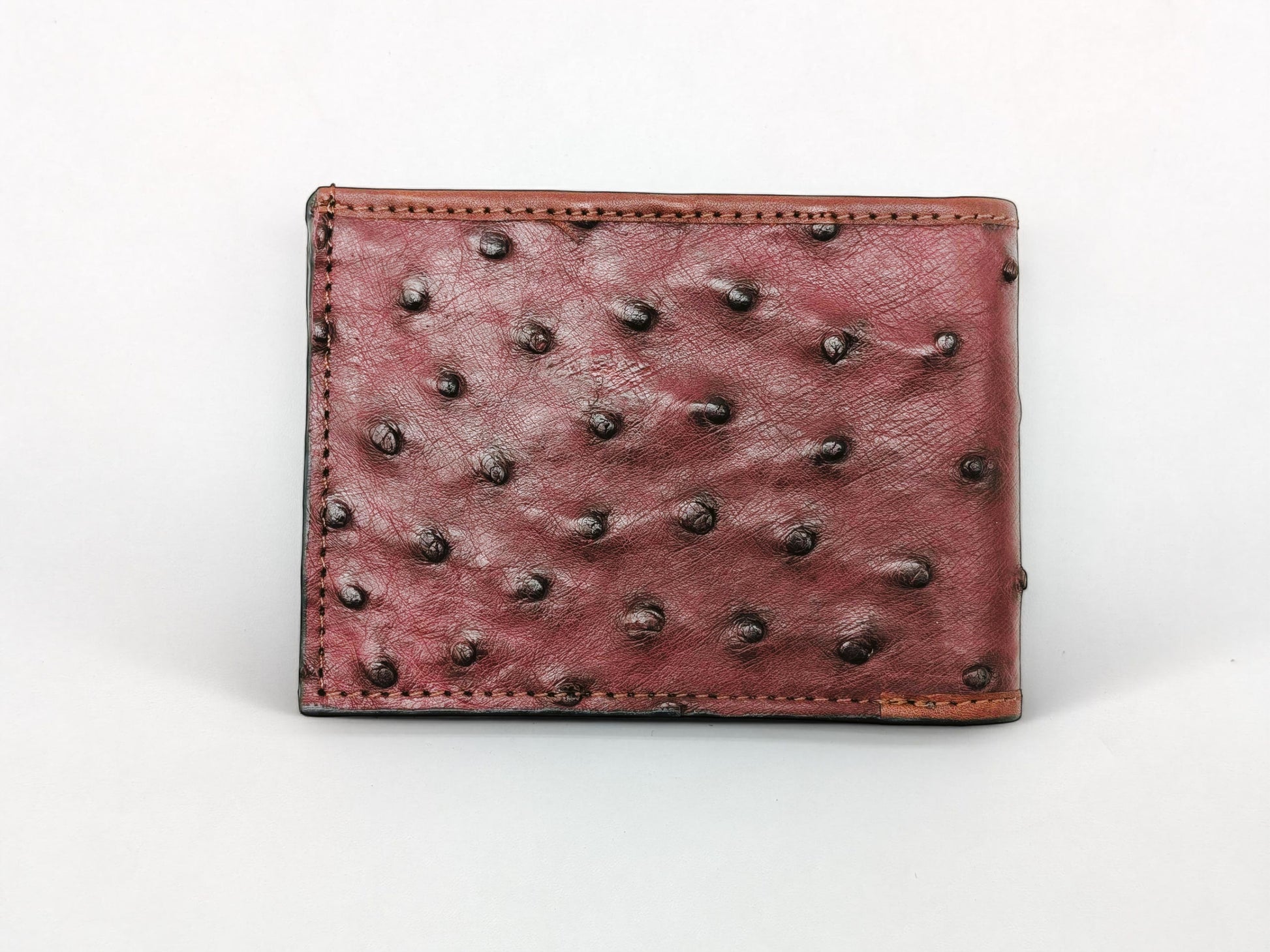 Genuine Ostrich Leather Bifold Wallet – Handmade Exotic Leather with ID Window & 6 Card Slots