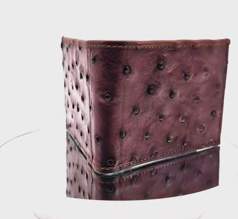 Authentic Ostrich Leather Exterior: Rich brown hue with natural quill bumps for a unique, tactile finish
