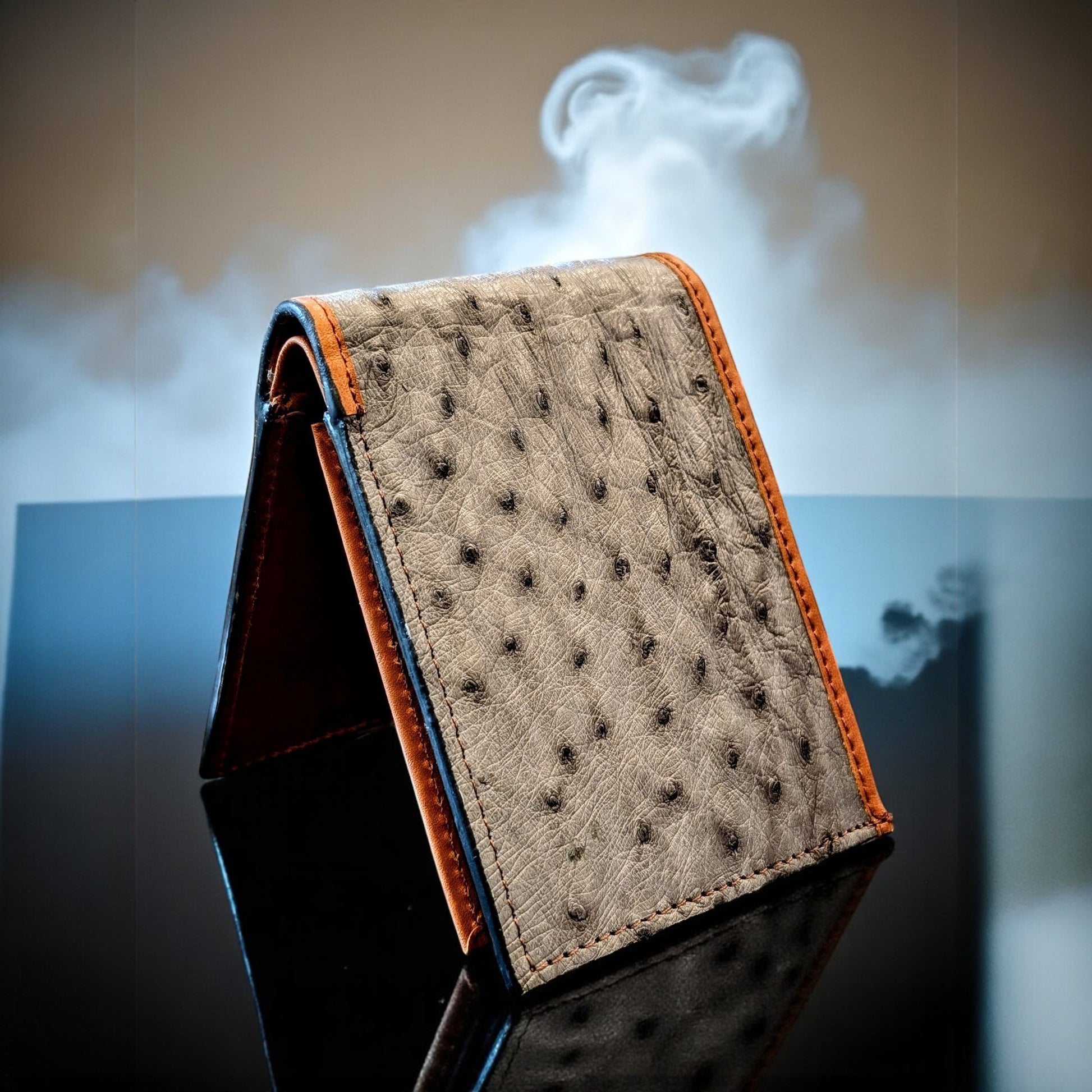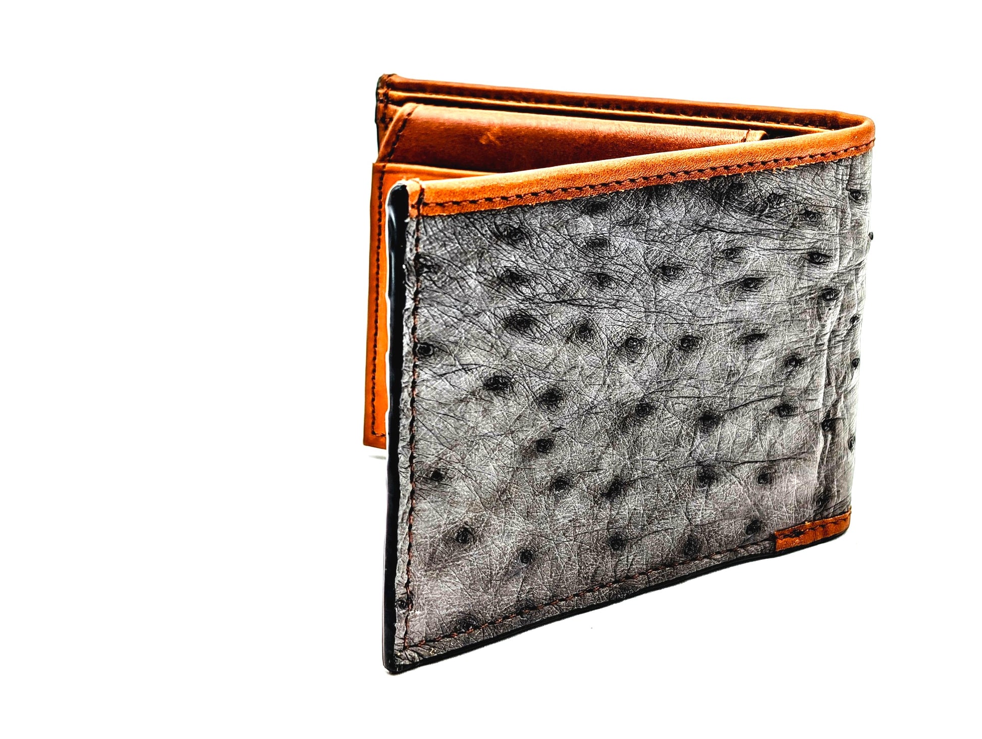 Genuine Ostrich Leather Bifold Wallet – Handmade Exotic Leather with ID Window & 6 Card Slots