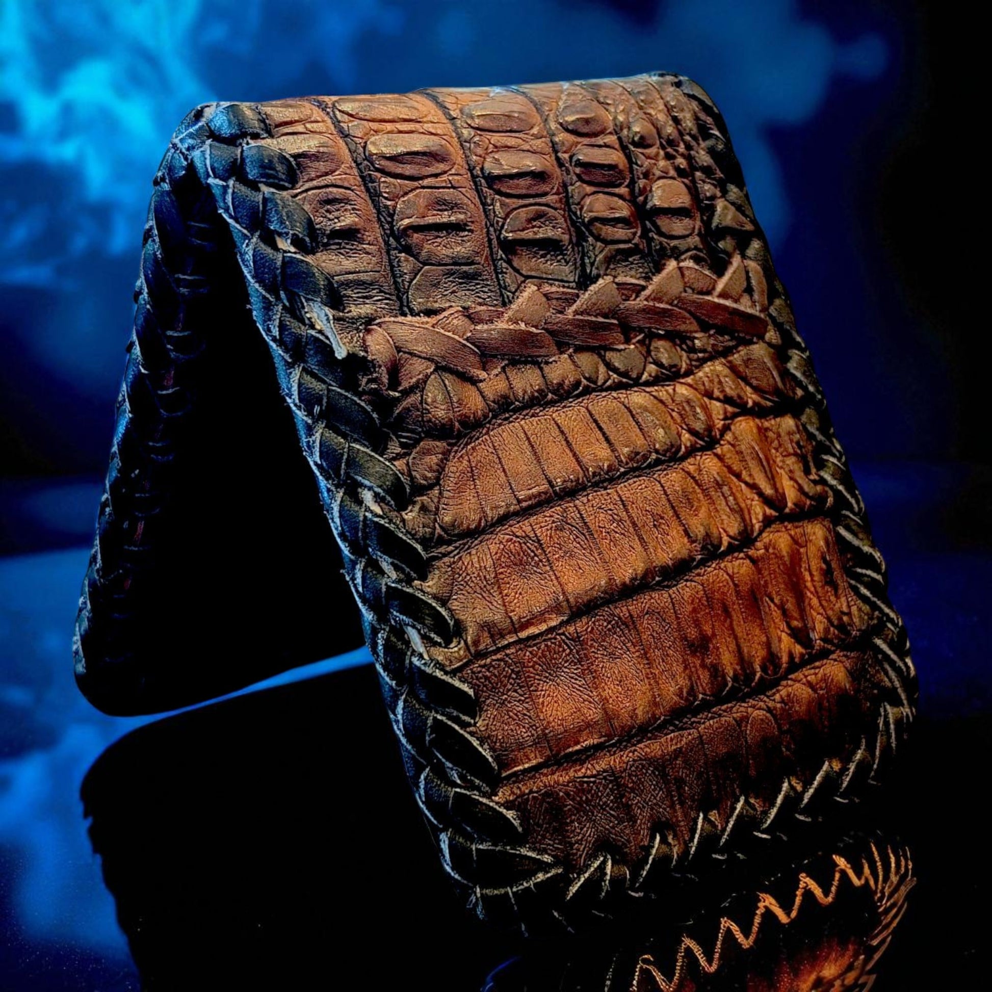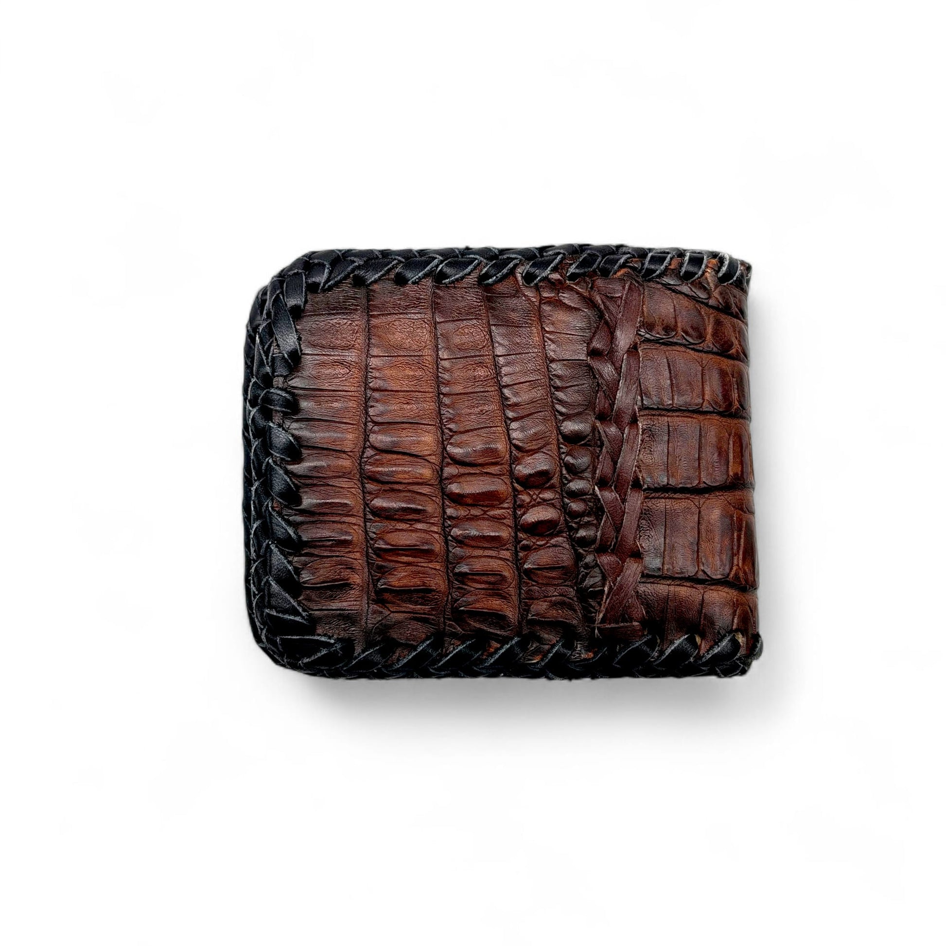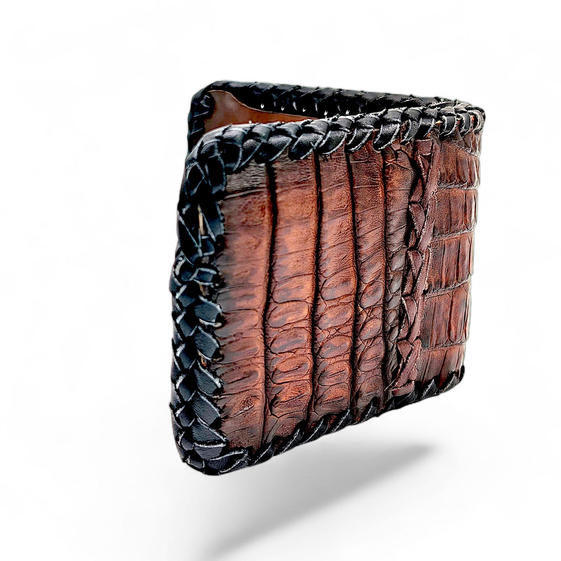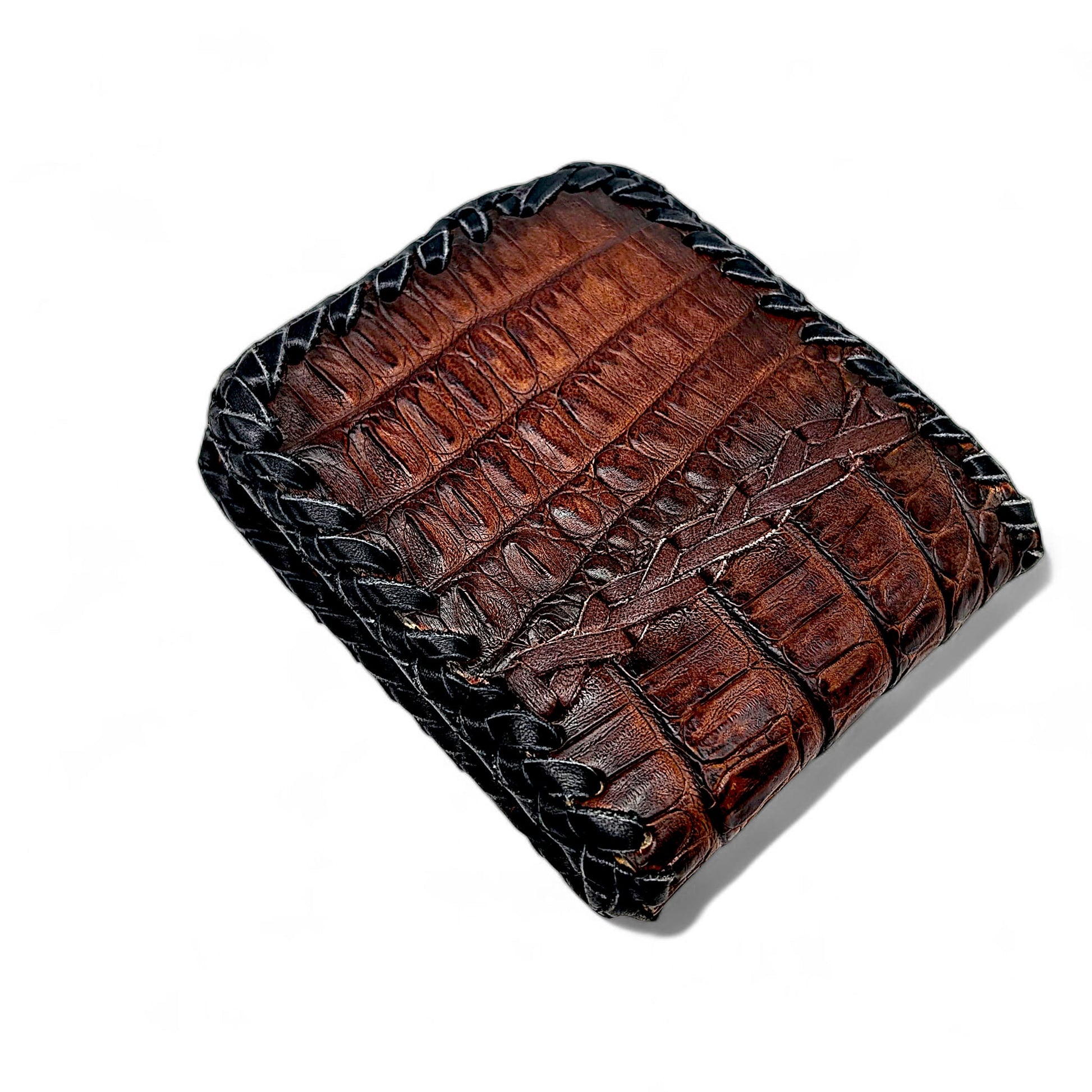 Handmade Hornback Alligator Leather Wallet – Whipstitched Bifold with Leather Interior