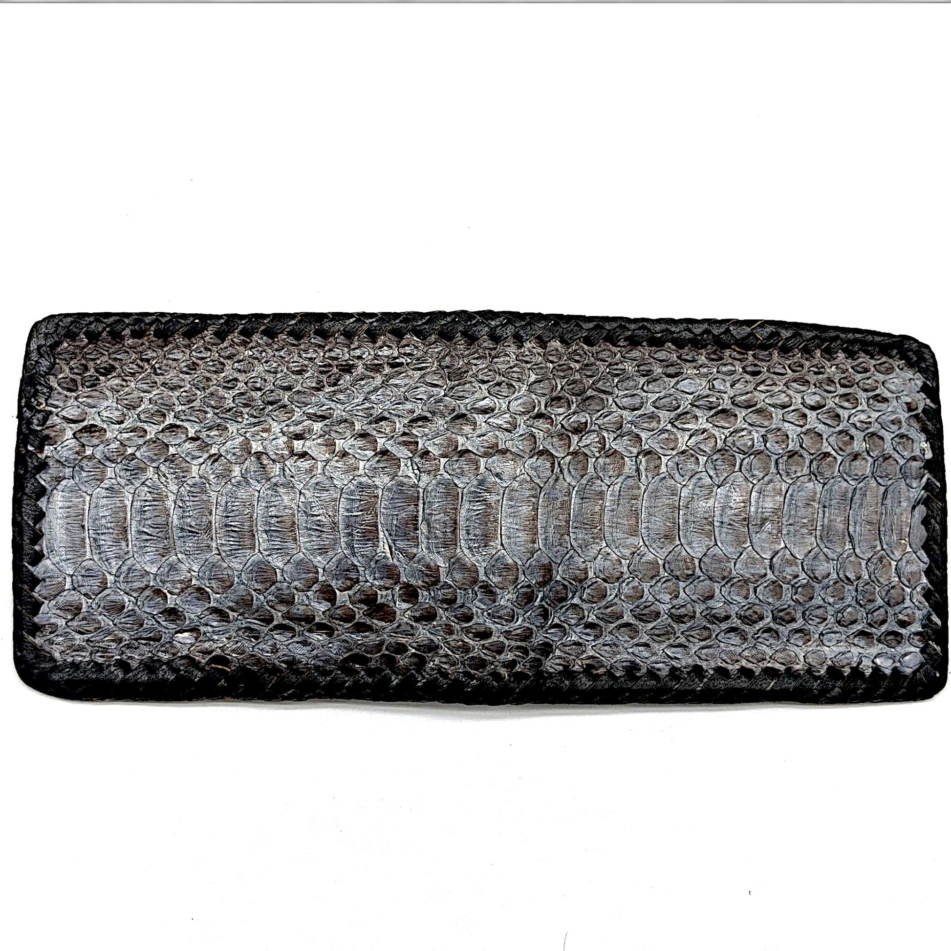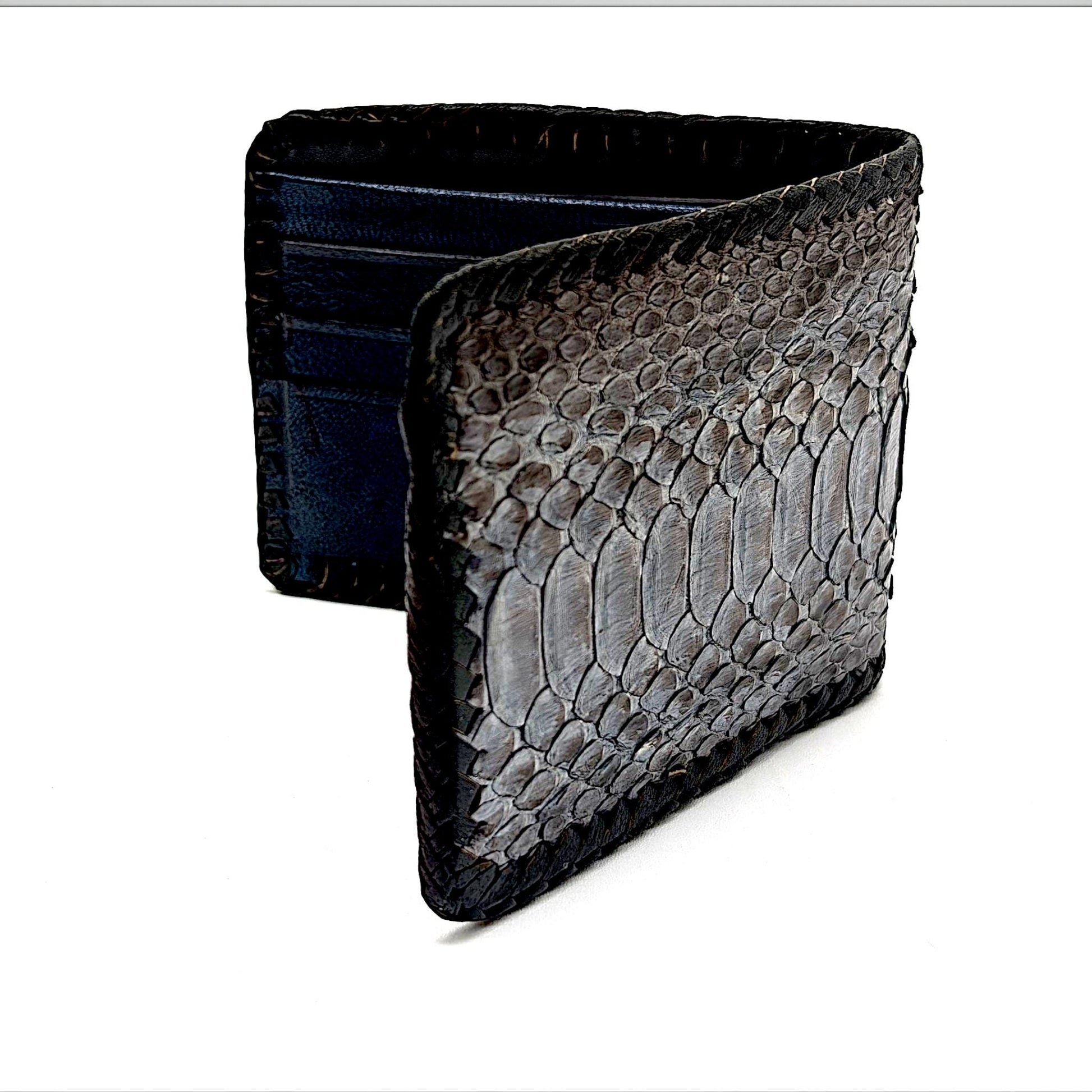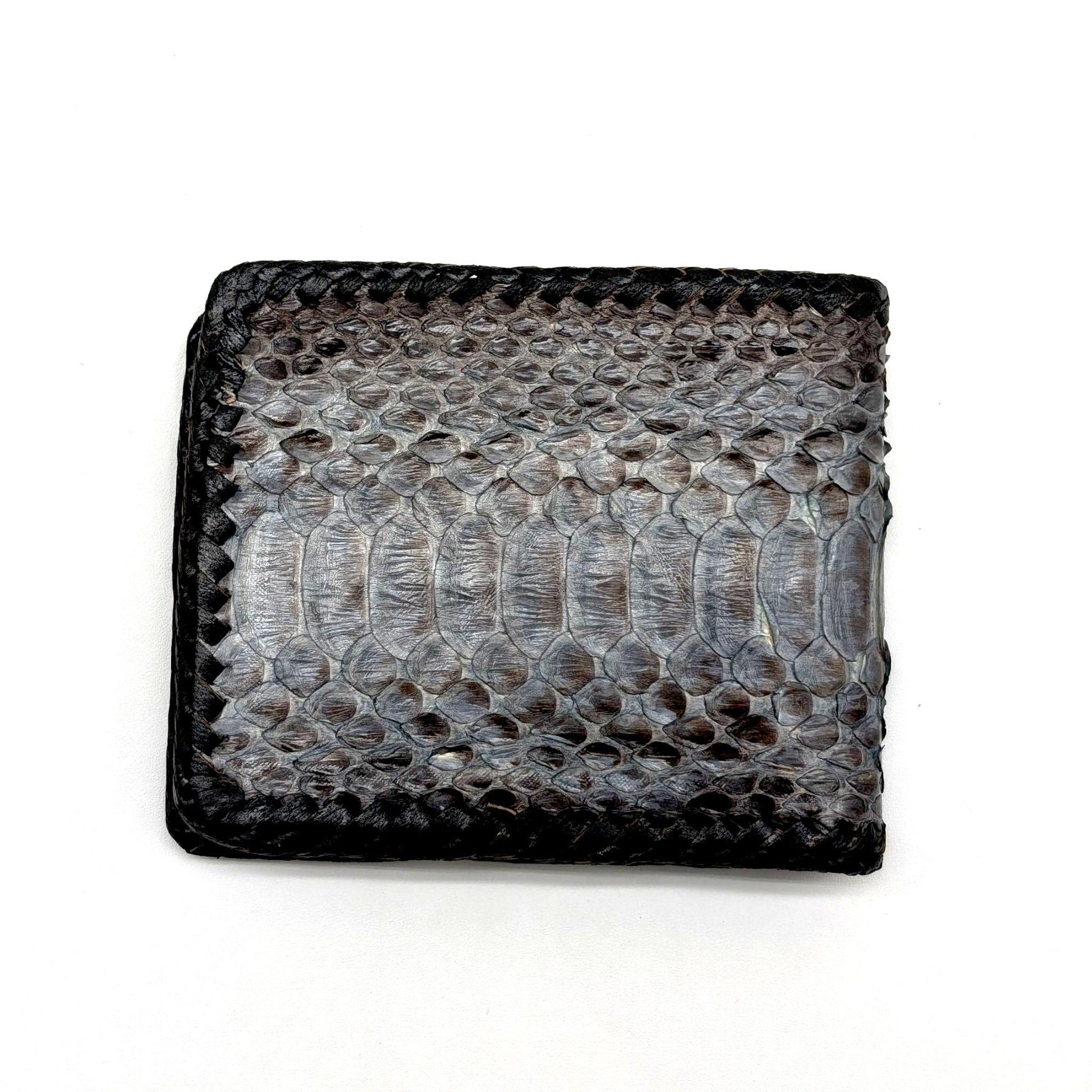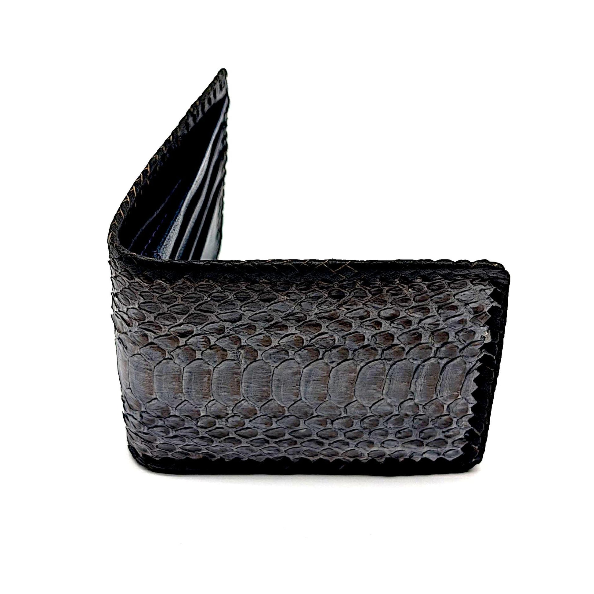 Elevate your everyday carry with this artisan-crafted snakeskin bifold wallet. Handmade with precision and care, this wallet features genuine snakeskin on the exterior, contrasted by a sleek leather interior.