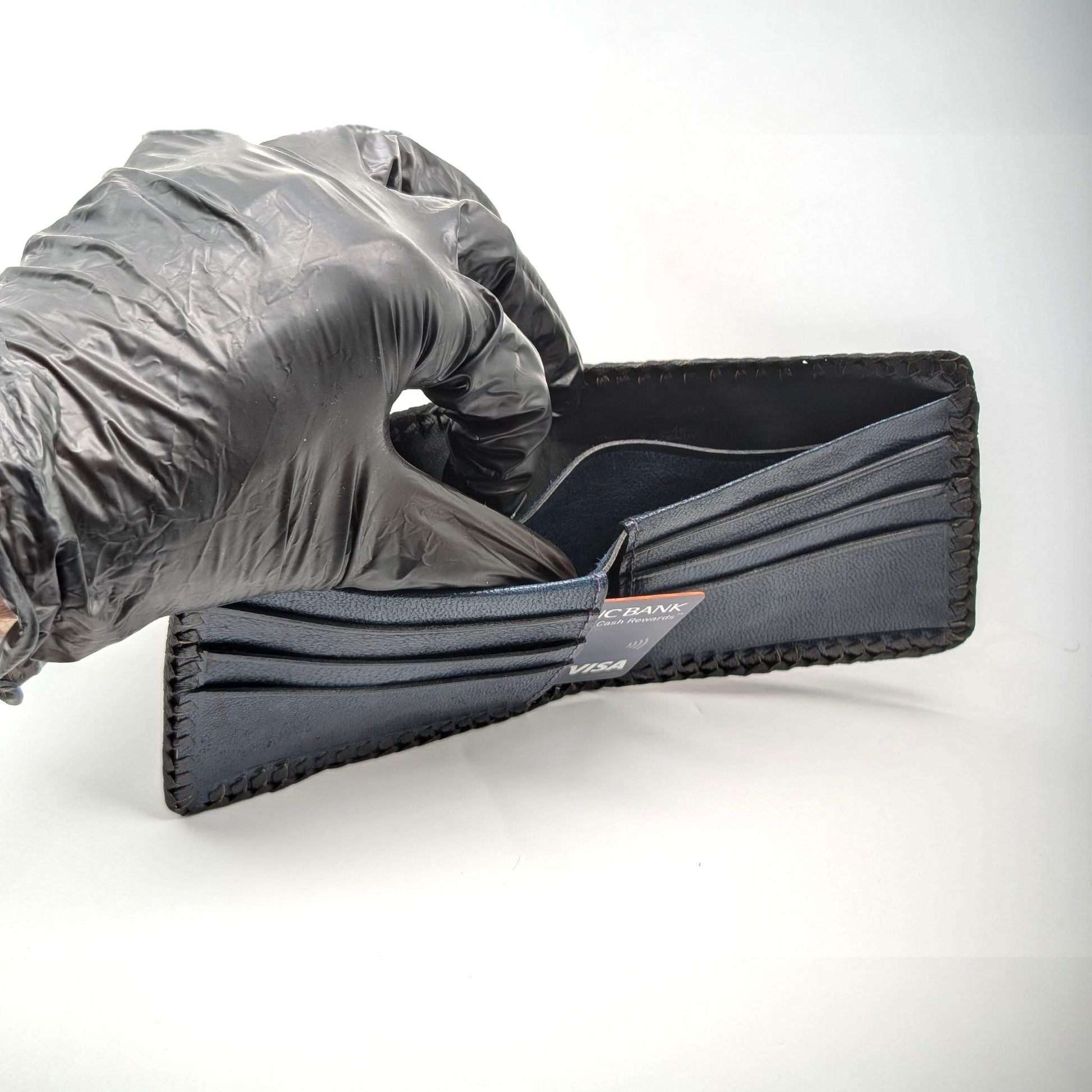 Each wallet is a one-of-a-kind creation due to the natural variation in exotic leather patterns.