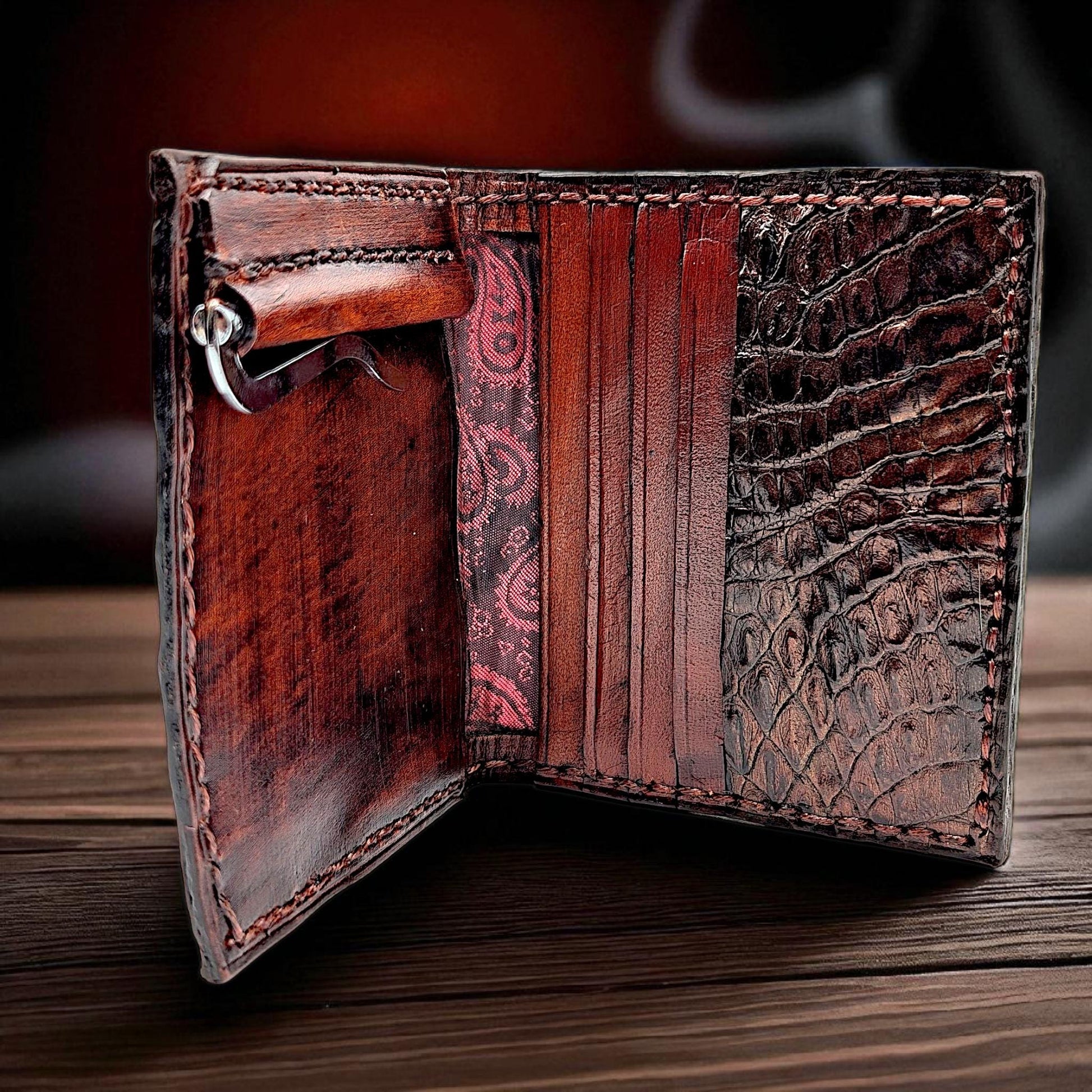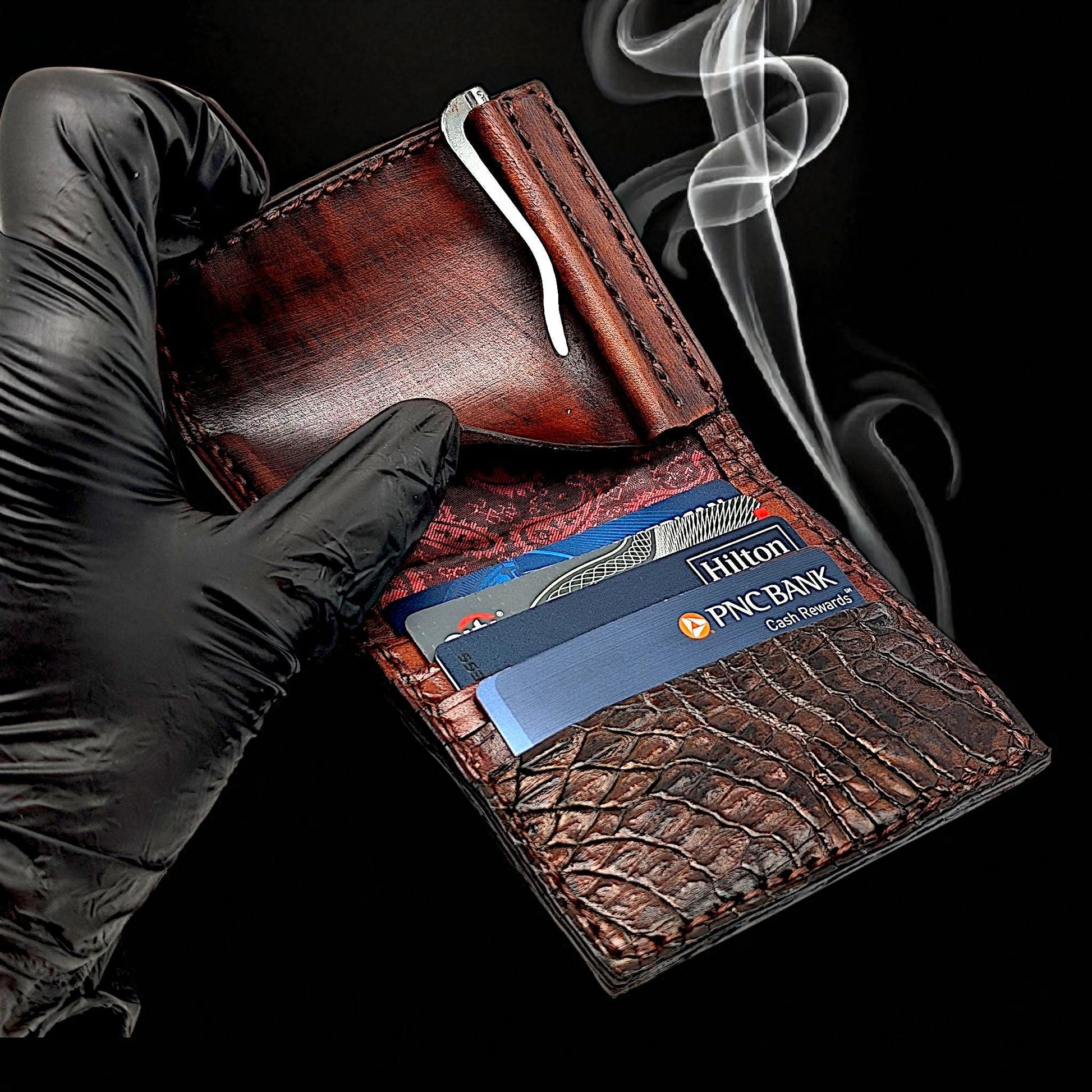 Elevate your everyday carry with this artisan-crafted alligator leather money clip wallet, designed for the modern gentleman who appreciates timeless elegance and functionality.