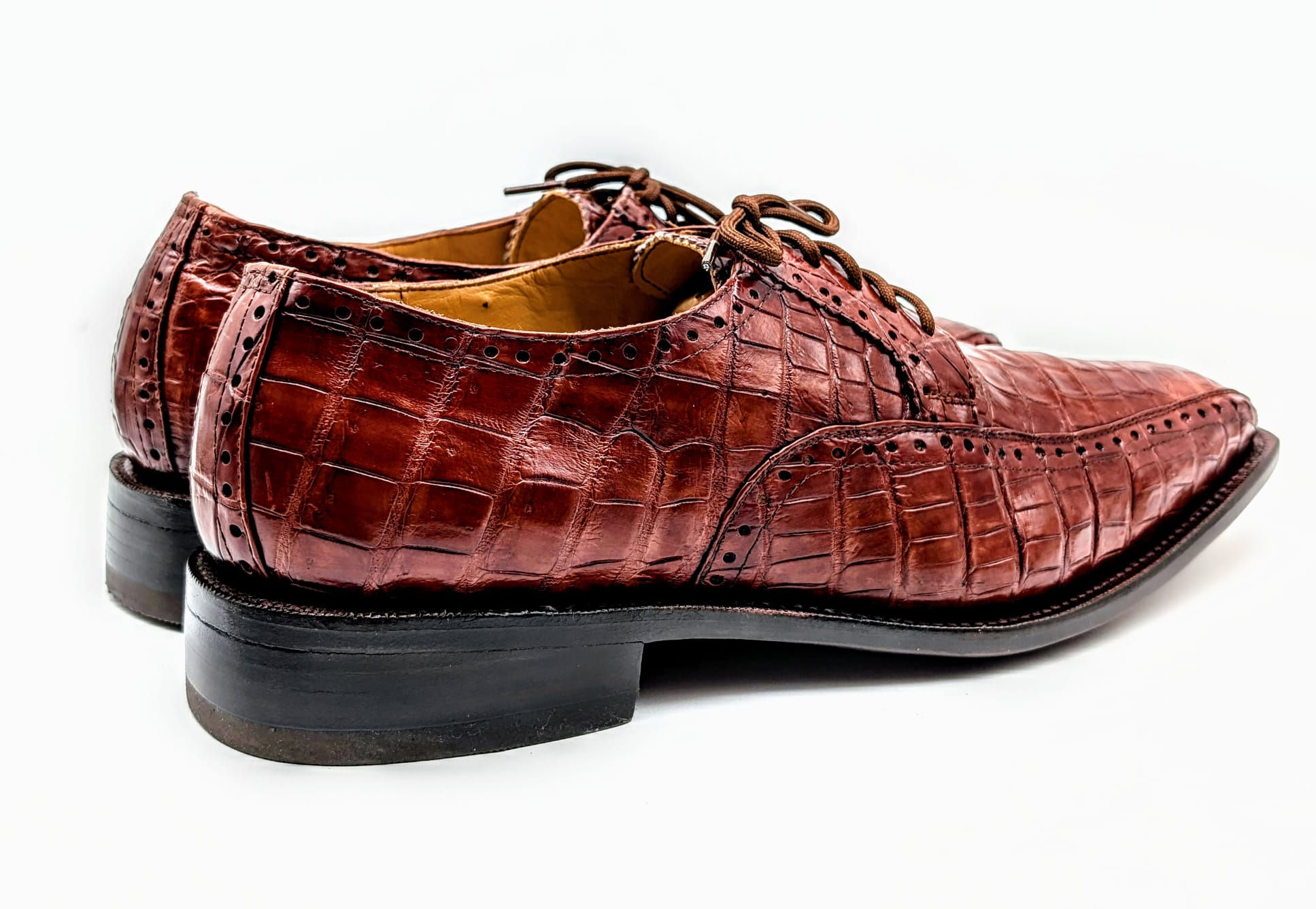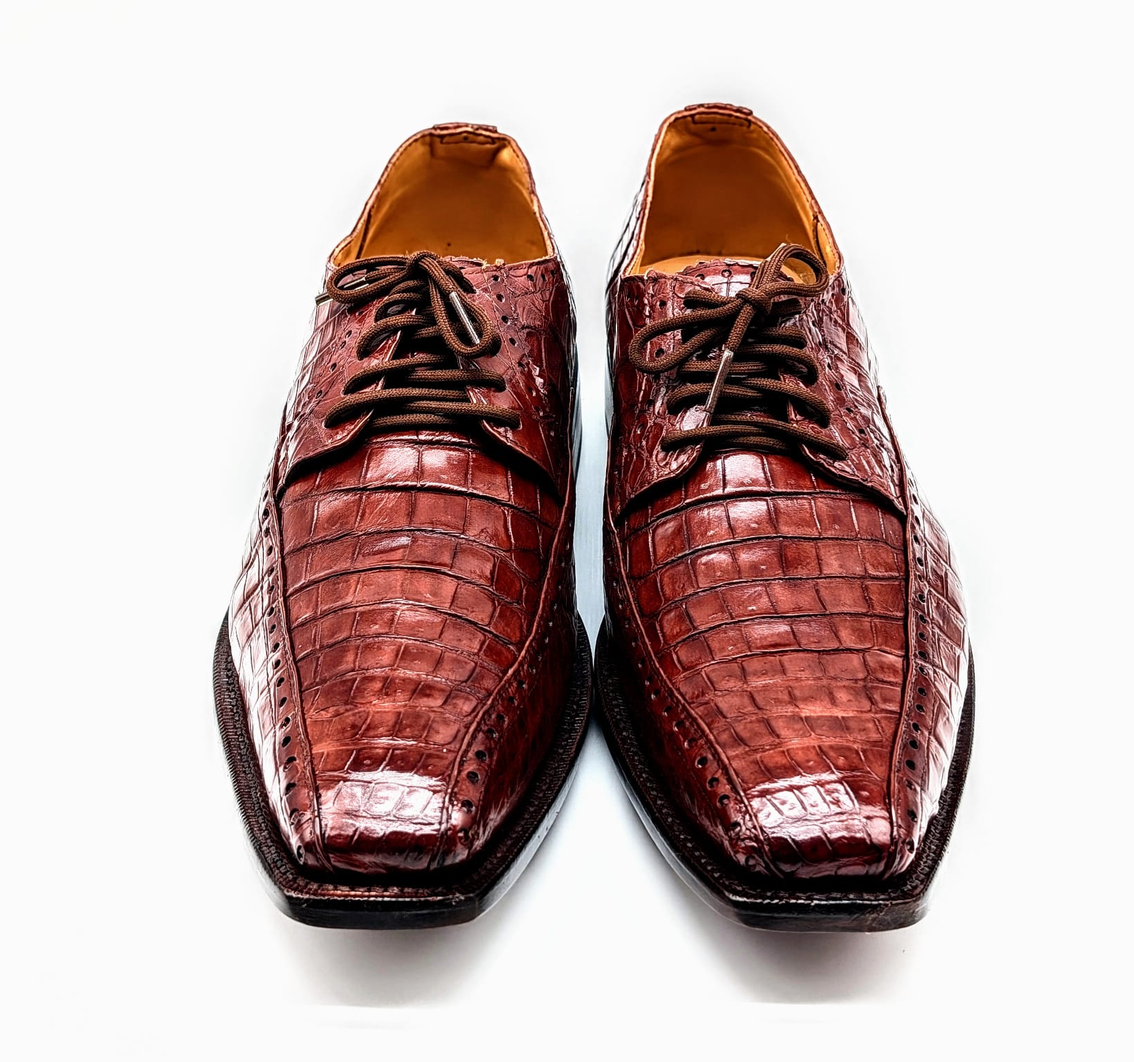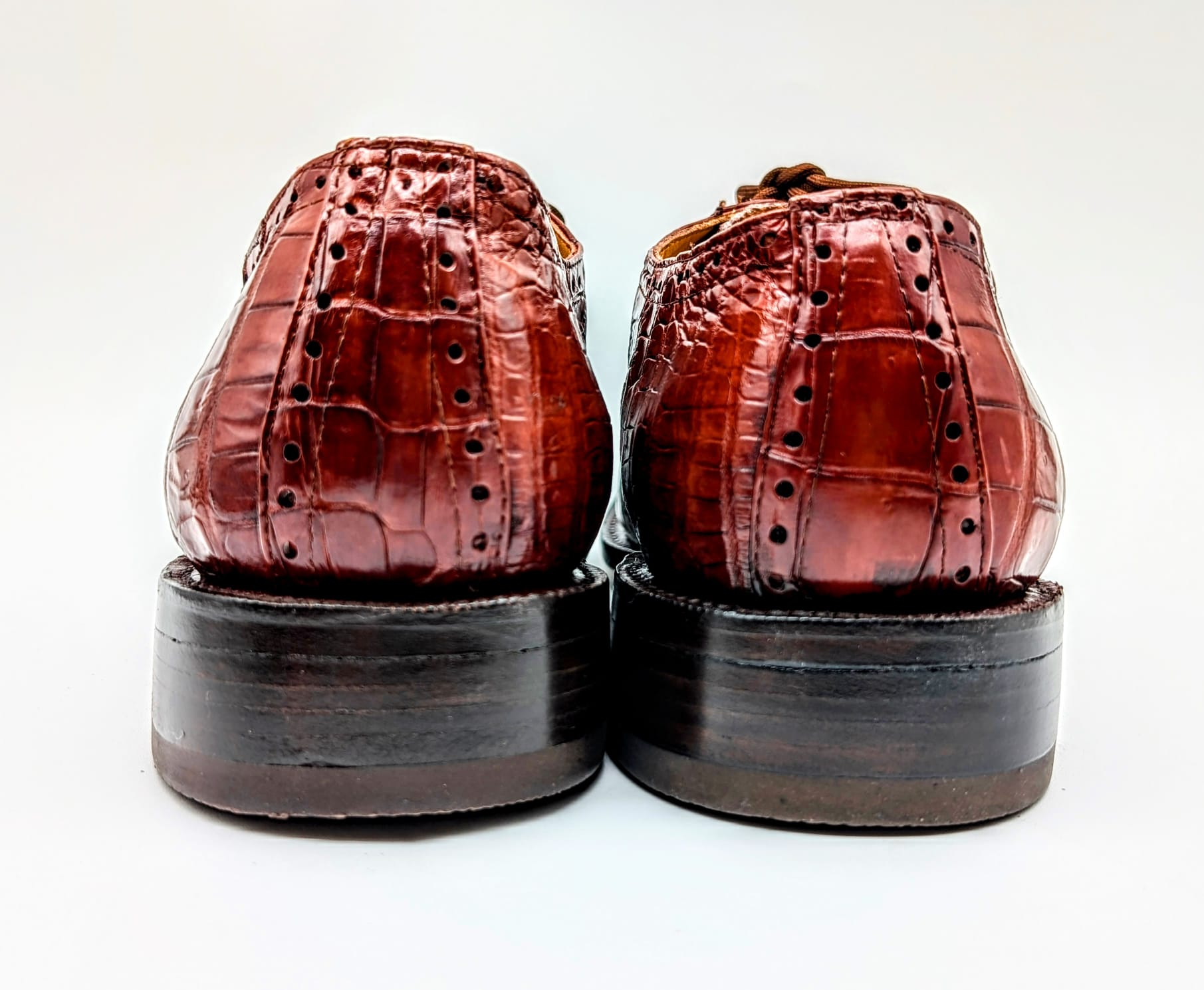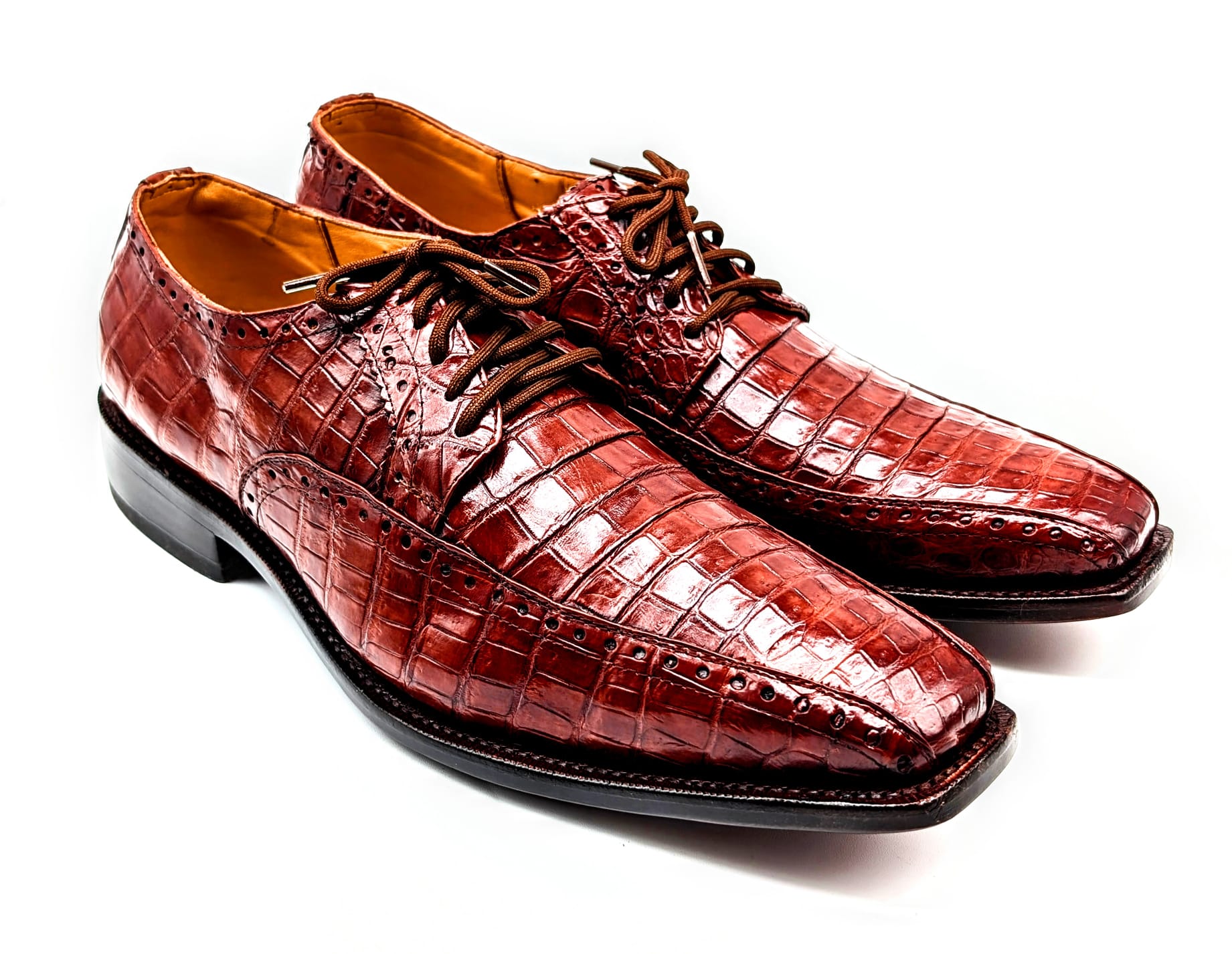 Men's Alligator Leather Oxford Cognac Brown Dress Shoes