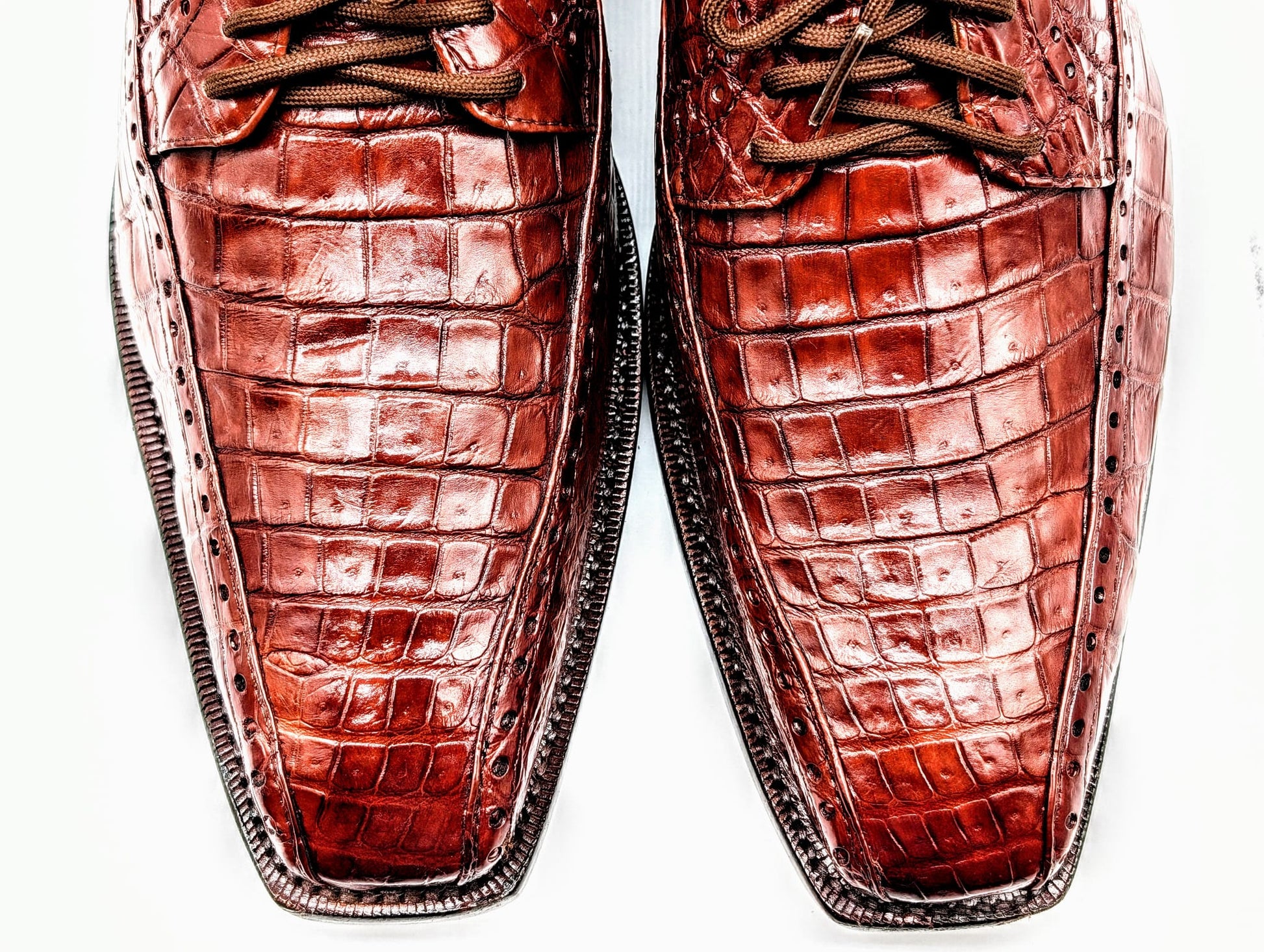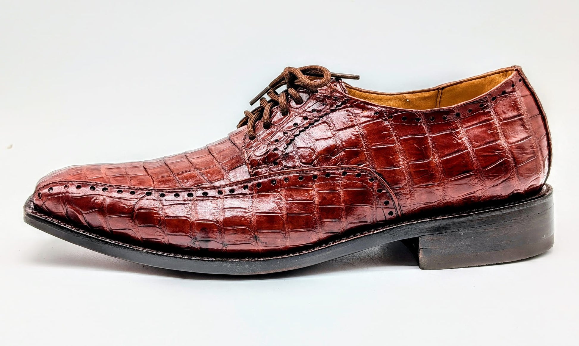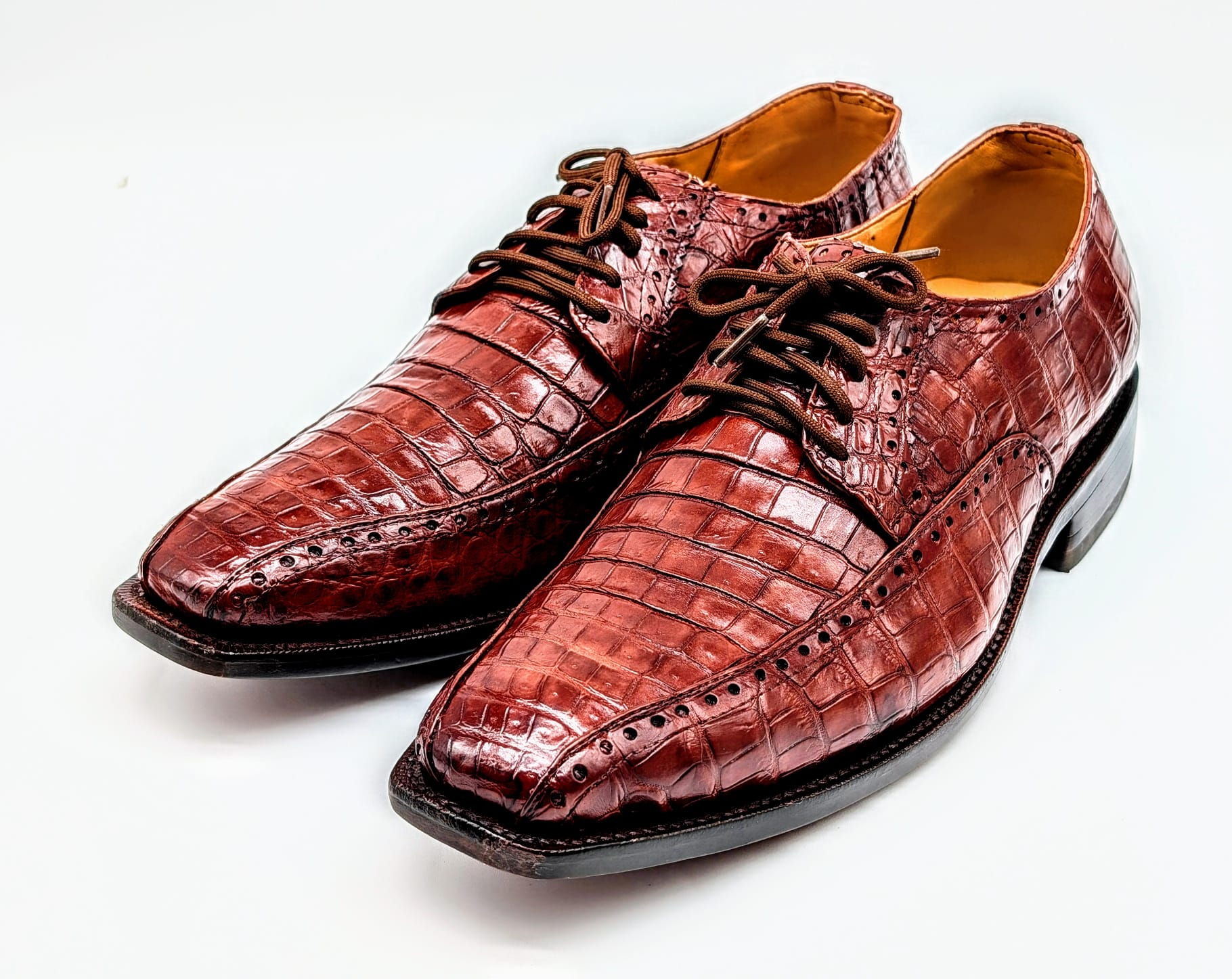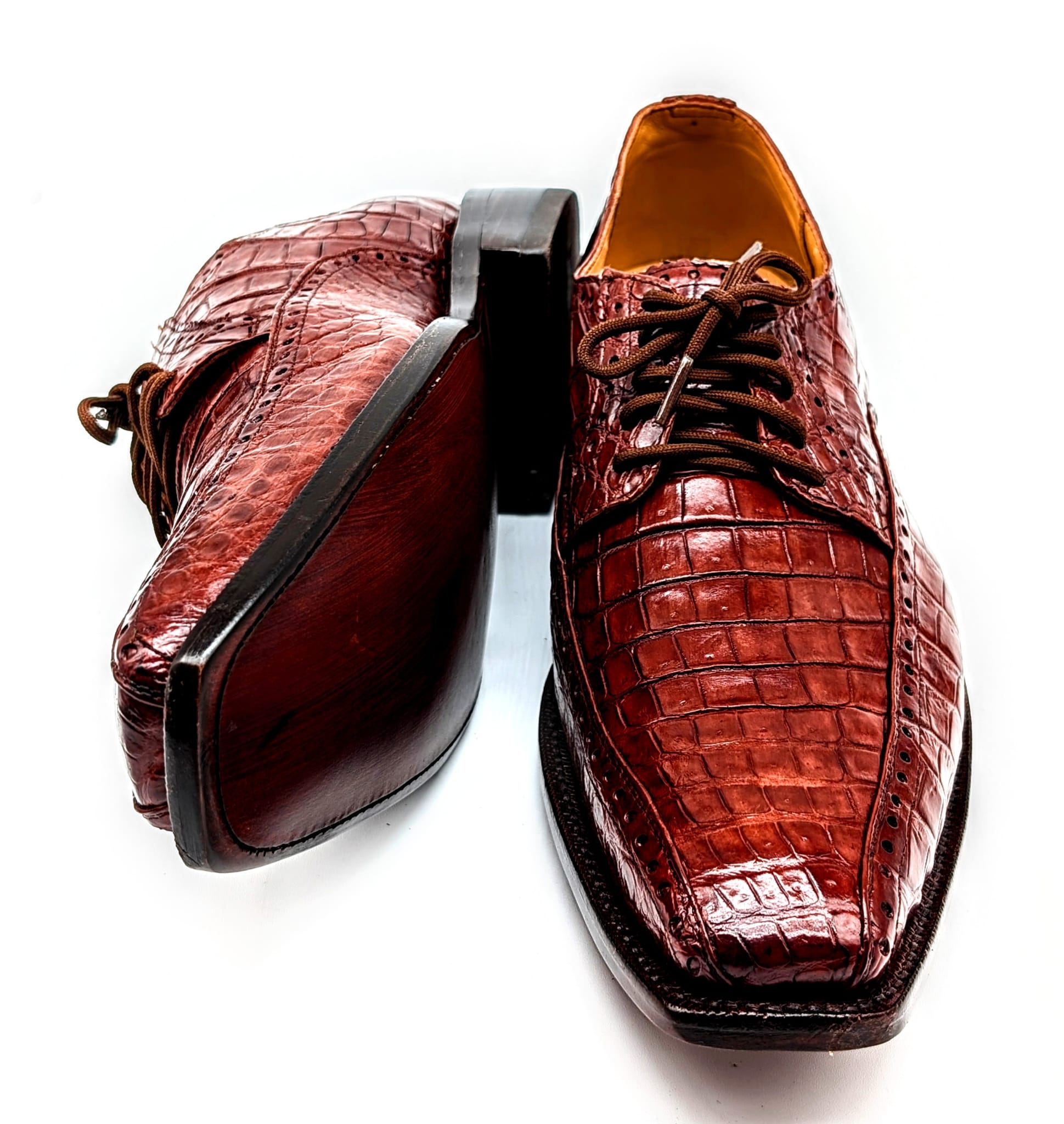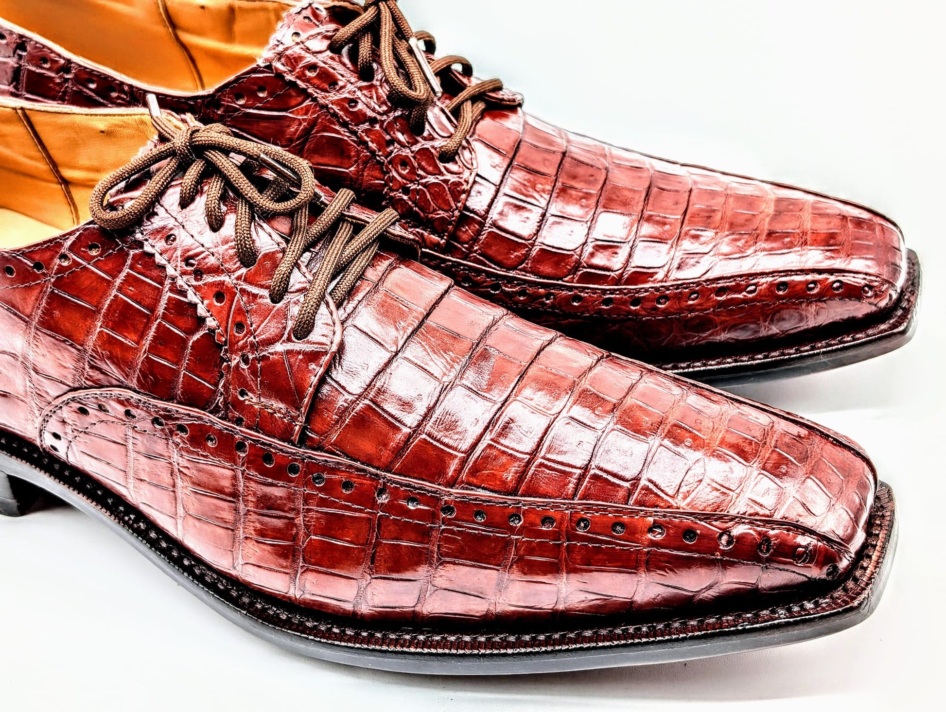 Men's Alligator Leather Oxford Cognac Brown Dress Shoes