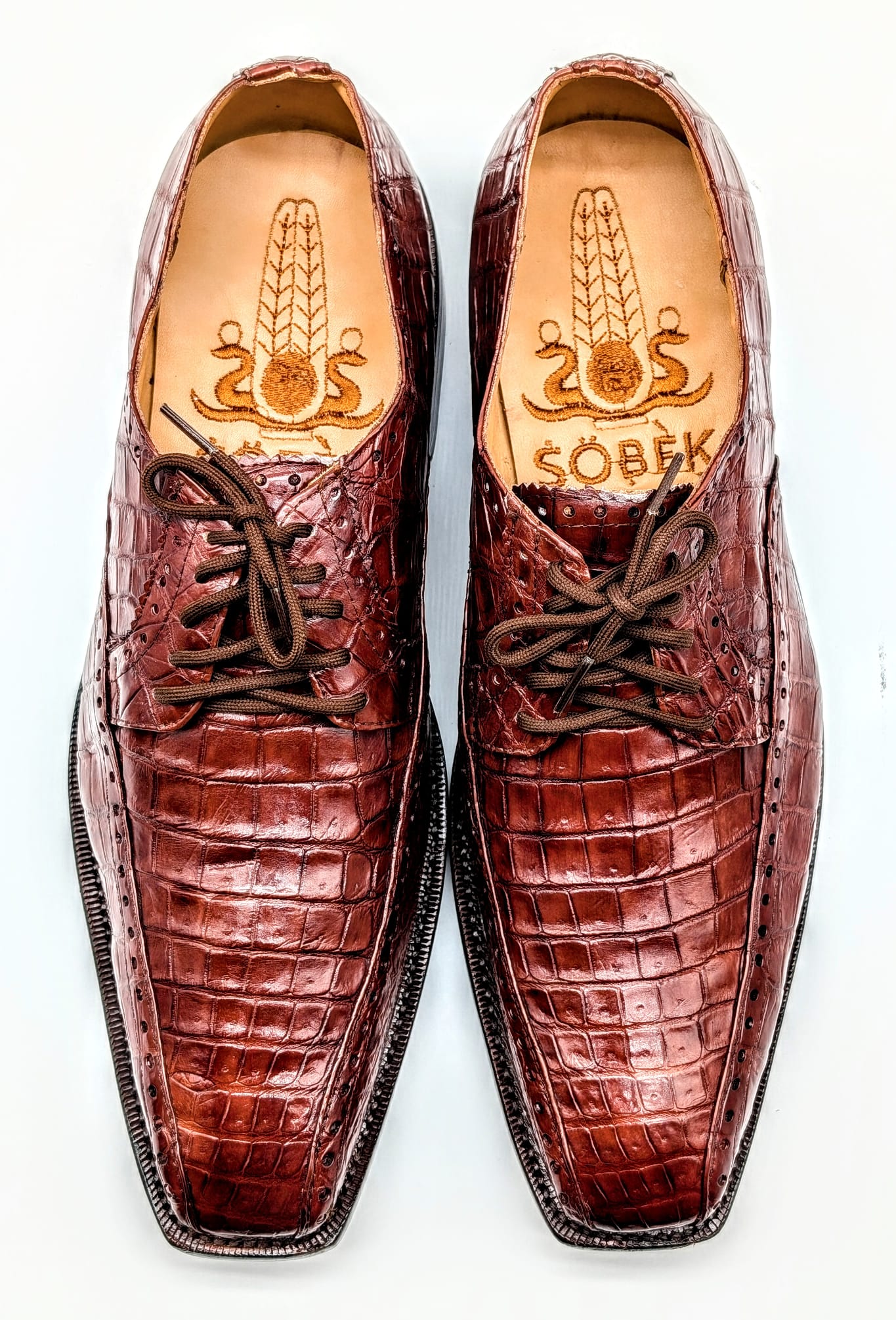 Step into timeless sophistication with these handmade oxford dress shoes crafted from genuine alligator belly leather in a rich tobacco brown finish. Designed for refined elegance, this classic lace-up style is ideal for formal events or elevating your everyday look.