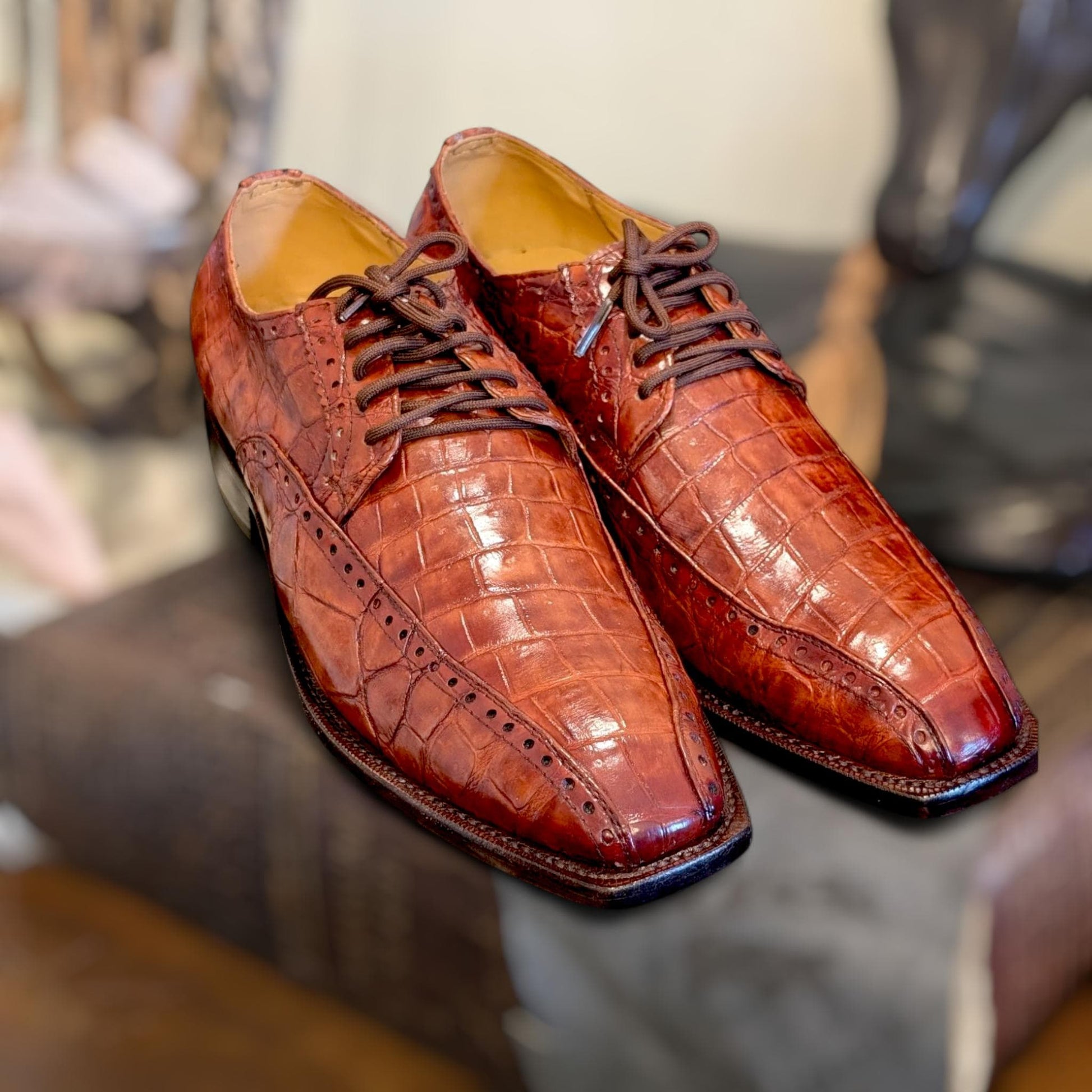 Men's Alligator Oxford Dress Shoed | Goodyear Welt| Size 11.5 US In Stock - All Others Custom Orders | Luxury Dress Shoes