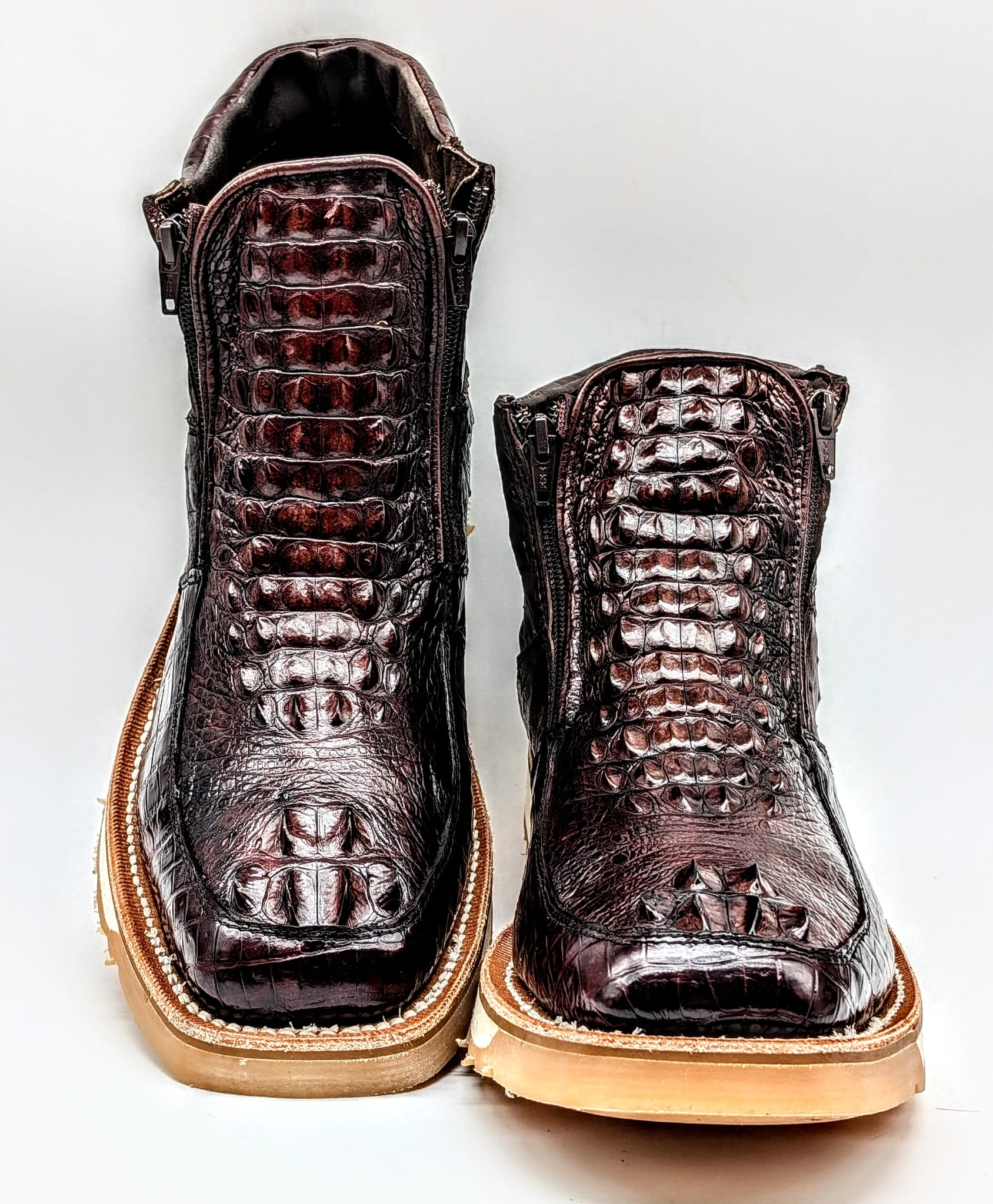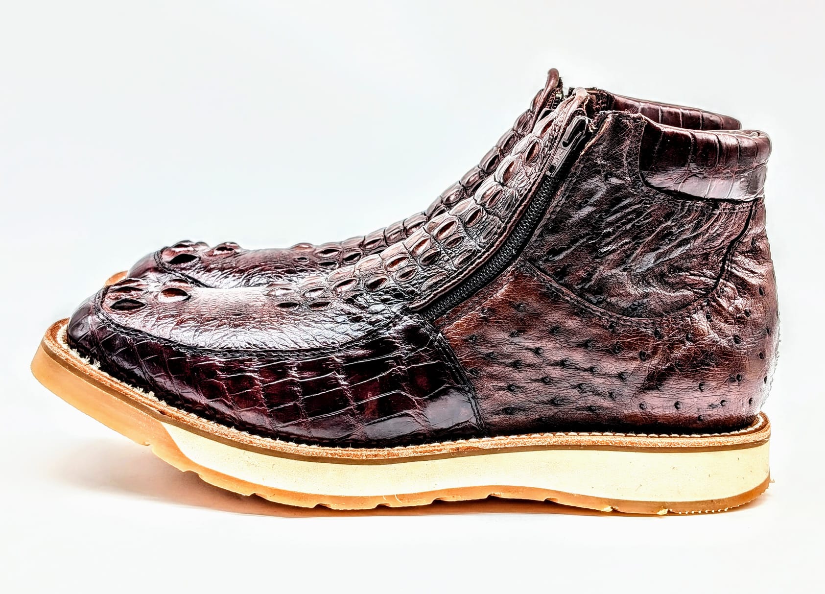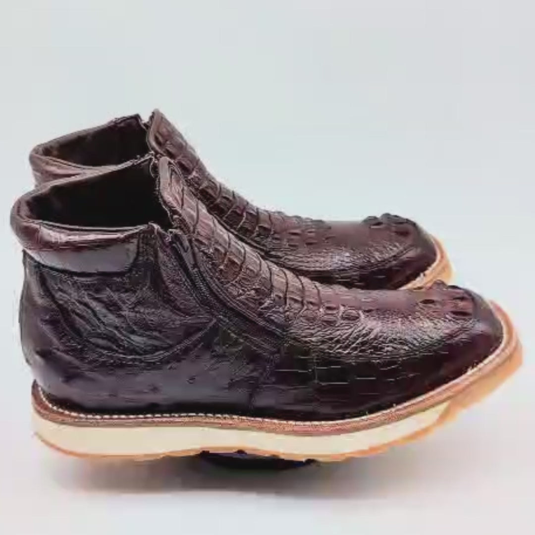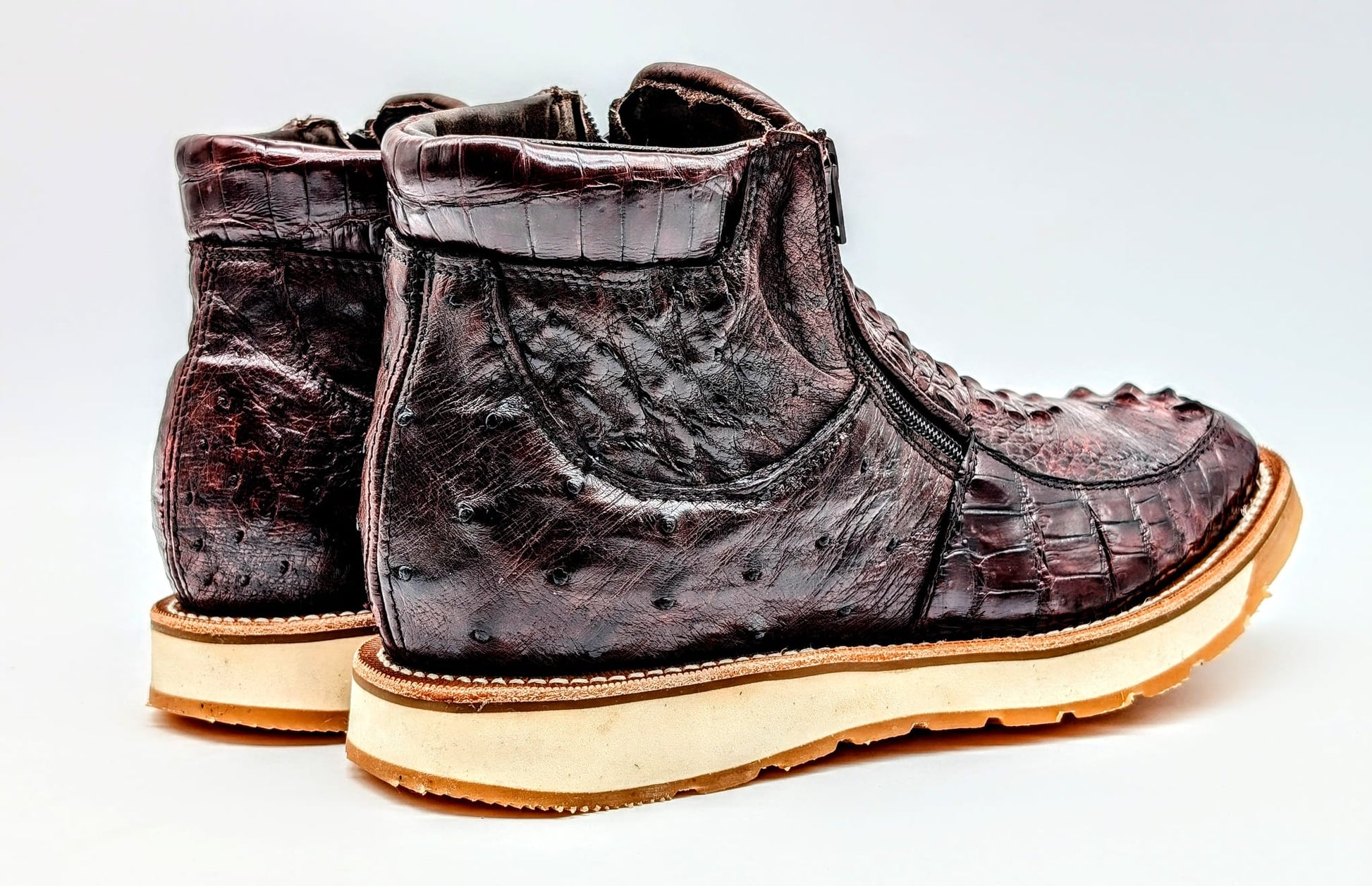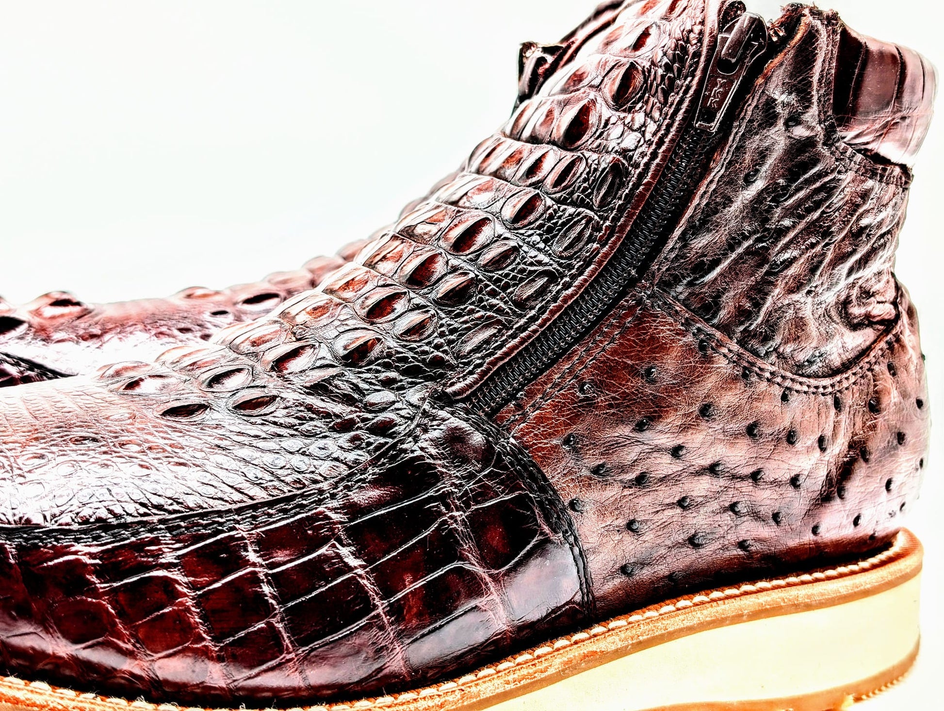 Sobek's Hornback Alligator Ostrich Ankle Boots for Men, Chelsea Style, Dual Zipper, Goodyear Welt, Lug Sole, Handmade Exotic Leather