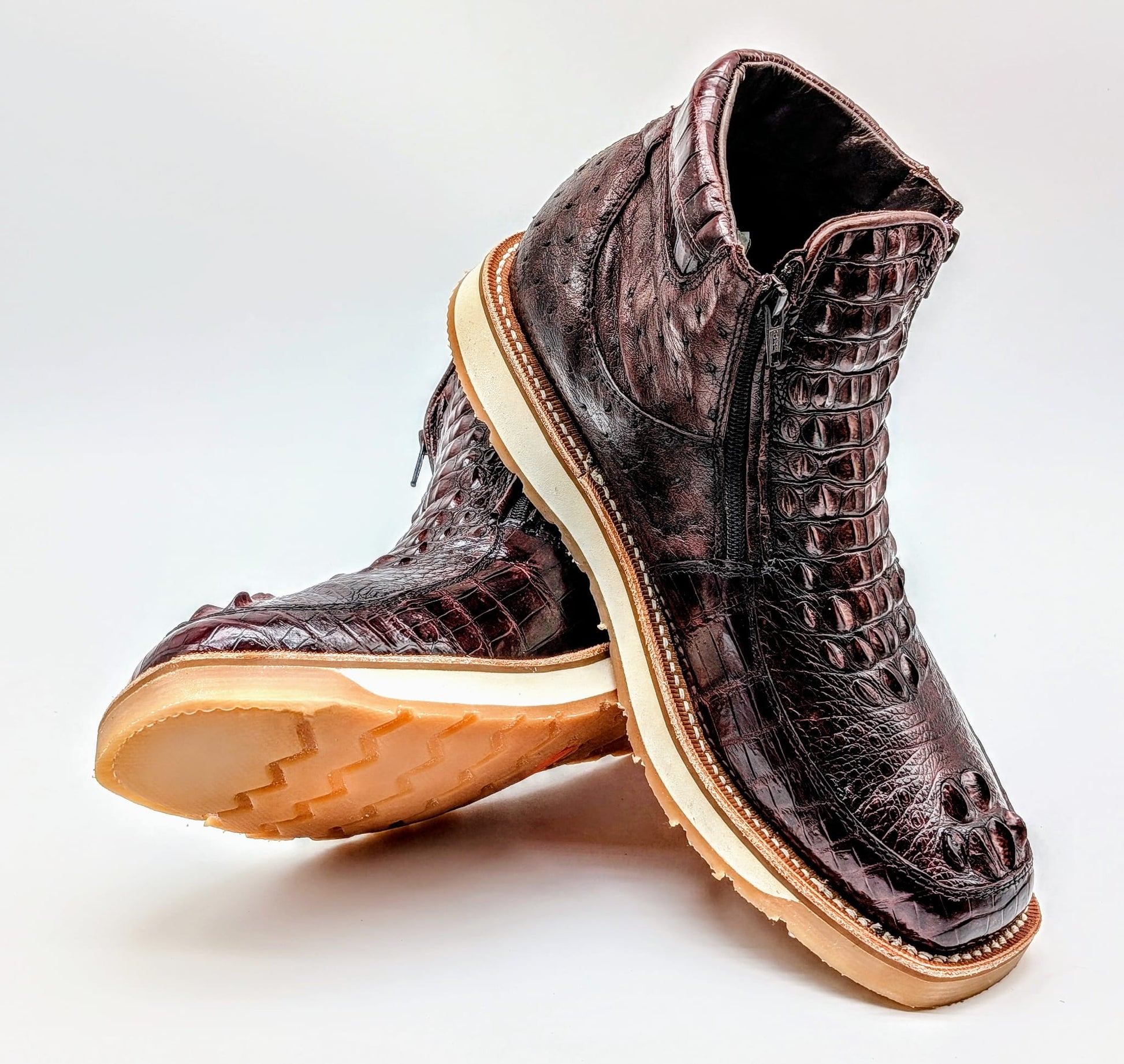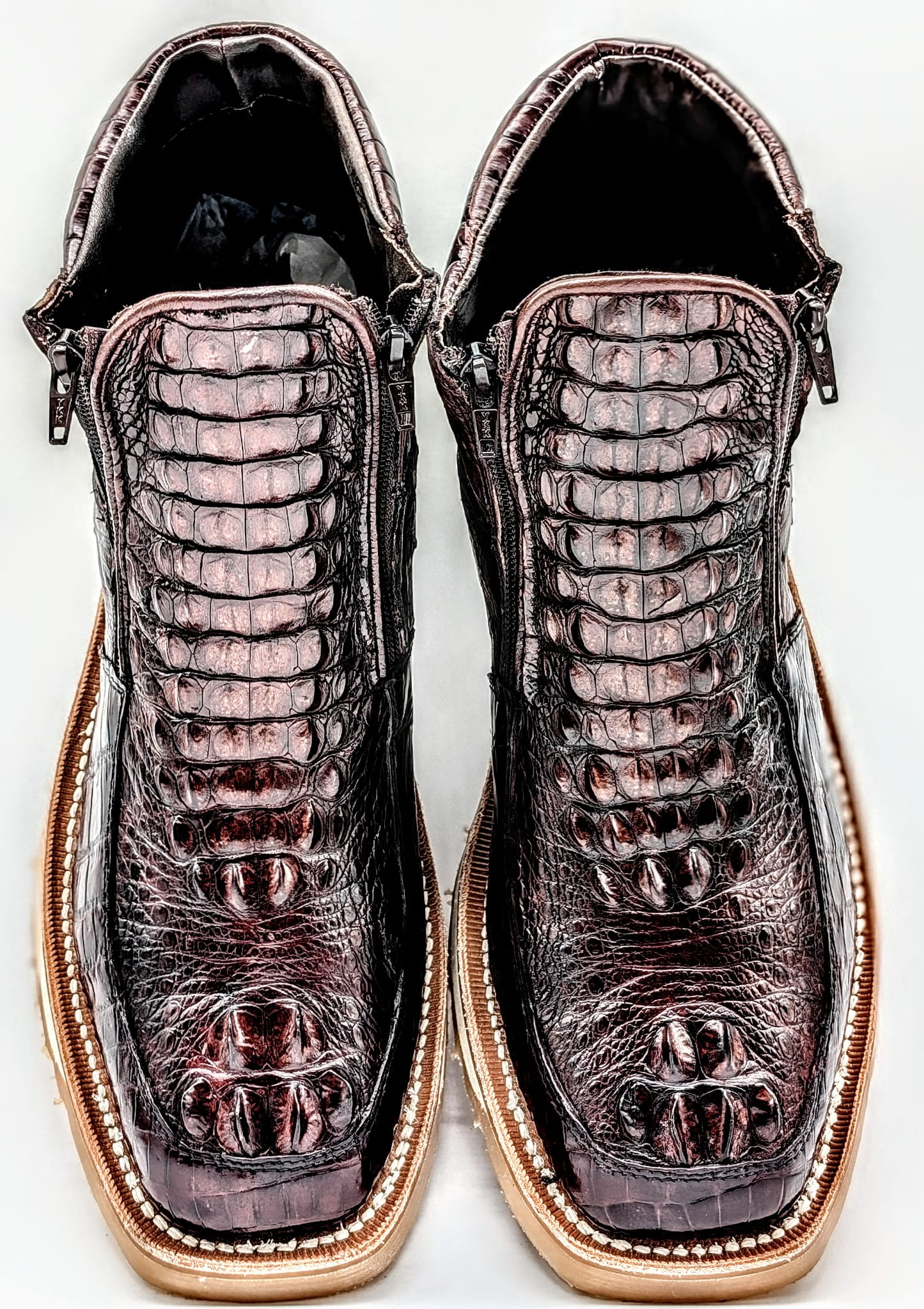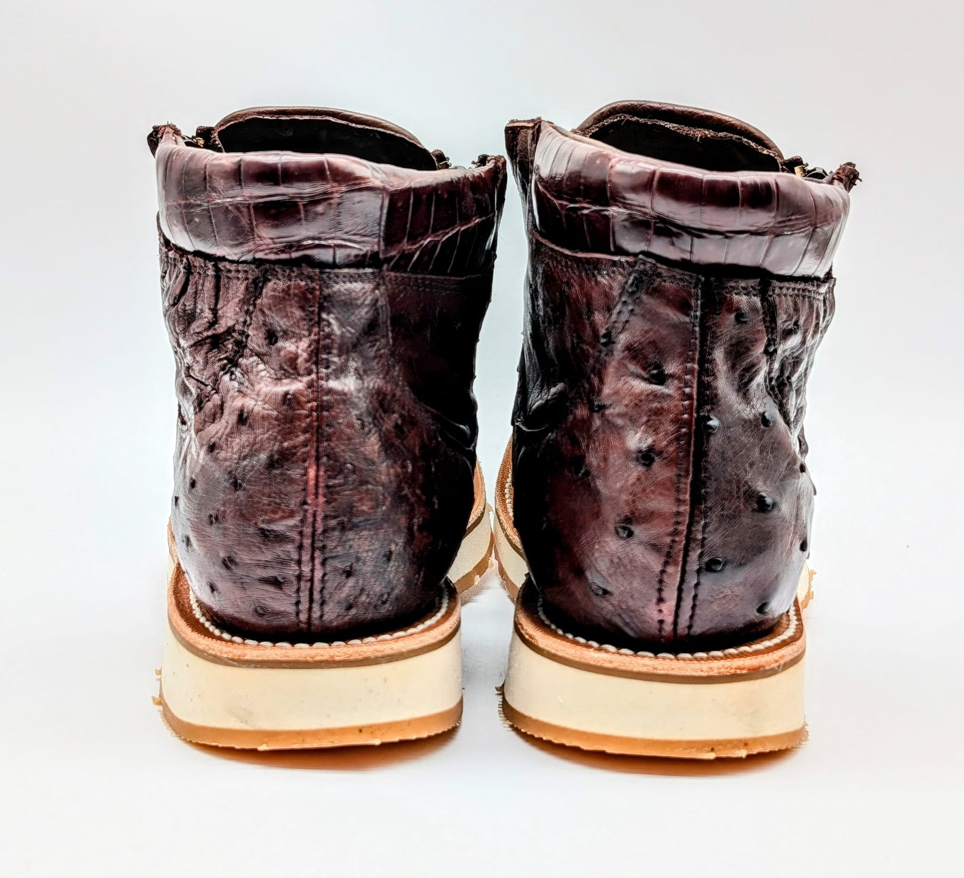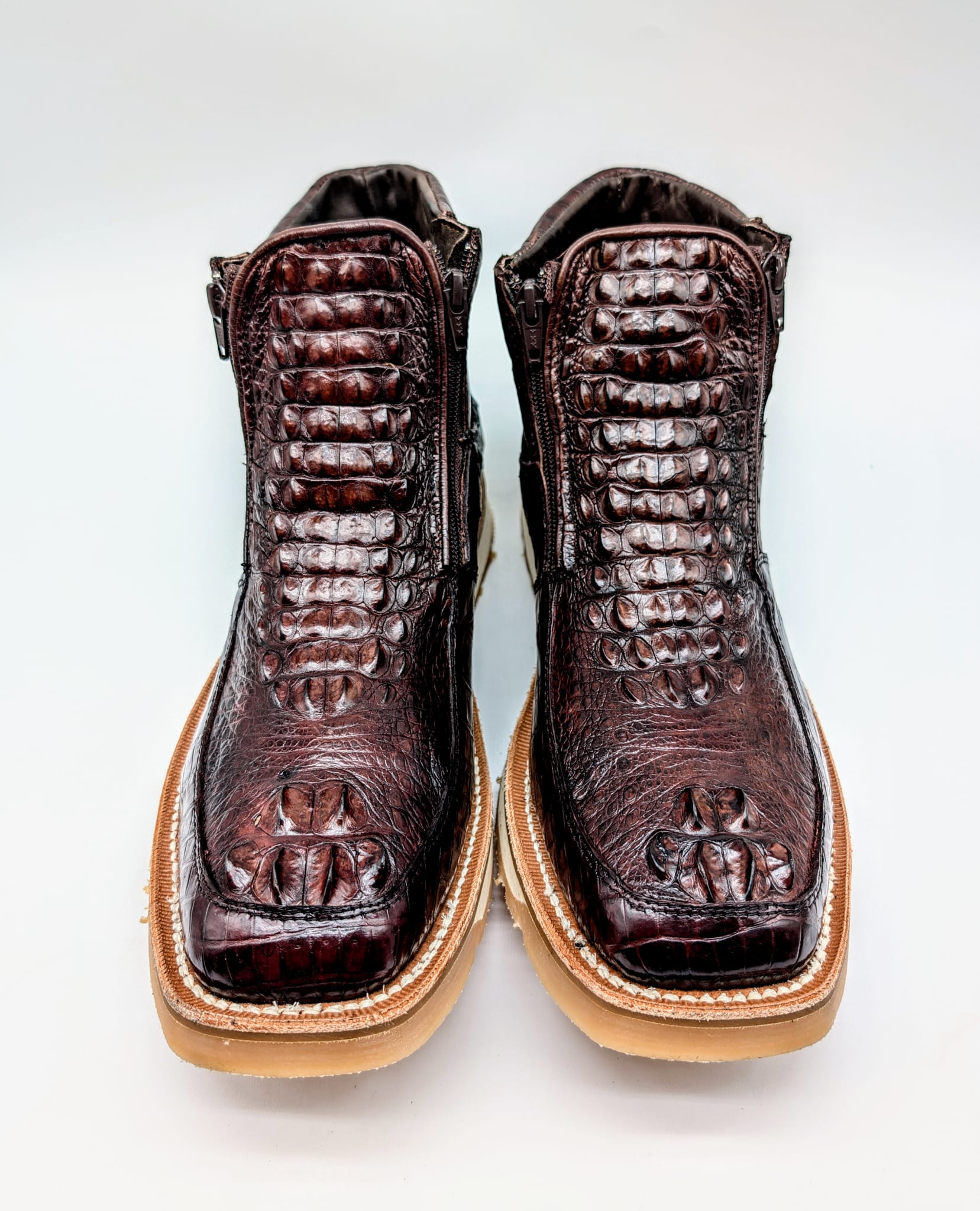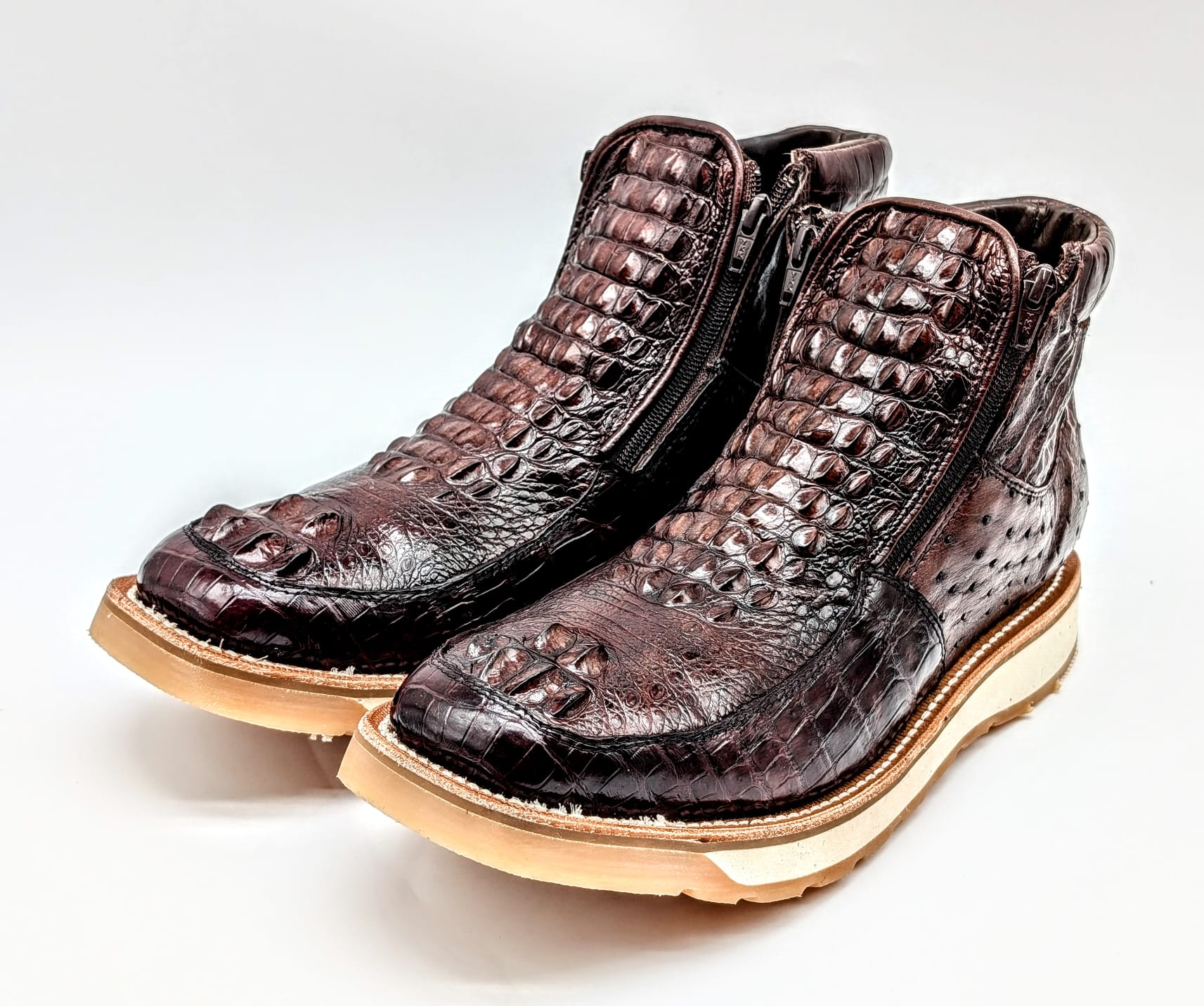 Sobek's Hornback Alligator Ostrich Ankle Boots for Men, Chelsea Style, Dual Zipper, Goodyear Welt, Lug Sole, Handmade Exotic Leather