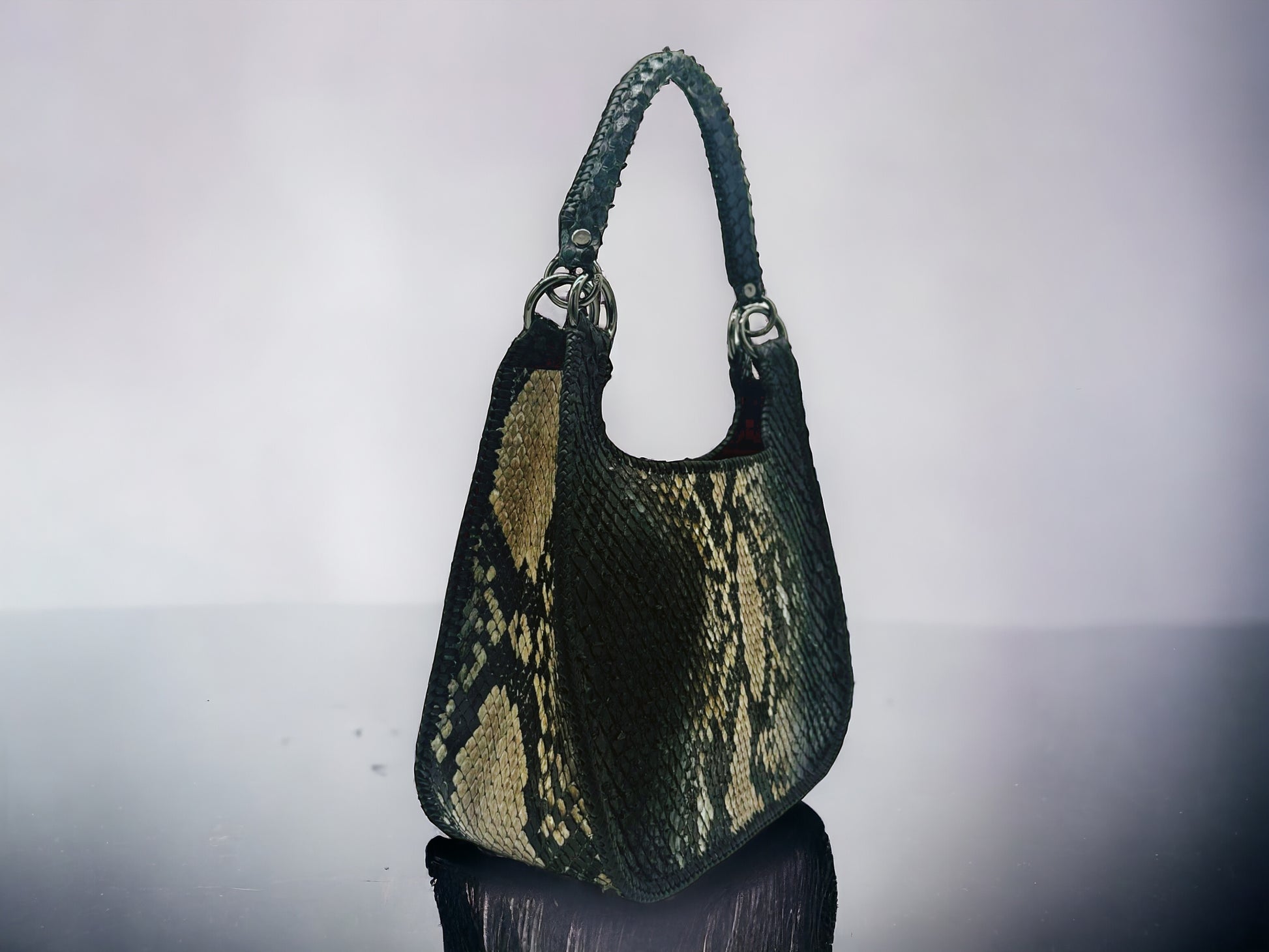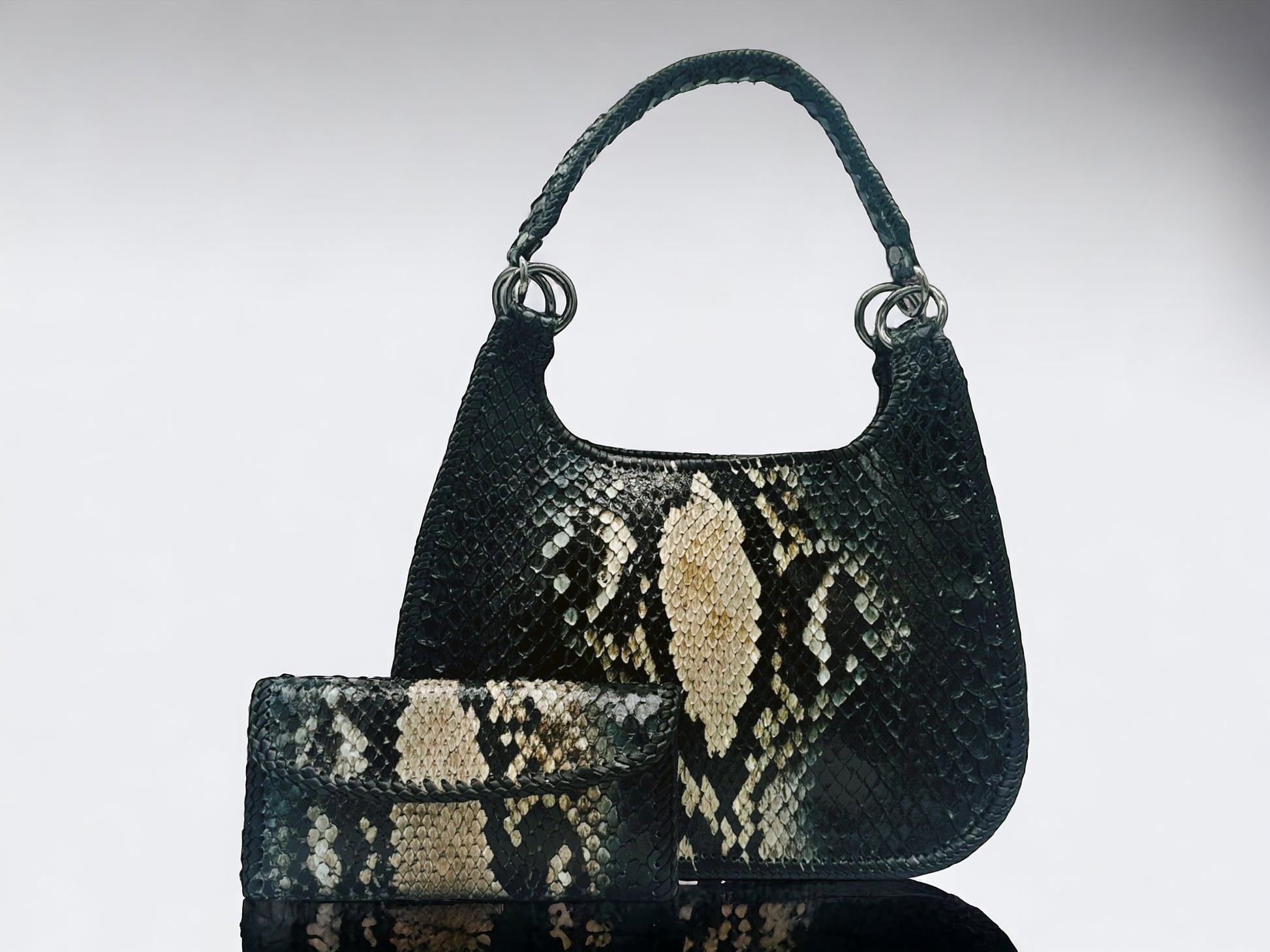 Complete your look with this luxurious snakeskin hobo bag—an artisan-crafted purse made from genuine python leather with a striking ombre finish. Complete the set with a matching flap wallet, both detailed with hand whipstitching and natural python scale patterning.