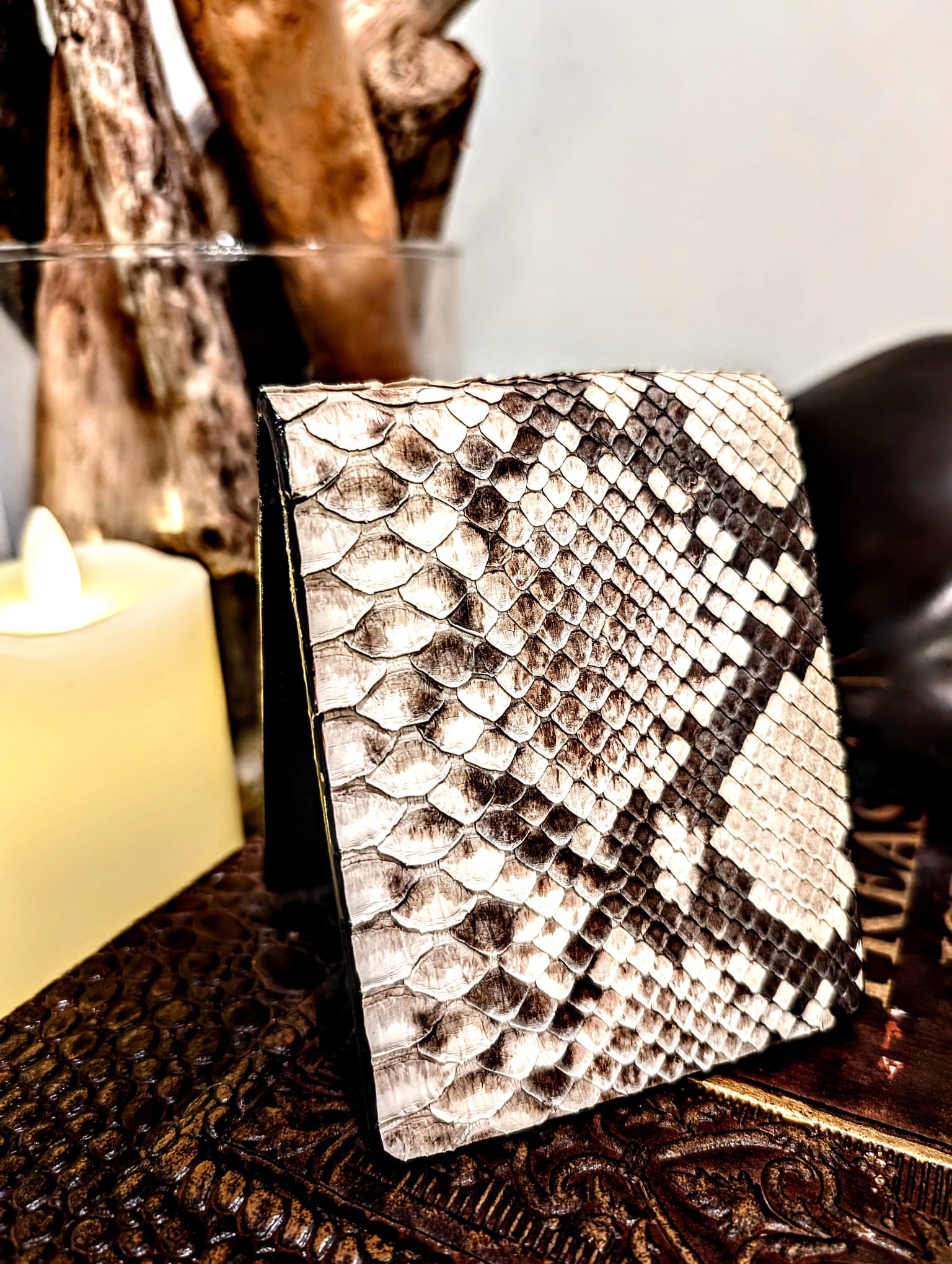 • Crafted from genuine snakeskin and showcasing the unique scale patterns and unique texture in a matte finish.
