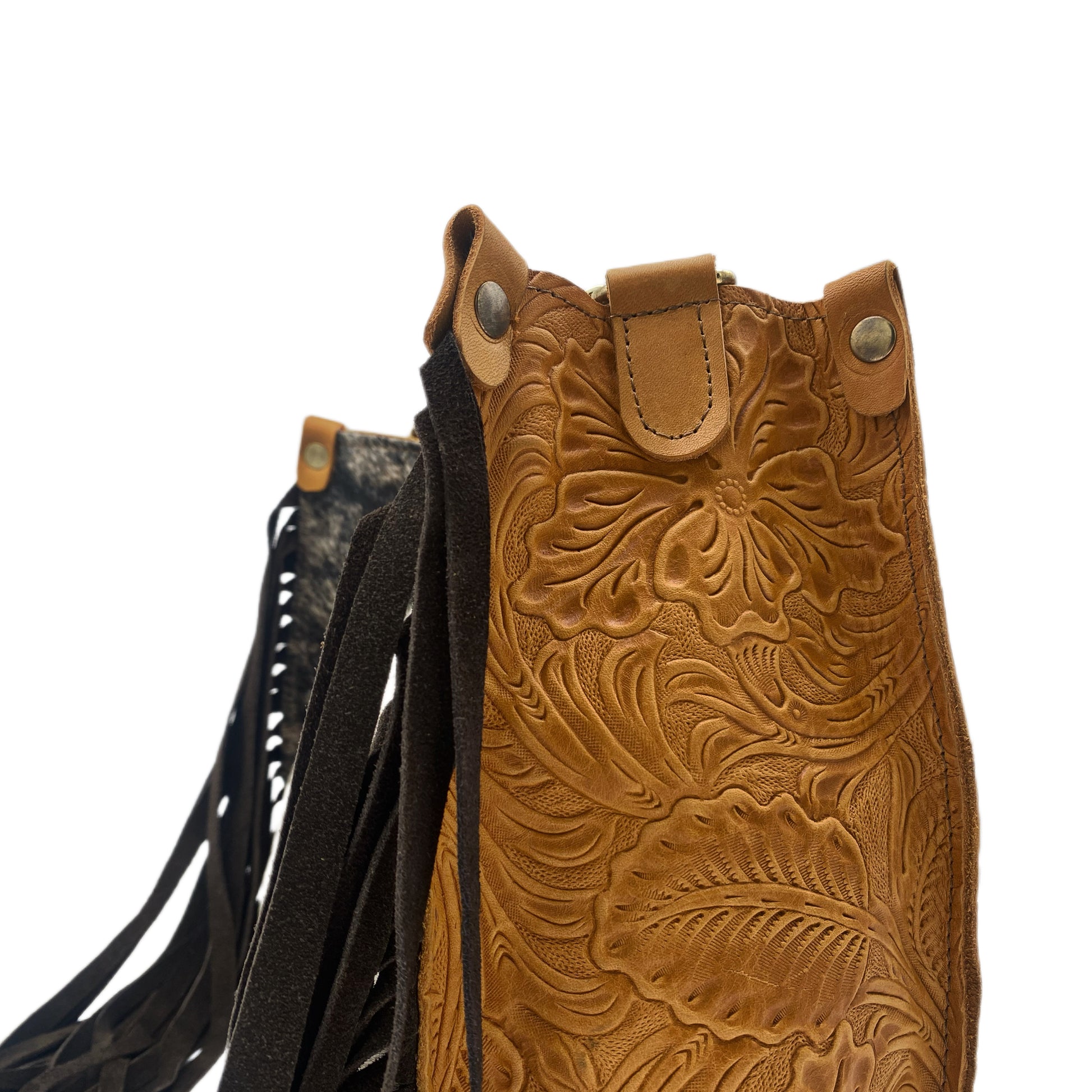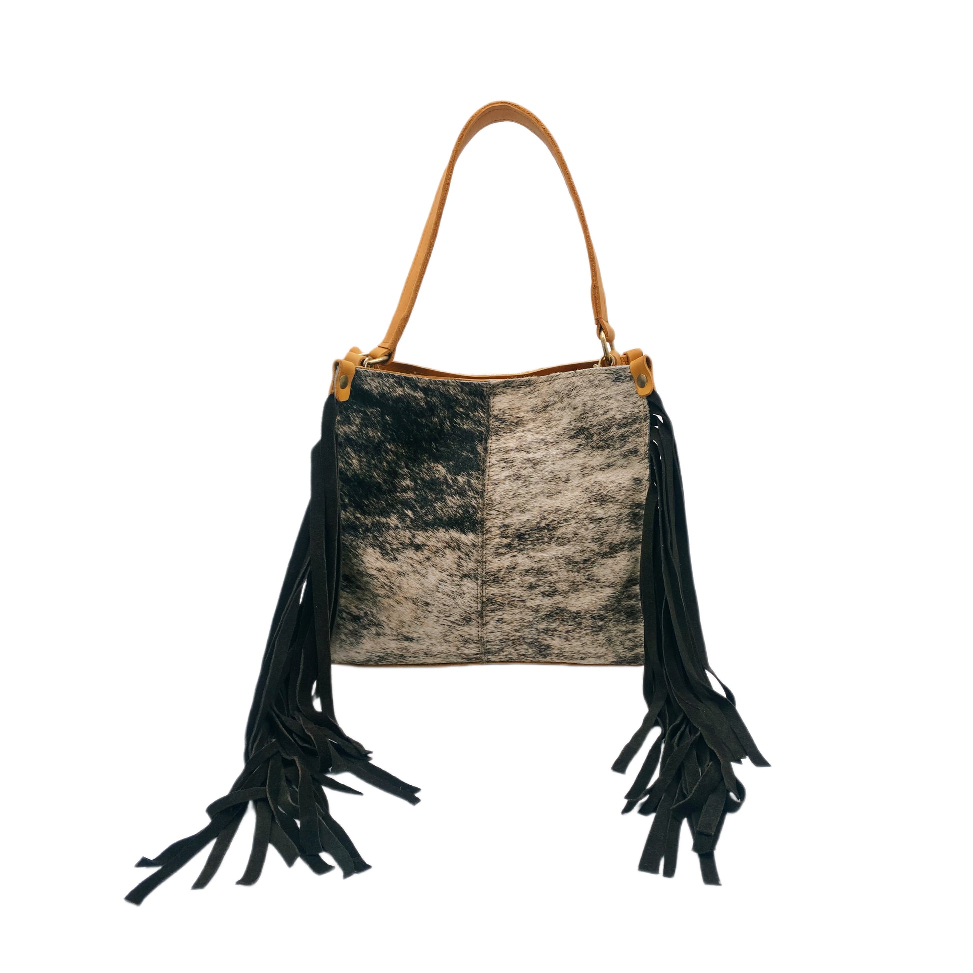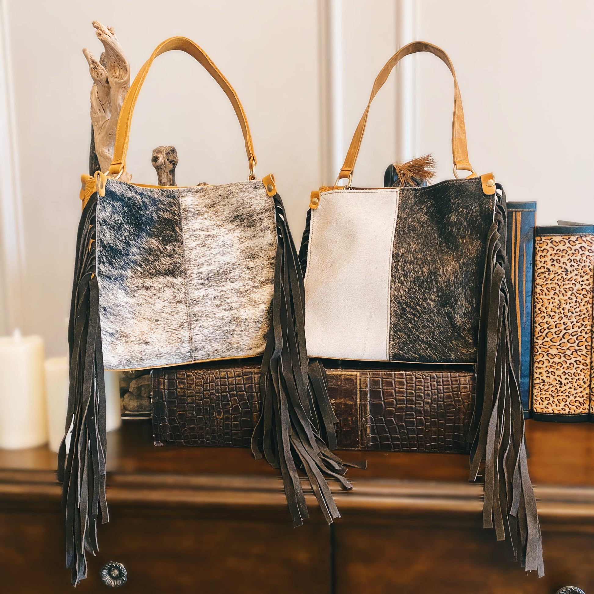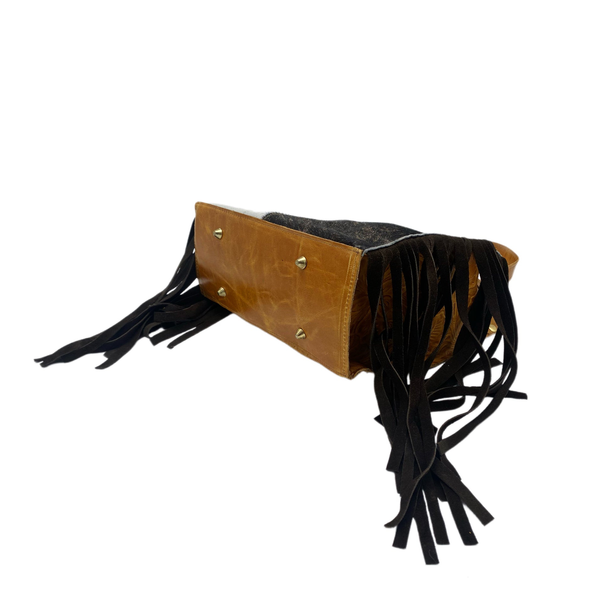 Outlaw Duotone Cowhide Fringe Crossbody Tote