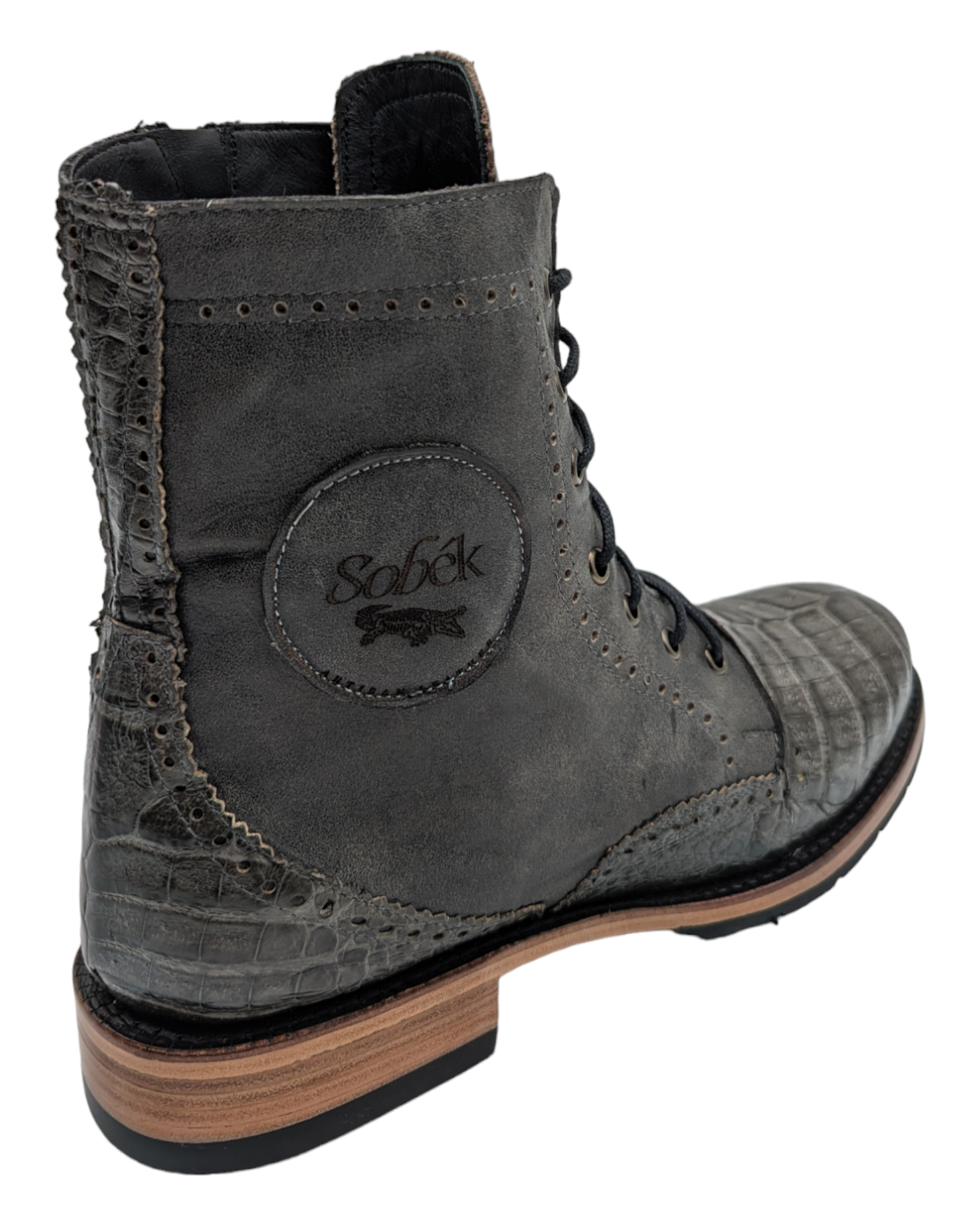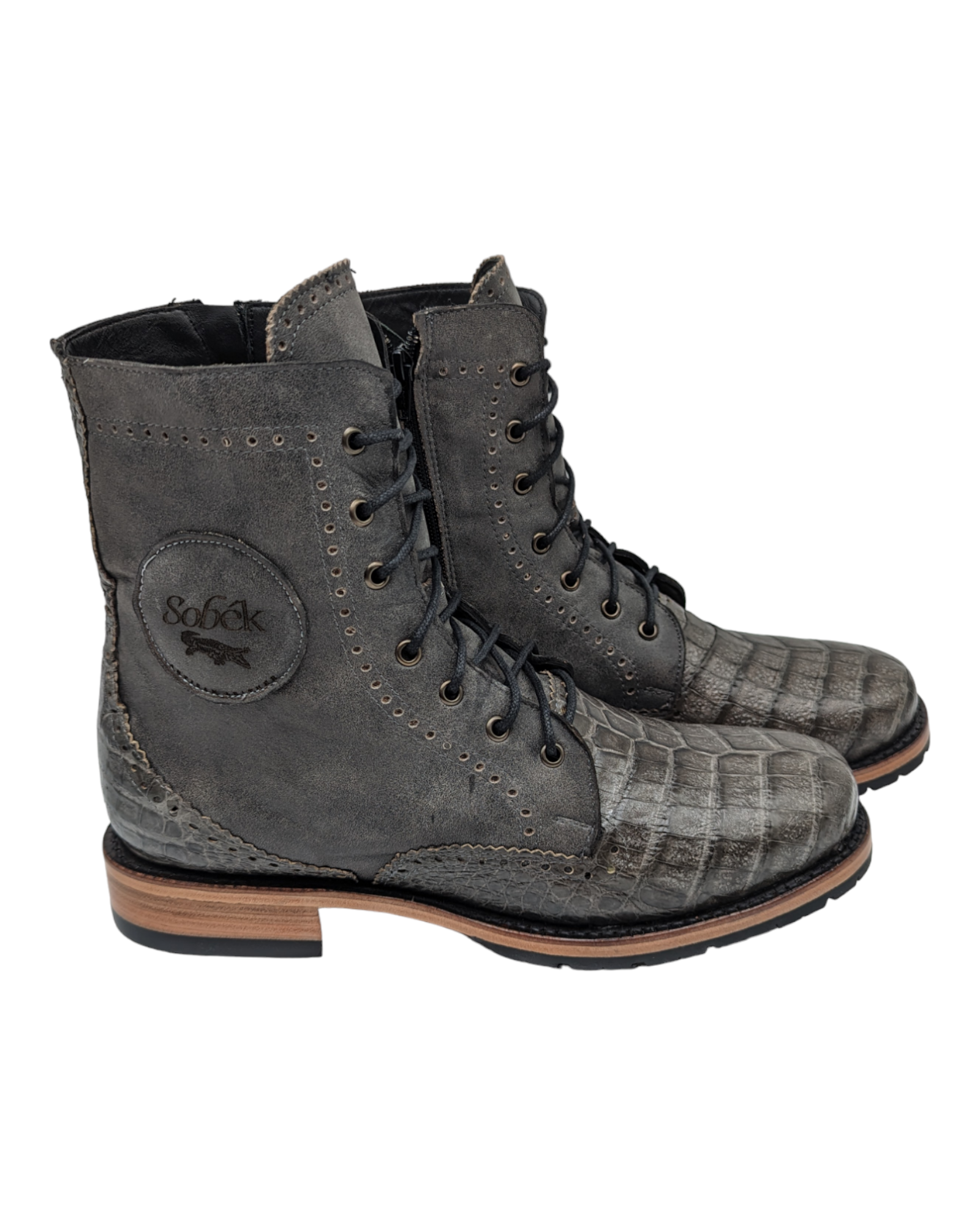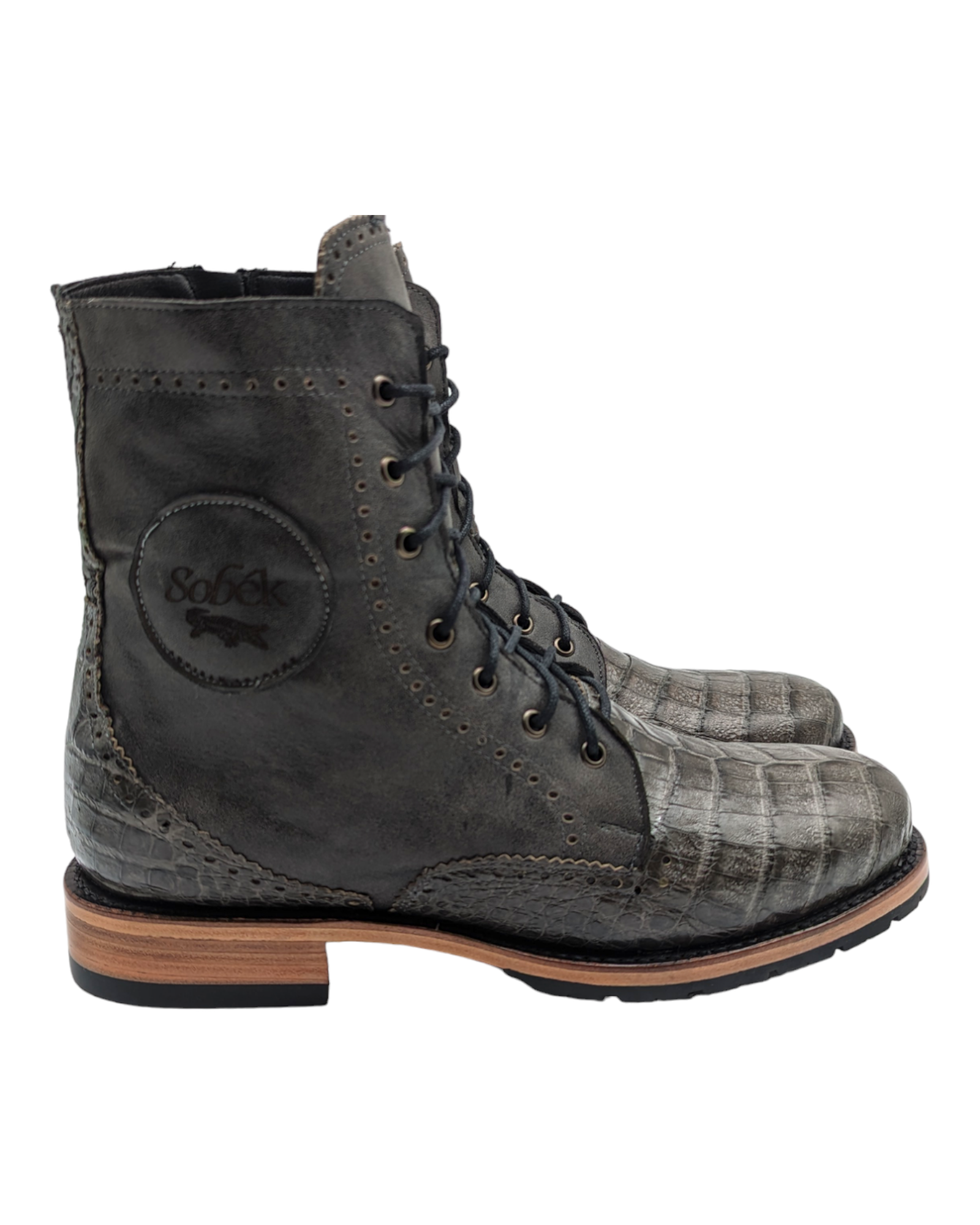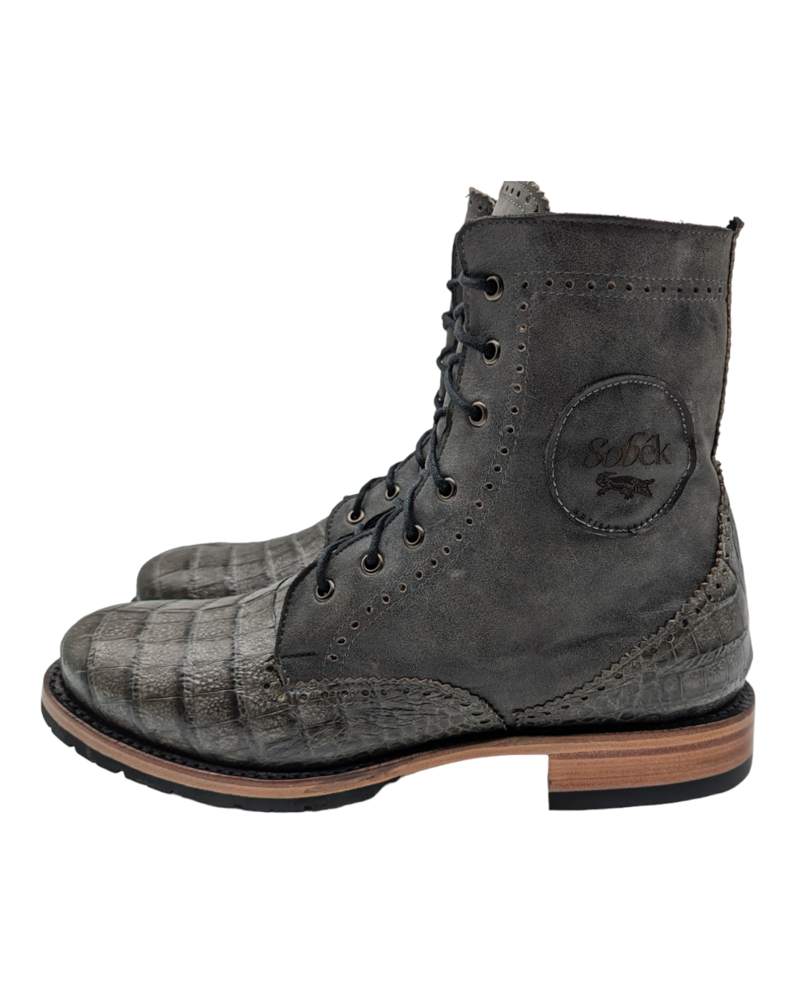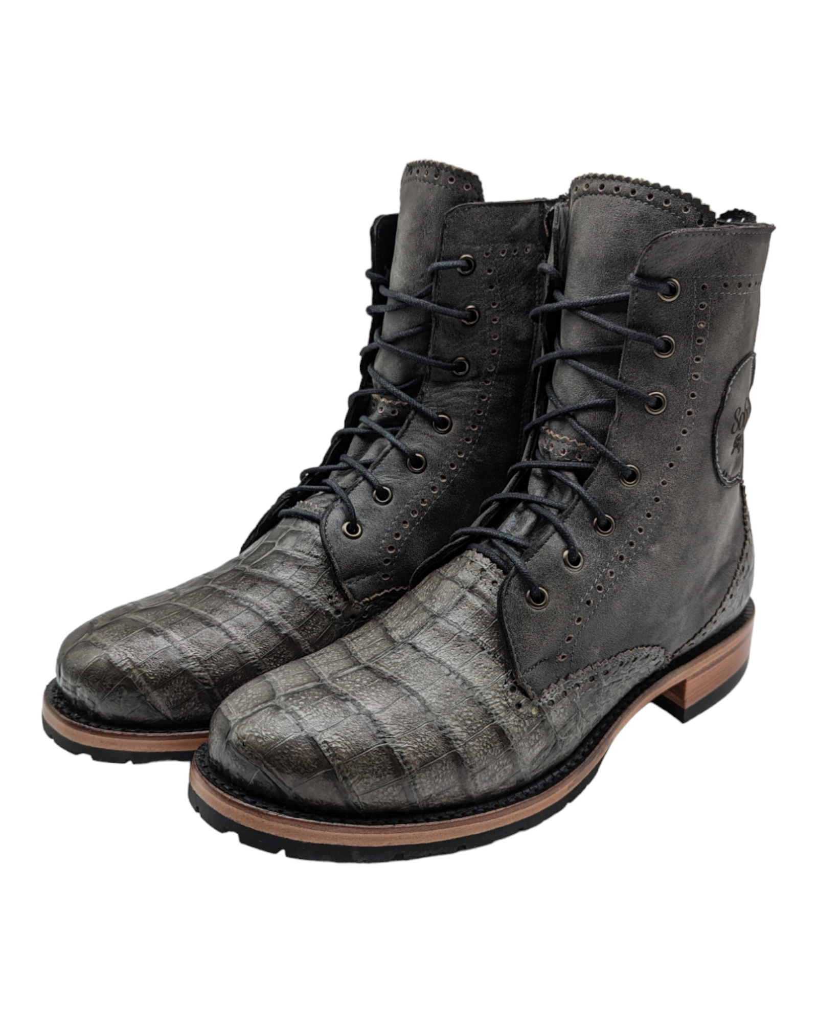 Men’s Alligator Lace-Up Combat Boots – Size 12 | Goodyear Welt | Handmade Exotic Leather Footwear