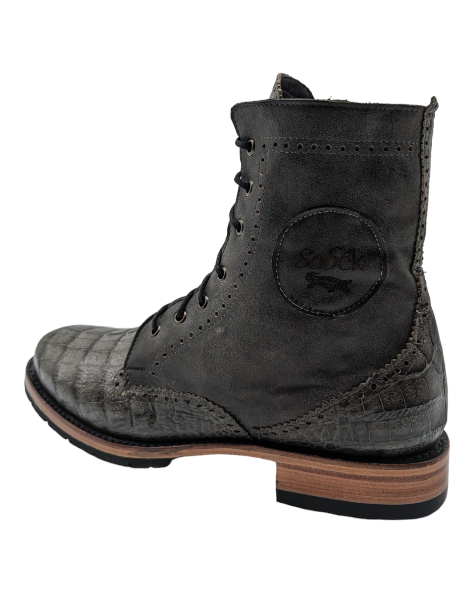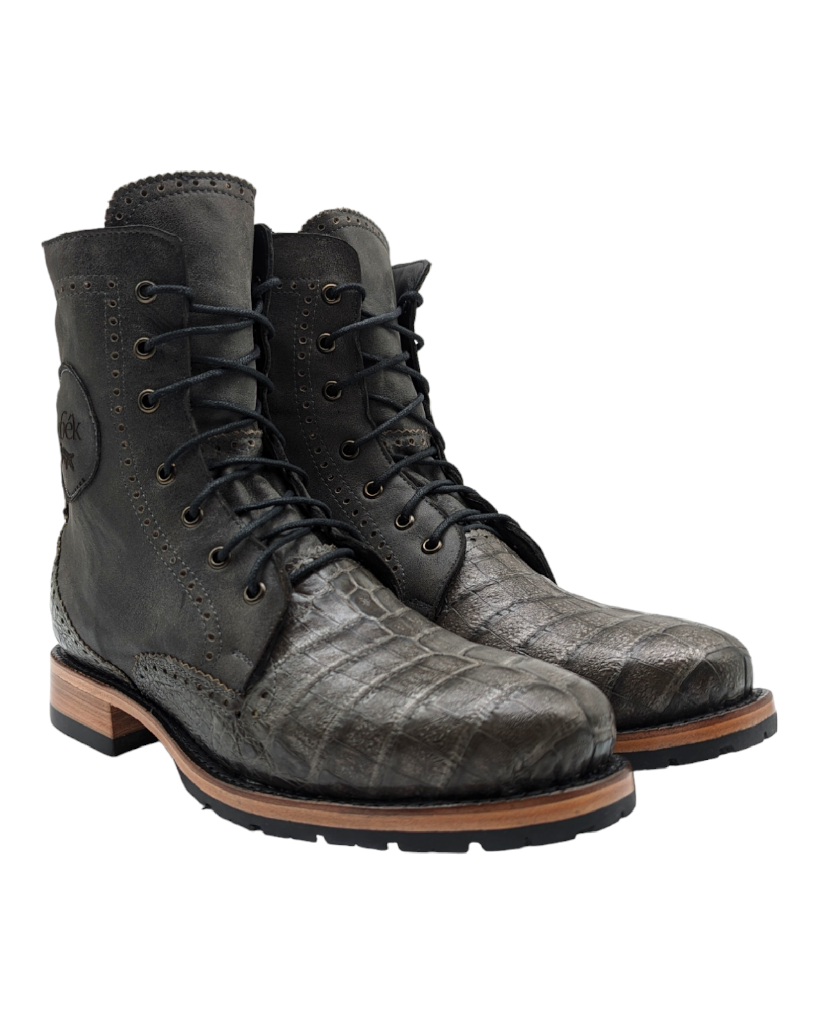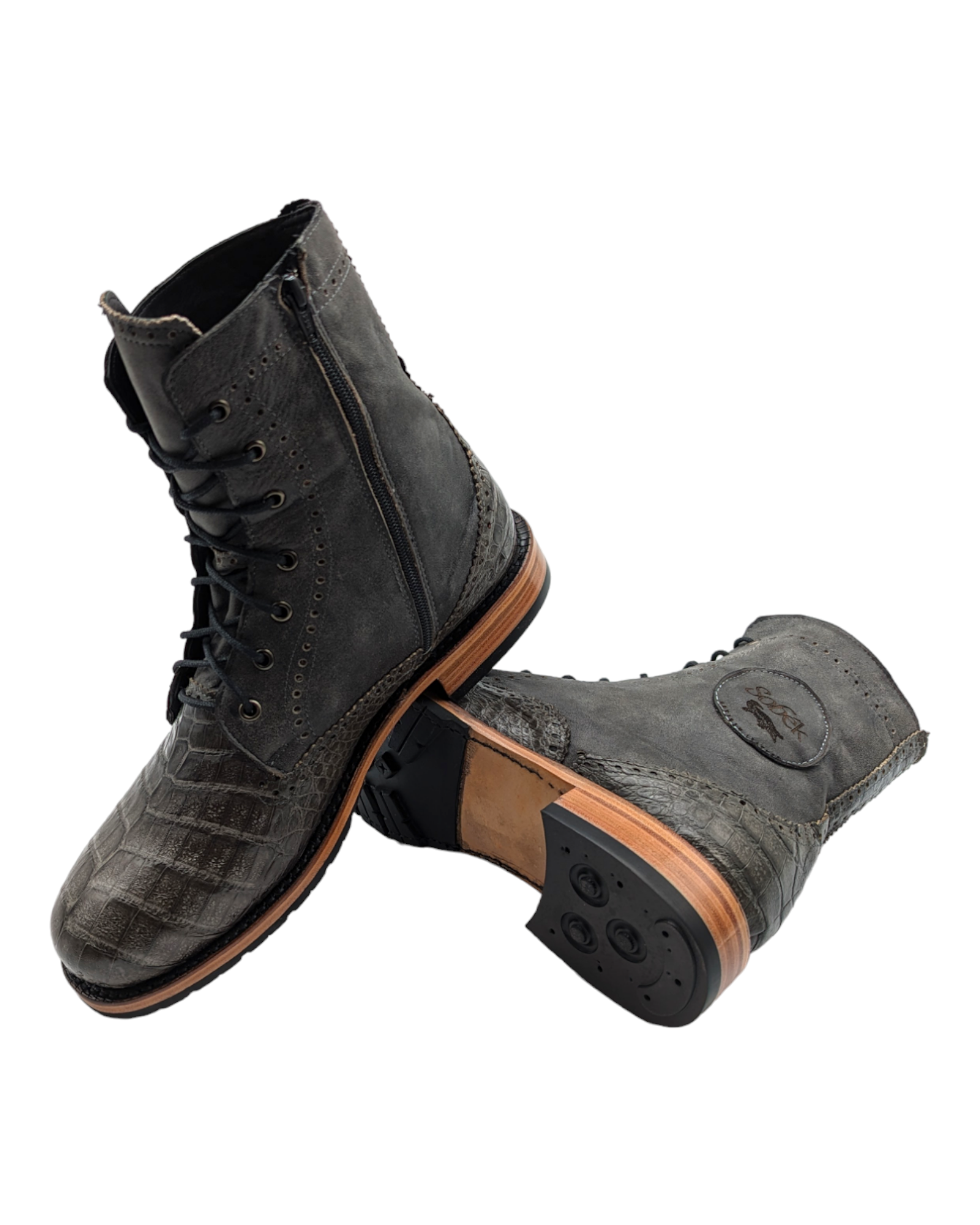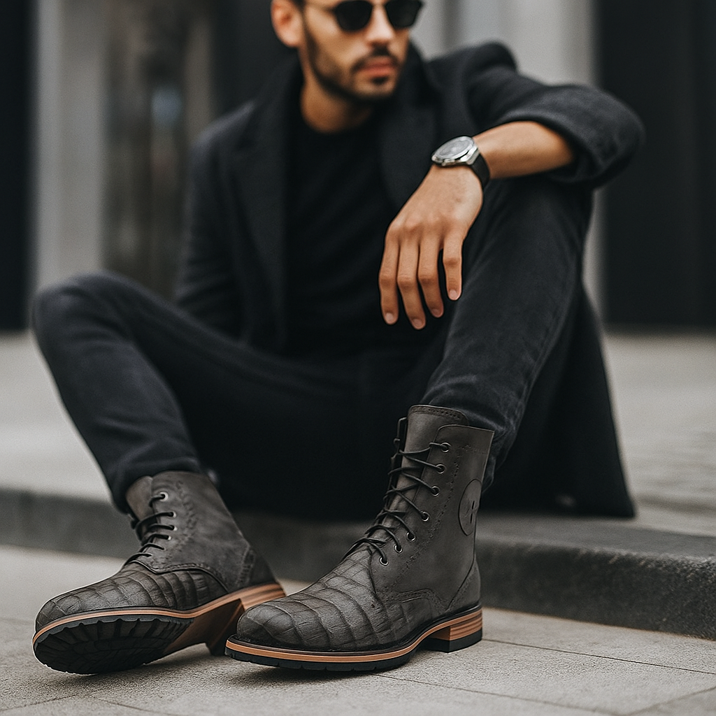 Elevate your footwear collection with these handcrafted men’s combat boots, meticulously made from genuine alligator leather. Designed for bold expression and built for durability, these boots feature a classic lace-up silhouette with Goodyear welt construction—ensuring long-lasting wear and easy resoling.