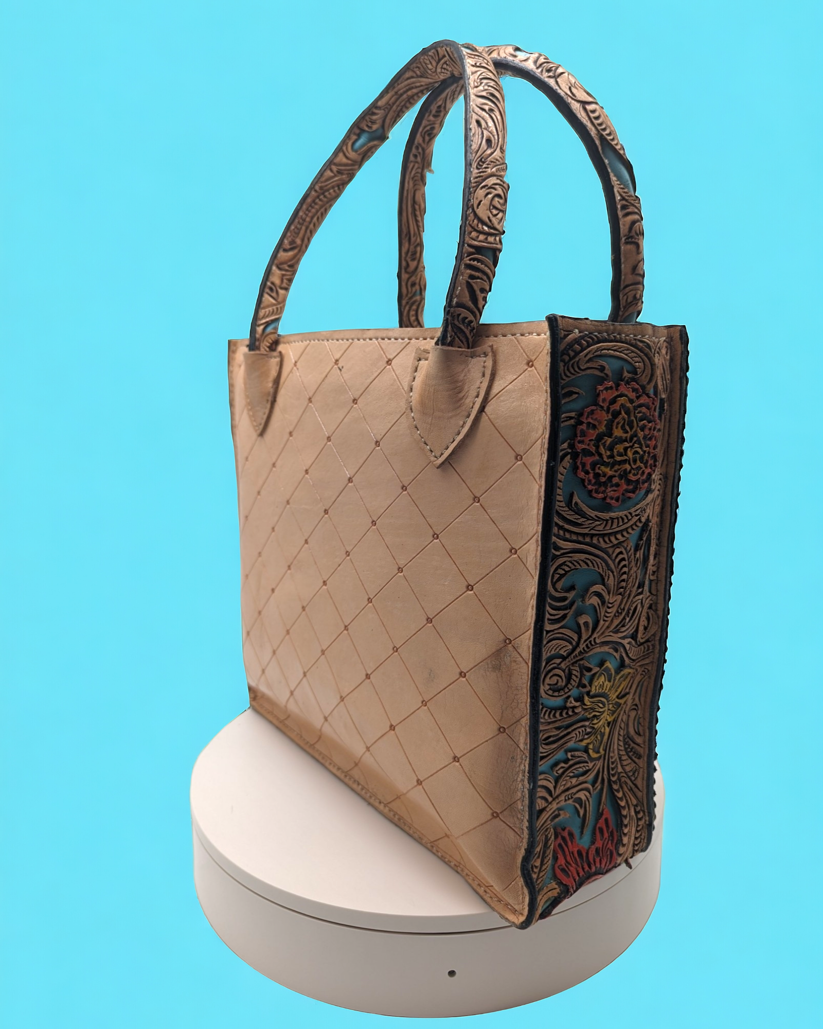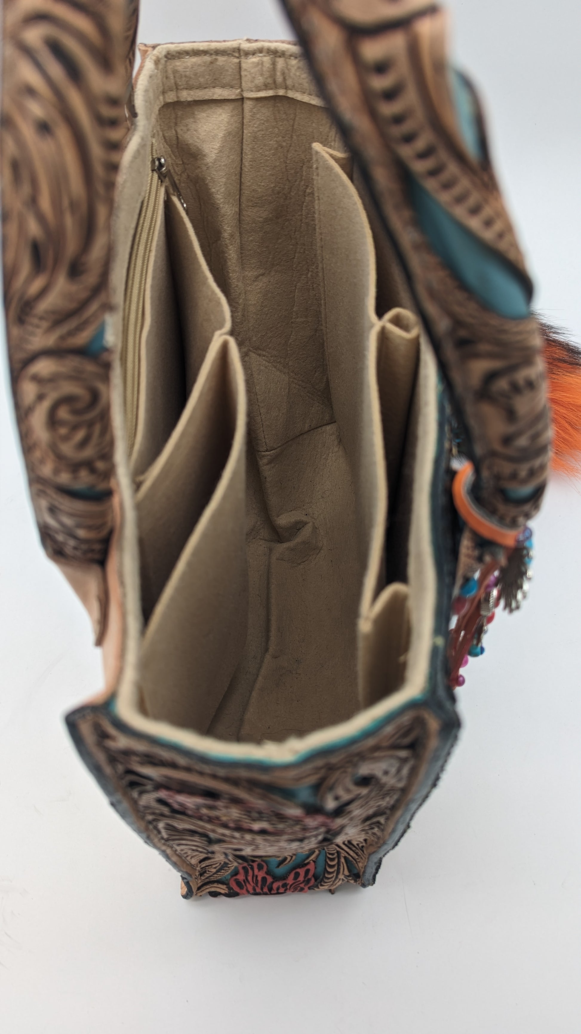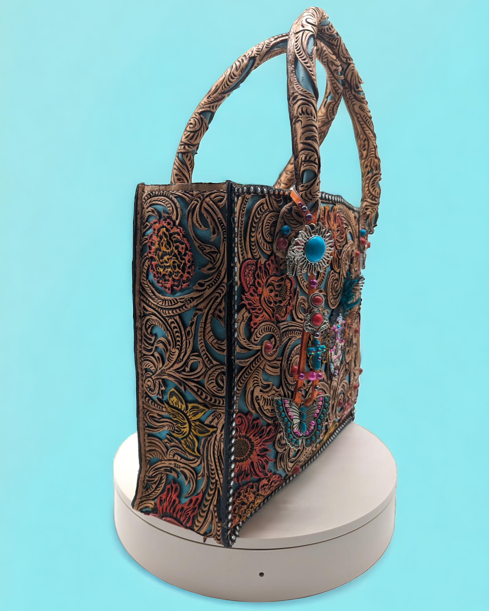The Catrina Bag, Day of the Dead Western Hand Tooled Leather Handbag with Fox Tail and Butterfly Charm
