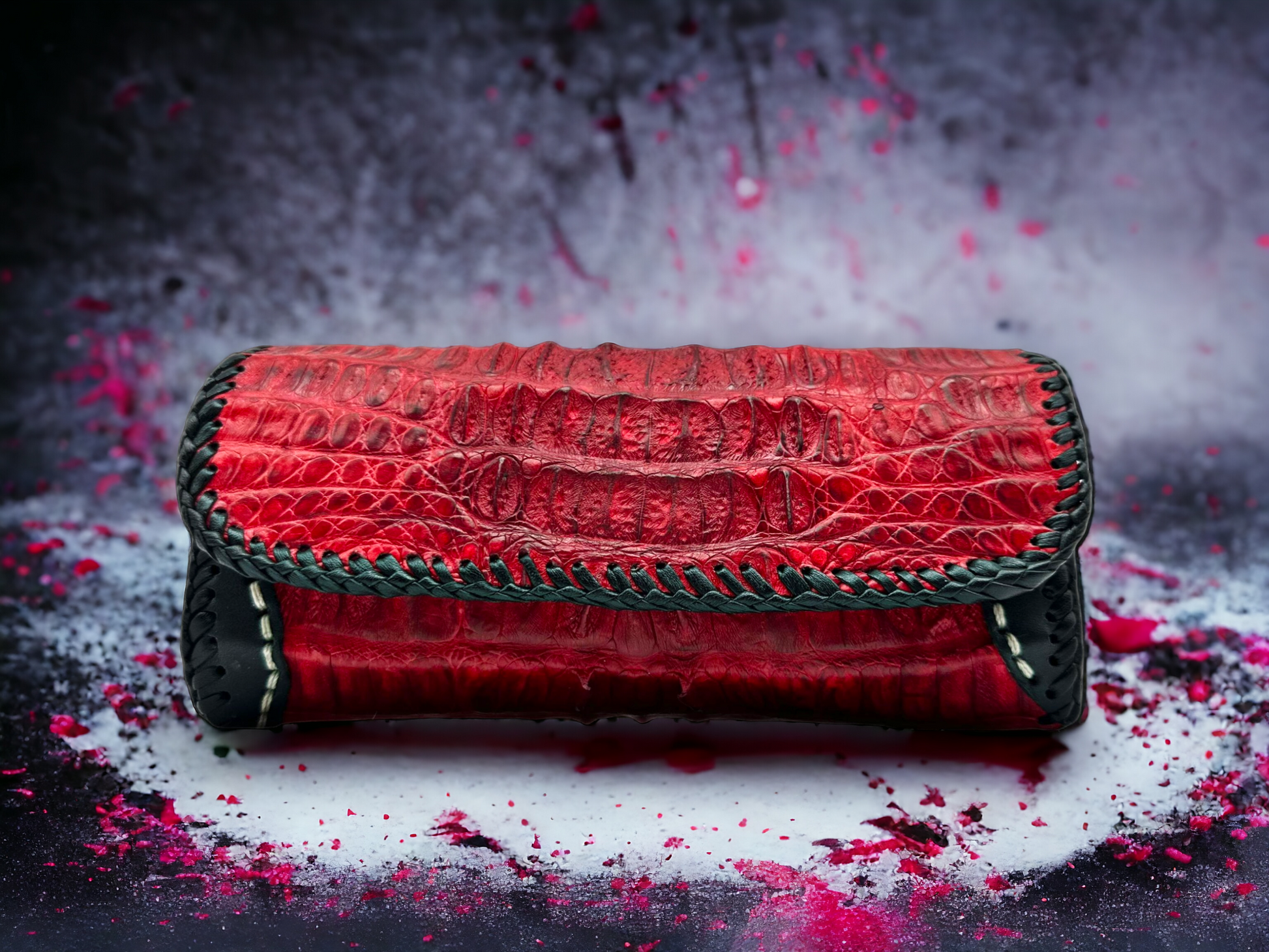Trifecta Alligator Clutch in Carmine Red and Artisan Whipstitch Leather