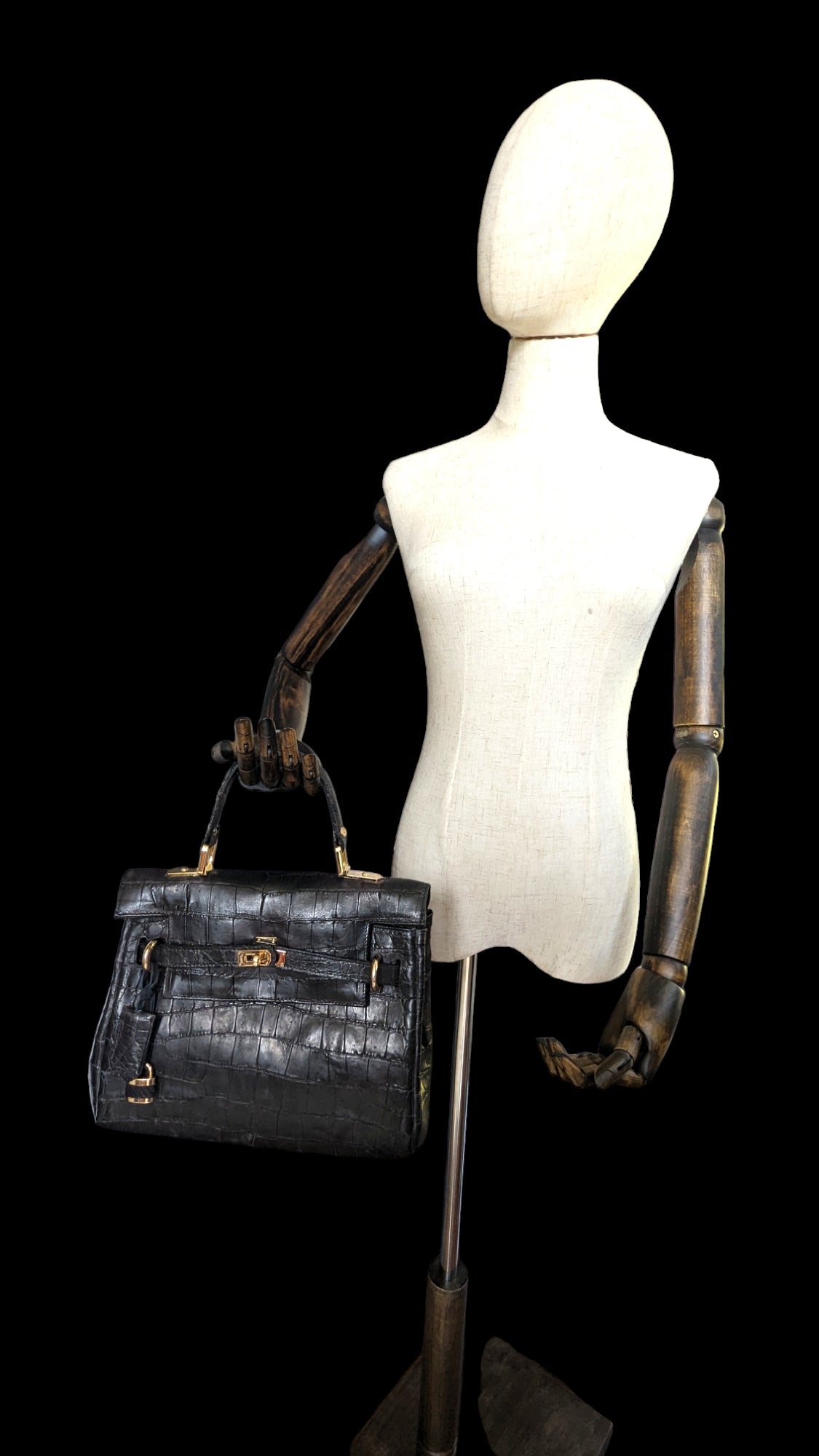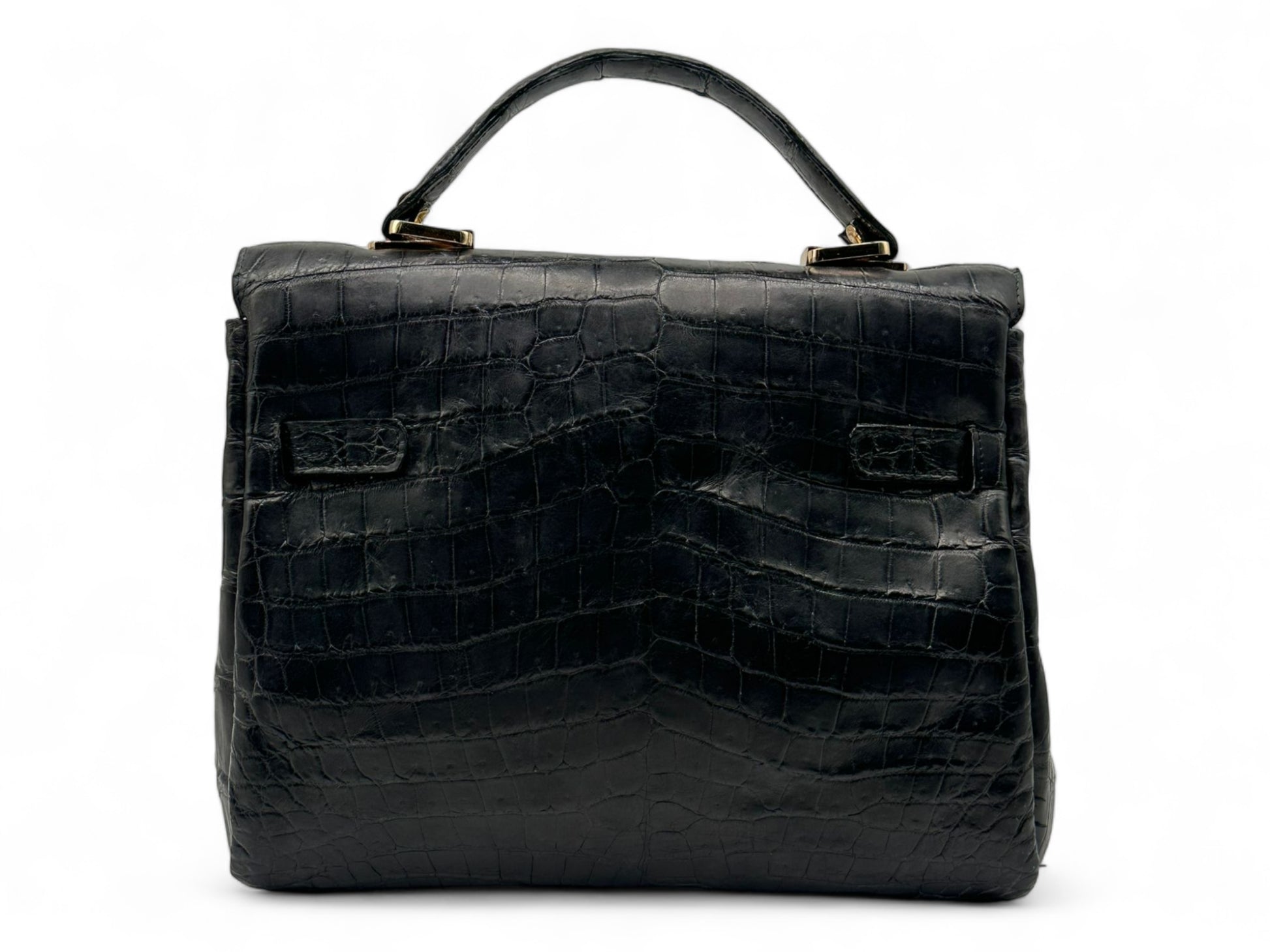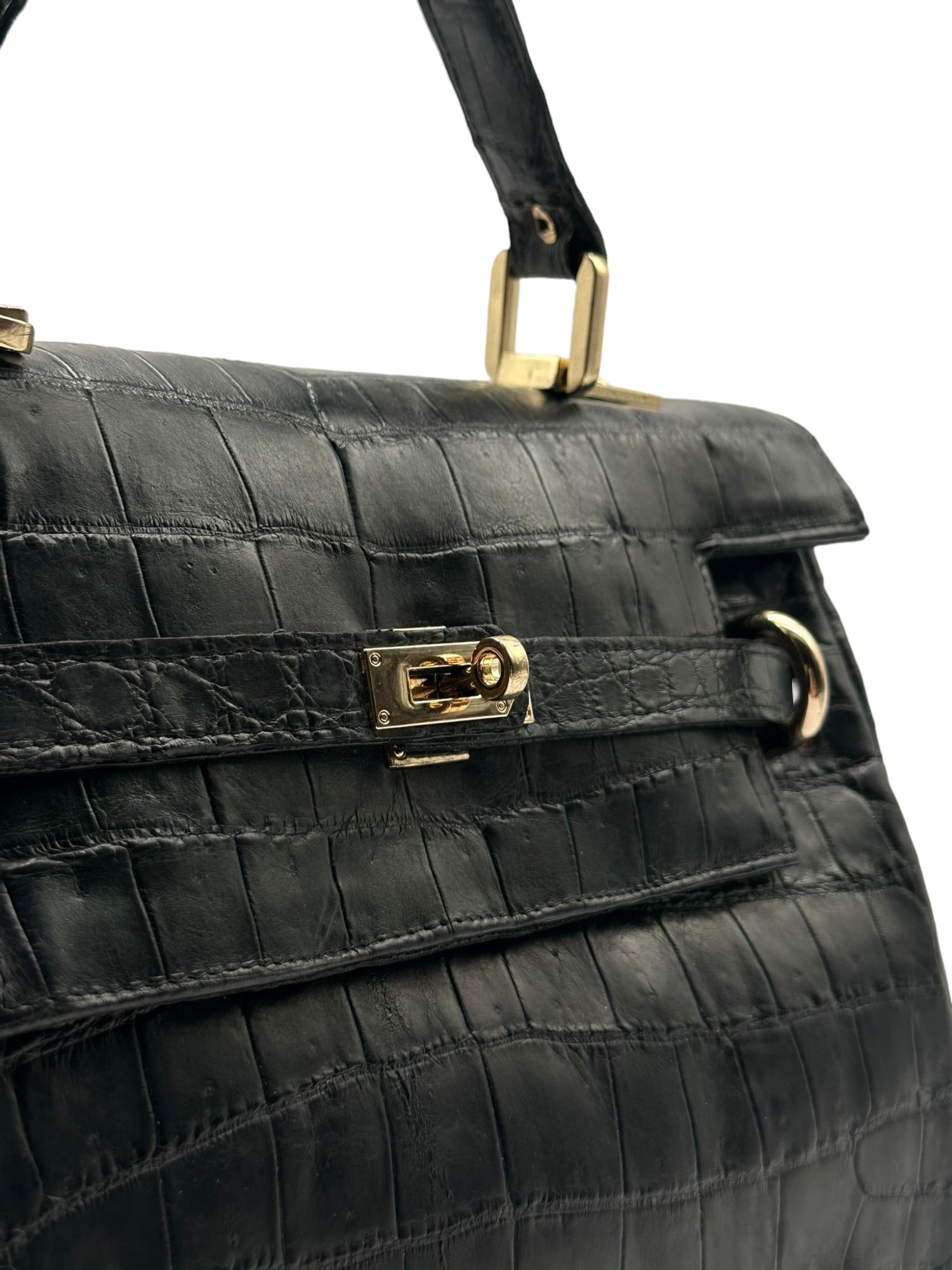 Vintage Black Kelly 28 Style Flap Handbag made from Alligator Leather, Luxury Handbag, Luxury Handmade Purse