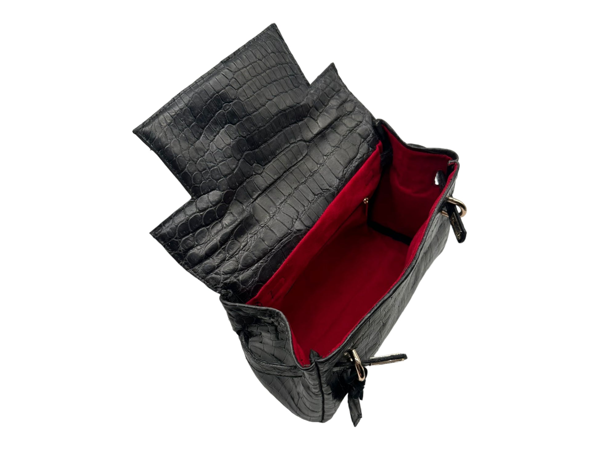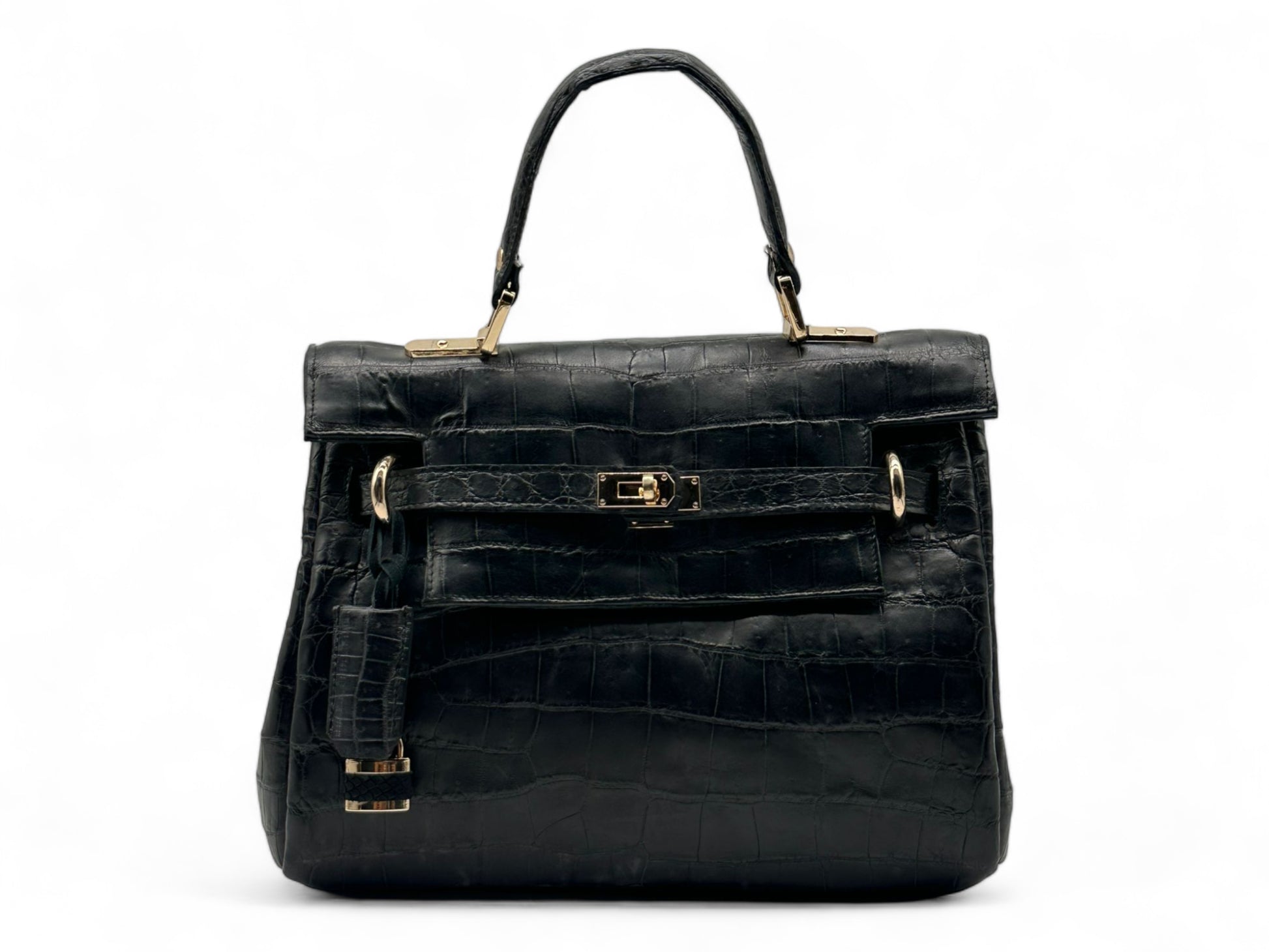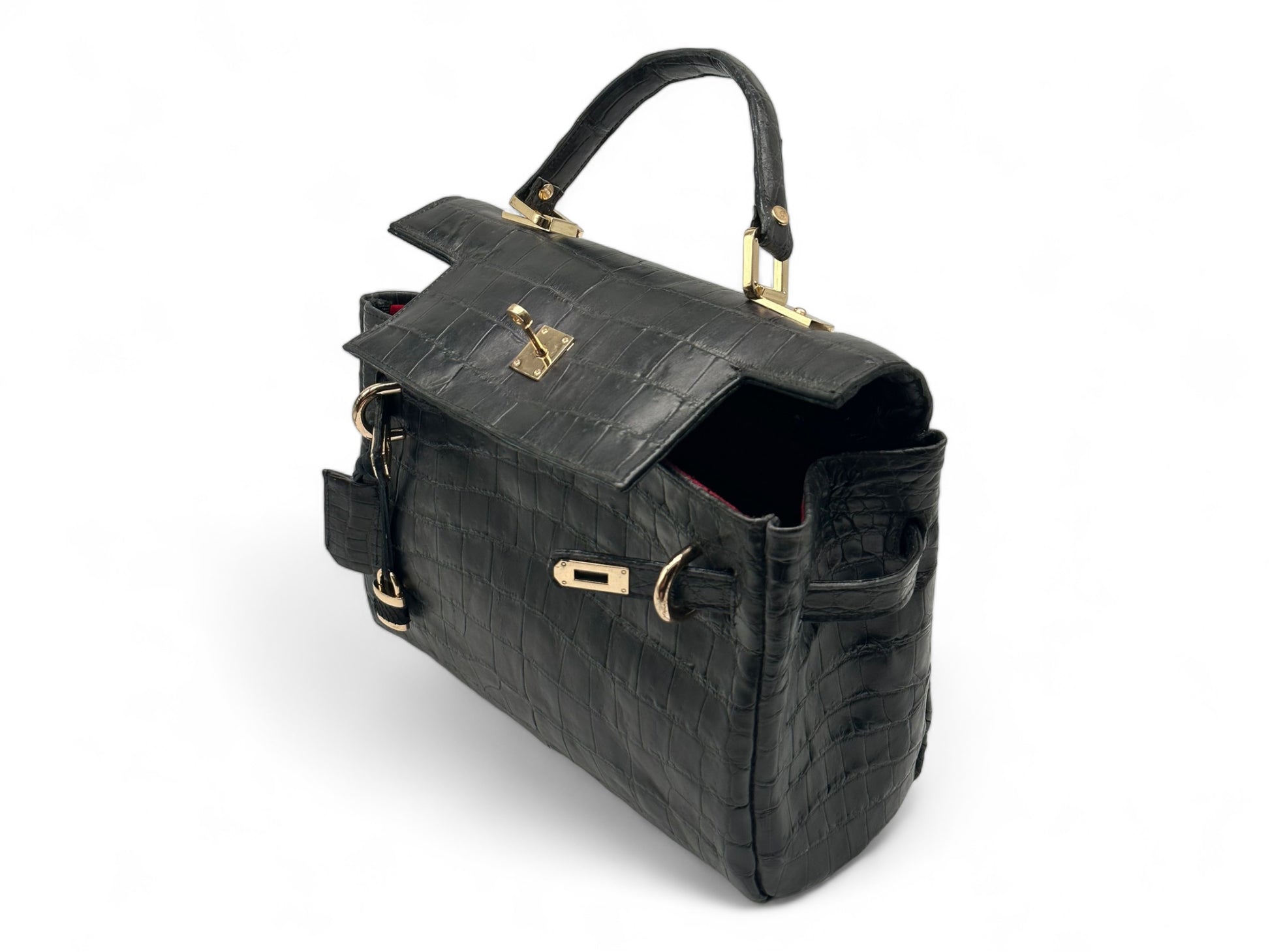 Vintage Black Kelly 28 Style Flap Handbag made from Alligator Leather, Luxury Handbag, Luxury Handmade Purse